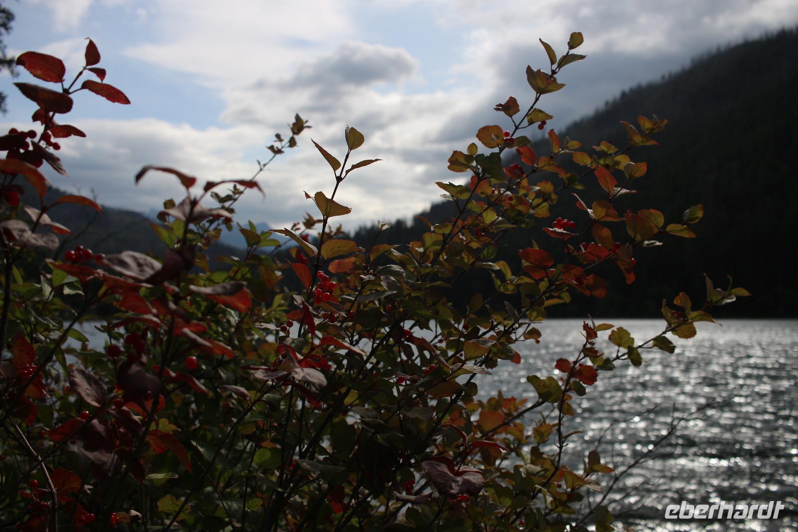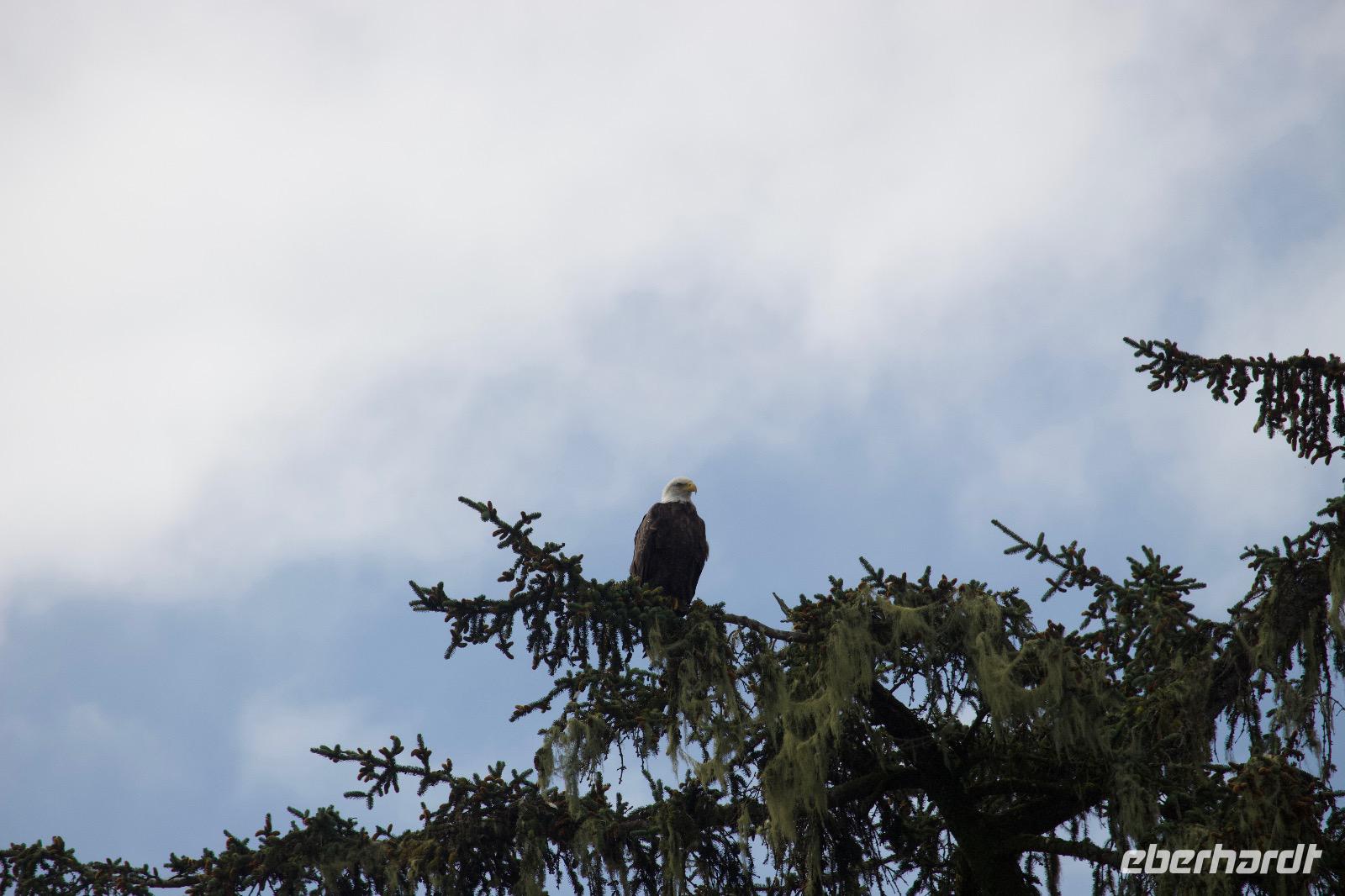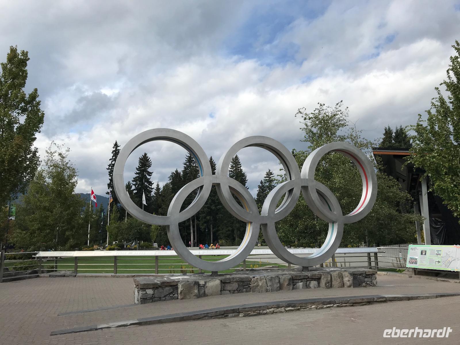 Nach dem wieder sehr reichlichen Frühstück verließen wir das wunderschöne Tyax-Resort heute wieder. Nach einer kurzen Fahrt erwartete uns heute der erste Höhepunkt des Tages: Unser geduldiges Warten wurde belohnt und wir entdeckten endlich einen Bären, welcher sich auch in unmittelbarer Nähe des Busses an verschiedensten Beeren erfreute und sich dabei bereitwillig von uns fotografieren ließ. Bester Laune setzten wir unsere Fahrt fort. Nur wenig später entdeckten wir bereits einen zweiten Schwarzbären, diesmal jedoch einen noch sehr kleinen, der auch sofort die Flucht vor uns ergriff. Es sollte der Tag der Tierbeobachtungen werden, denn neben einem Reh zeigte sich uns bald eine Seeadlerfamilie, welche wir ebenfalls gut fotografieren konnten. Was für ein erfolgreicher Tagesauftakt! Als wir schließlich die kleine Stadt Lillooet erreichten, legten wir eine kleine Pause an einem Einkaufszentrum ein. Hier konnte jeder den einen oder anderen kleinen oder größeren Einkauf erledigen. Anschließend setzten wir unsere Fahrt in Richtung Whistler fort. Am Duffey Lake machten wir eine kleine Pause und genossen bei bester Aussicht ein leckeres Picknick. Gut gesättigt stießen wir schließlich noch mit einem guten Likör an - kanadischer Whiskey mit Ahornsirup, ein echtes kanadisches Produkt. Nach weiteren ca. 1,5 Stunden erreichten wir die Stadt Whistler, welche durch die Olympischen Winterspiele 2010 bekannt geworden war. Nachdem wir unsere Zimmer im Hotel bezogen hatten, trafen wir uns zu einem kleinen gemeinsamen Spaziergang durch die Fußgängerzone der Stadt. Schon beim Verlassen des Hotels wurde deutlich, wie viel Leben in dieser Stadt herrschte. Nun fiel der heutige Tag auch auf einen Samstag und zudem fand aktuell auch eine Radsportveranstaltung in Whistler statt. Aufgrund dessen waren die Straßen voll, insbesondere zahlreiche junge Leute begegneten uns. Nach unseren erholsamen Tagen inmitten der Natur ein komplettes Kontrastprogramm, aber auch sehr schön. Wir spazierten bis zu den Olympischen Ringen, wo natürlich wieder einige Fotos geschossen wurden. Anschließend gingen wir zurück zum Hotel, wo noch etwas Zeit zum Entspannen blieb, bevor wir uns wieder trafen und gemeinsam ein Restaurant in der Stadt zum Abendessen aufsuchten. Heute füllten wir unsere noch nicht allzu leeren Magen mit italienischen Gerichten. Auch im Restaurant wurde deutlich, dass Wochenende war und somit die ganze Stadt auf den Beinen. Während des Nachhauseweges bekamen wir dann auch noch einen kleinen Einblick in das Nachtleben in Whistler. Durchaus sehenswert, jedoch entschieden wir uns dann doch lieber für unsere Betten.