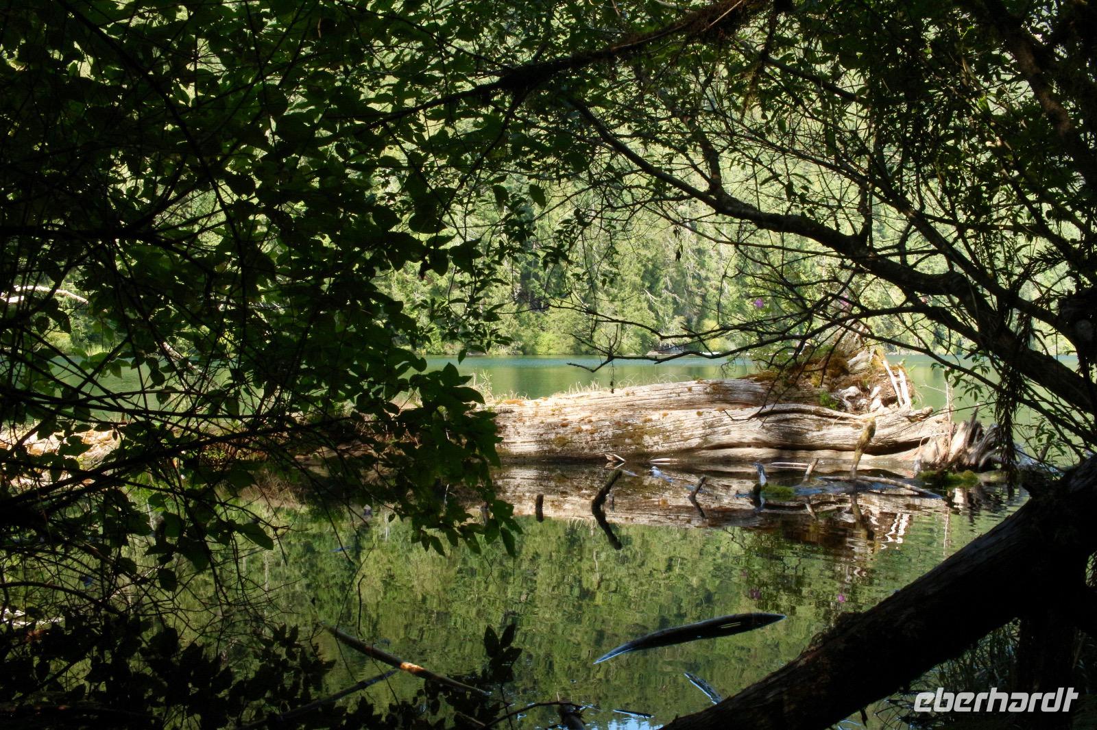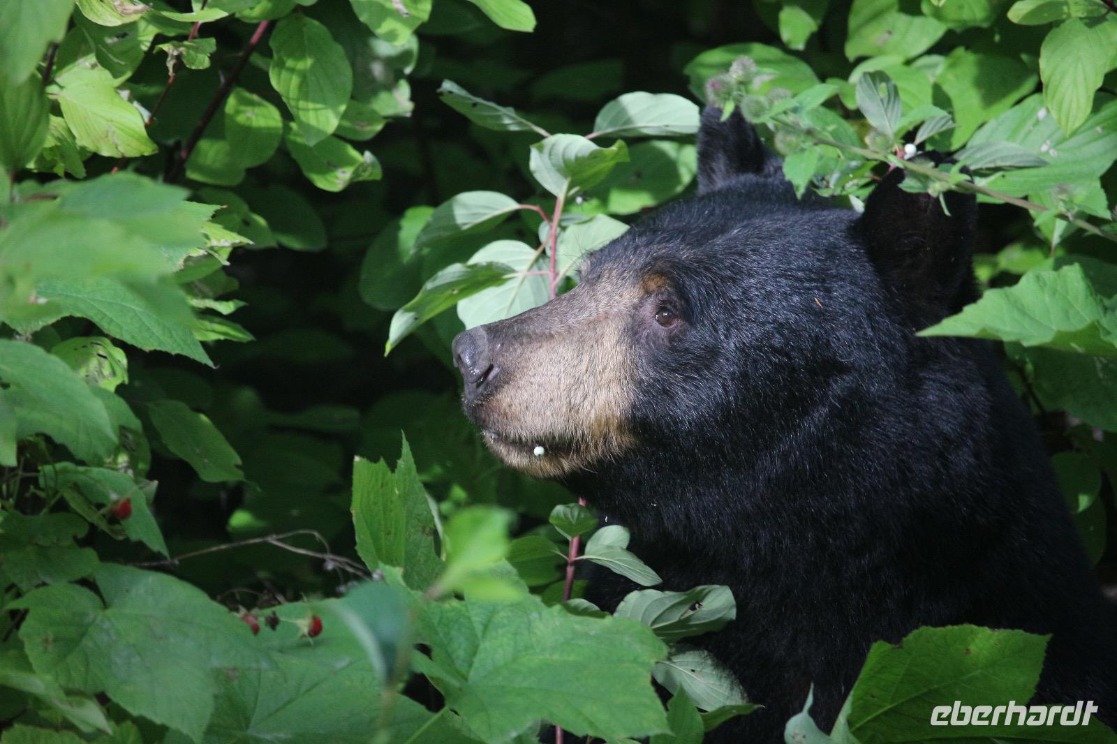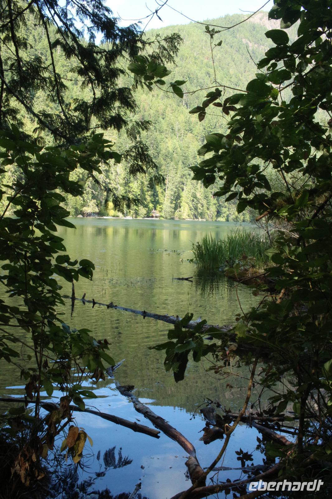 Nach dem wieder sehr reichlichen Frühstück verließen wir das wunderschöne Tyax-Resort heute wieder. Nach einer kurzen Fahrt erwartete uns heute der erste Höhepunkt des Tages: Unser geduldiges Warten wurde belohnt und wir entdeckten endlich einen Bären, welcher sich auch in unmittelbarer Nähe des Busses an verschiedensten Beeren erfreute und sich dabei bereitwillig von uns fotografieren ließ. Bester Laune setzten wir unsere Fahrt fort. Nur wenig später entdeckten wir bereits einen zweiten Schwarzbären, diesmal jedoch einen noch sehr kleinen, der auch sofort die Flucht vor uns ergriff. Es sollte der Tag der Tierbeobachtungen werden, denn neben einem Reh zeigte sich uns bald eine Seeadlerfamilie, welche wir ebenfalls gut fotografieren konnten. Was für ein erfolgreicher Tagesauftakt! Als wir schließlich die kleine Stadt Lillooet erreichten, legten wir eine kleine Pause an einem Einkaufszentrum ein. Hier konnte jeder den einen oder anderen kleinen oder größeren Einkauf erledigen. Anschließend setzten wir unsere Fahrt in Richtung Whistler fort. Am Duffey Lake machten wir eine kleine Pause und genossen bei bester Aussicht ein leckeres Picknick. Gut gesättigt stießen wir schließlich noch mit einem guten Likör an - kanadischer Whiskey mit Ahornsirup, ein echtes kanadisches Produkt. Nach weiteren ca. 1,5 Stunden erreichten wir die Stadt Whistler, welche durch die Olympischen Winterspiele 2010 bekannt geworden war. Nachdem wir unsere Zimmer im Hotel bezogen hatten, trafen wir uns zu einem kleinen gemeinsamen Spaziergang durch die Fußgängerzone der Stadt. Schon beim Verlassen des Hotels wurde deutlich, wie viel Leben in dieser Stadt herrschte. Nun fiel der heutige Tag auch auf einen Samstag und zudem fand aktuell auch eine Radsportveranstaltung in Whistler statt. Aufgrund dessen waren die Straßen voll, insbesondere zahlreiche junge Leute begegneten uns. Nach unseren erholsamen Tagen inmitten der Natur ein komplettes Kontrastprogramm, aber auch sehr schön. Wir spazierten bis zu den Olympischen Ringen, wo natürlich wieder einige Fotos geschossen wurden. Anschließend gingen wir zurück zum Hotel, wo noch etwas Zeit zum Entspannen blieb, bevor wir uns wieder trafen und gemeinsam ein Restaurant in der Stadt zum Abendessen aufsuchten. Heute füllten wir unsere noch nicht allzu leeren Magen mit italienischen Gerichten. Auch im Restaurant wurde deutlich, dass Wochenende war und somit die ganze Stadt auf den Beinen. Während des Nachhauseweges bekamen wir dann auch noch einen kleinen Einblick in das Nachtleben in Whistler. Durchaus sehenswert, jedoch entschieden wir uns dann doch lieber für unsere Betten.