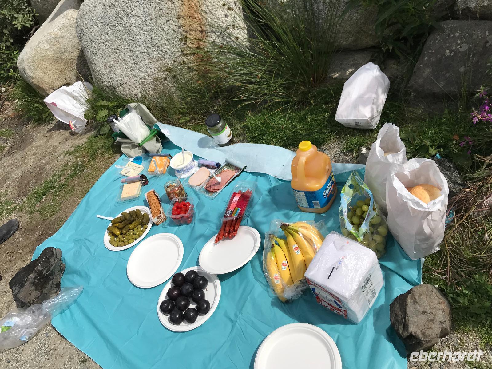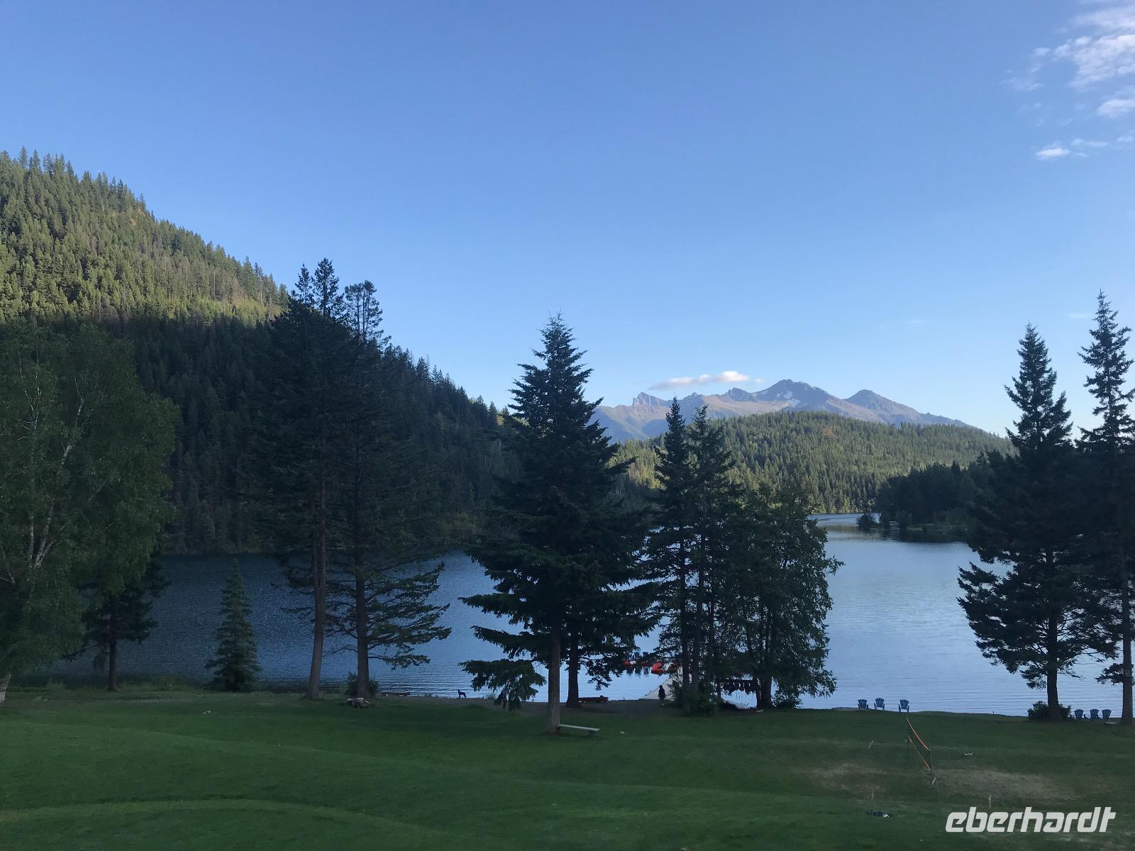 Der heutige Tag stand uns zur freien Verfügung, um die Annehmlichkeiten dieses schönen Resorts genießen zu können. Gemütlich starteten wir mit einem sehr reichlichen und schmackhaften Frühstück in den Tag. Anschließend traf sich ein Teil der Reisegruppe zu einer gemeinsamen Wanderung. Ausgestattet mit Bärenspray und ausreichend Wasser starteten wir. Zunächst führte uns der Wanderweg am See entlang sowie schließlich durch die angrenzenden Wälder. Immer wieder genossen wir Ausblicke über die umliegende Landschaft. Wir entschieden uns für die große Runde, wobei auch ein etwas steilerer Anstieg bewältigt werden musste. Doch auch das meisterten wir alle und wurden mit einem schönen Blick belohnt. Der Rückweg gestaltete sich als einfacher, da es stets bergab ging. Nach ca. 3 Stunden erreichten wir das Hotel wieder und genehmigten uns ein kühles Getränk auf der Hotelterrasse. Dabei gesellten sich auch Renzo sowie der im Hotel verbliebene Teil der Reisegruppe zu uns, sodass wir alle gemeinsam auf unser heutiges Bergfest anstoßen konnten. Den restlichen Nachmittag nutzten alle ein wenig zur Entspannung, beispielsweise im hoteleigenen SPA-Bereich. Zum Abendessen trafen wir uns wieder im Hotelrestaurant und ließen den Abend gemeinsam bei schmackhaften Gerichten ausklingen.