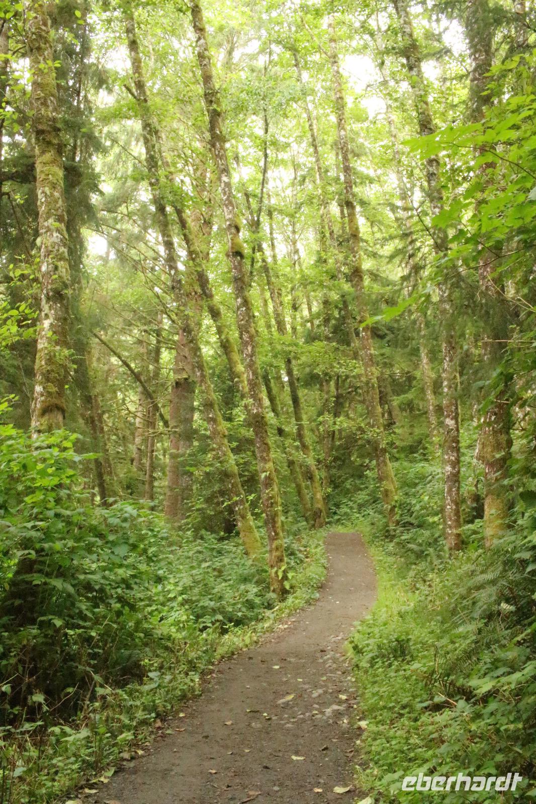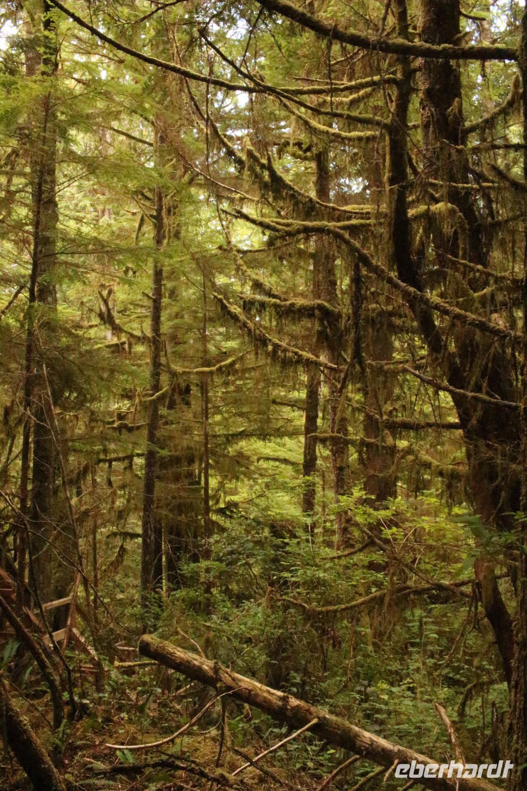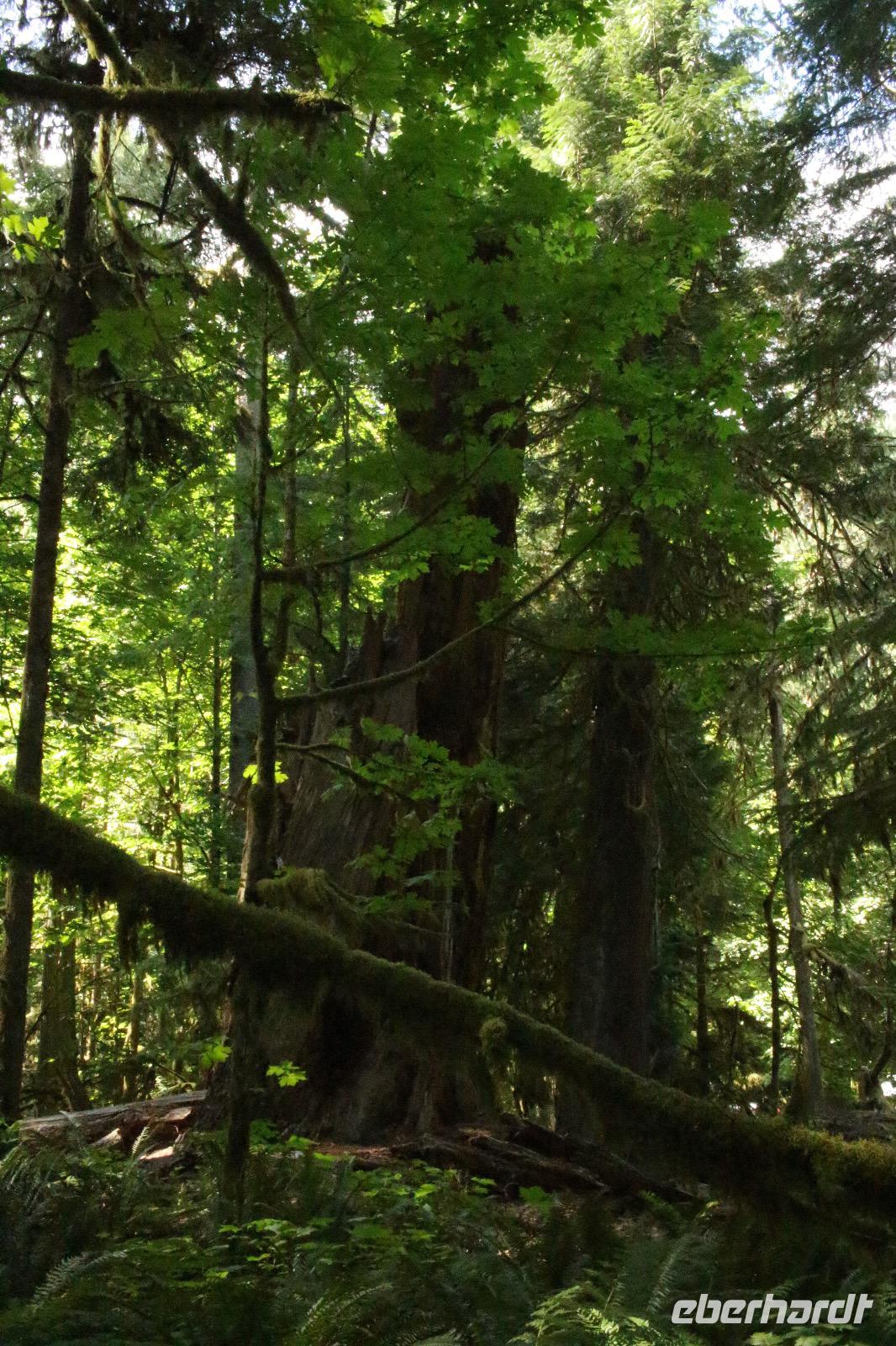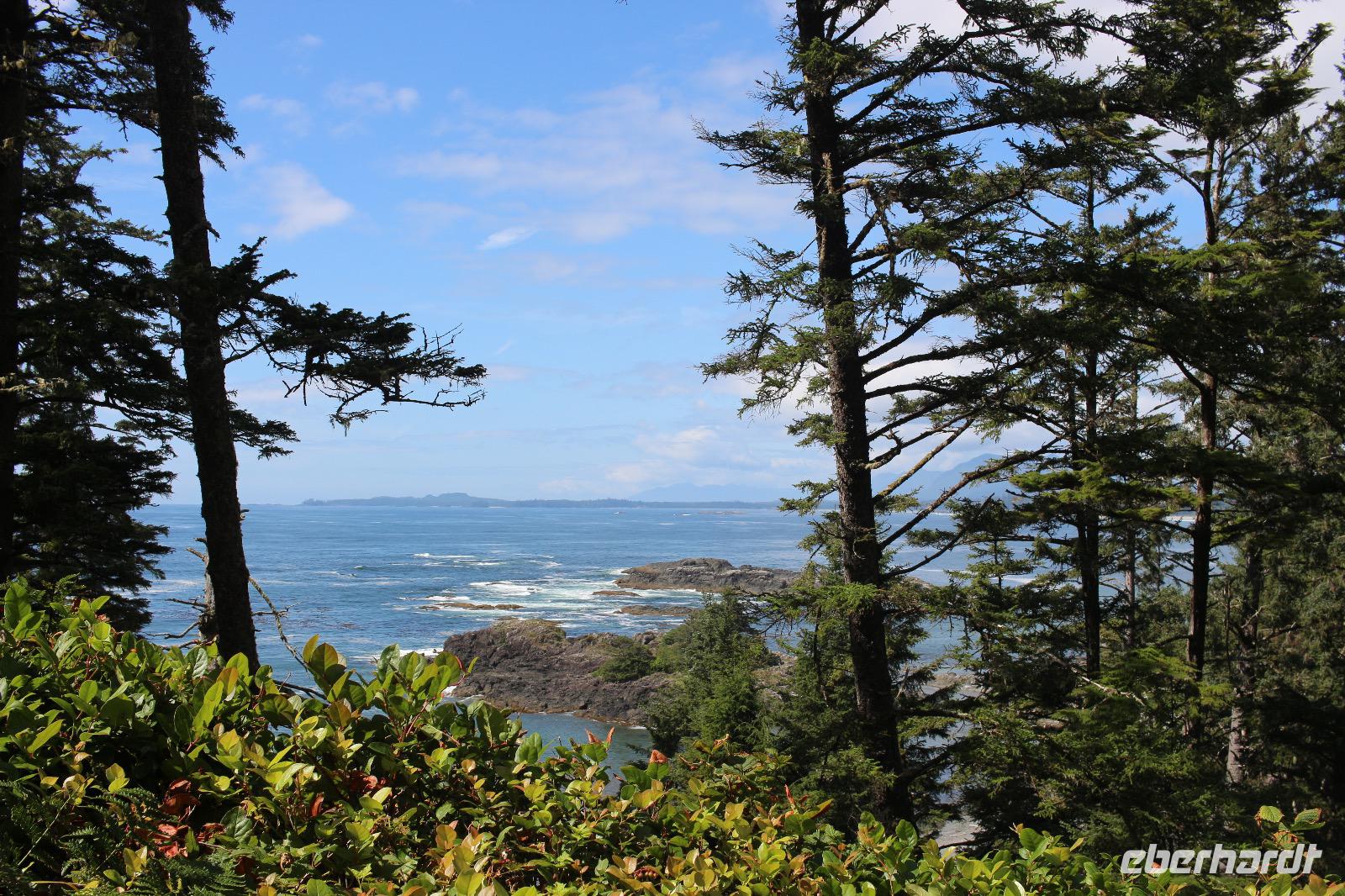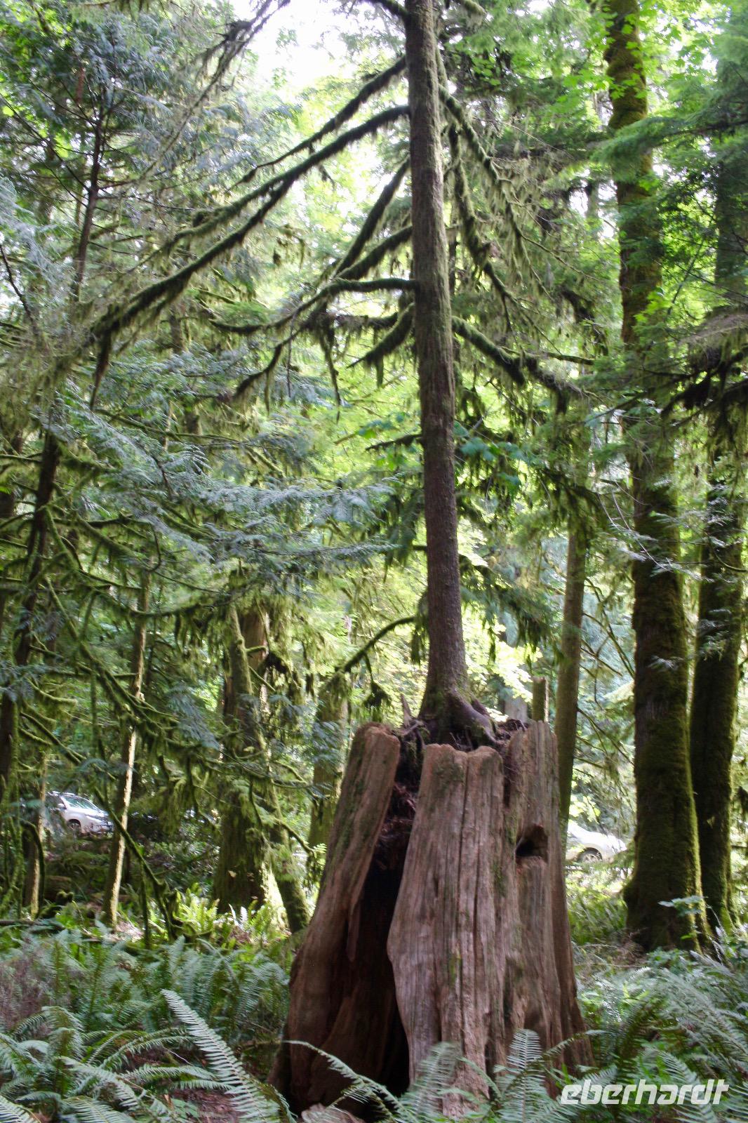Nach dem Frühstück, welches es heute außerhalb des Hotels gab, verließen wir die Stadt Whistler wieder und fuhren weiter in Richtung Küste. Nach einem kurzen Stop an einem weiteren sehr schönen Wasserfall erreichten wir schließlich die Horseshoe Bay bei Vancouver. Hier gingen wir an Bord der Fähre, welche uns nach Vancouver Island bringen sollte. Wir genossen die Zeit an Bord bei einer heißen Schokolade und fotografierten vom oberen Deck aus natürlich fleißig die Umgebung. Als das Schiff schließlich anlegte, gingen wir mit unserem Bus wieder von Bord. Doch nicht allen gefiel dieser Weg, sodass auch der Fußgängerausgang genutzt wurde. Nachdem wir uns aber alle wiedergefunden hatten, setzten wir die Fahrt fort. Von Nanaimo aus fuhren wir in Richtung Norden, bis wir schließlich den MacMillan Provincial Park erreichten. Schon während der Fahrt war uns eine gewisse Veränderung der Landschaft bewusst geworden, doch nun erwartete uns nun eine vollkommen andere Landschaftsform als zunächst auf dem kanadischen Festland. Plötzlich befanden wir uns inmitten eines Regenwaldes - mit von Farnen überwucherten Böden, Schlingpflanzen und uralten Douglasien. Auf zwei Rundwegen erkundeten wir diese dichten Wälder und bestaunten dabei bis zu 800 Jahre alte Douglasien mit einem Umfang von bis zu neun Metern und einer Höhe von bis zu 70 Metern. Nach jeder Kurve entdeckten wir neue Giganten, die ein Foto in jedem Falle wert waren. Mit tausenden neuen Fotos im Gepäck setzten wir schließlich unsere Fahrt nach Tofino fort. Das Städtchen erreichten wir am Abend und bezogen auch direkt unsere Hotelzimmer. Der gegen Ende der Fahrt aufgetretene Regen hatte sich auch bald verzogen, sodass wir trockenen Fußes zum Restaurant spazieren konnten. In gemütlicher Atmosphäre genossen wir ein sehr schmackhaftes Menü und ließen einen weiteren schönen Reisetag gemeinsam ausklingen.