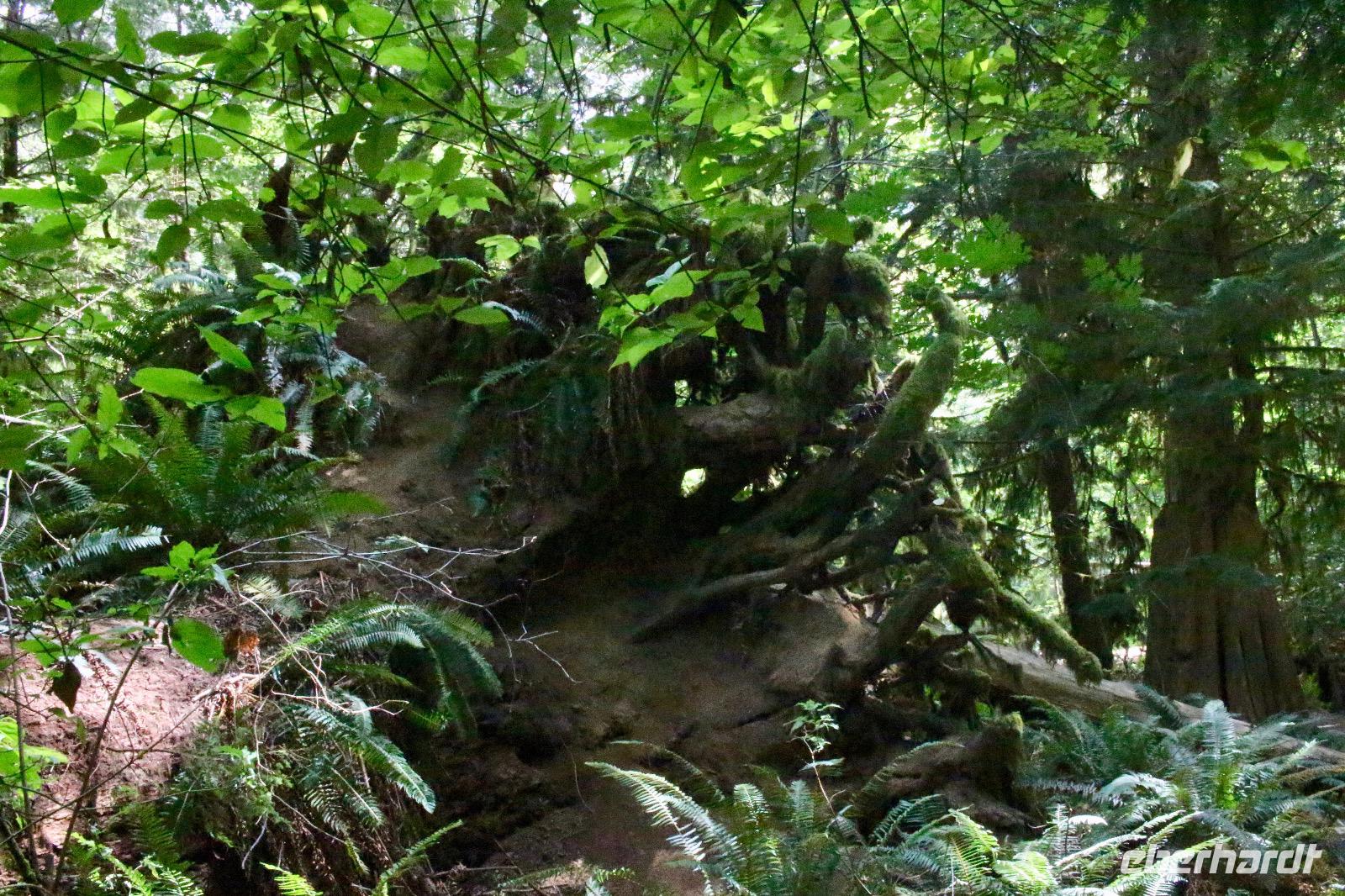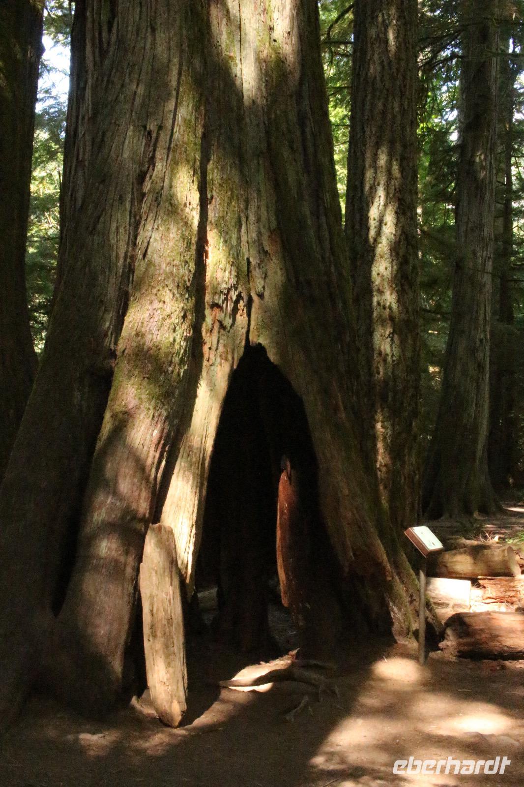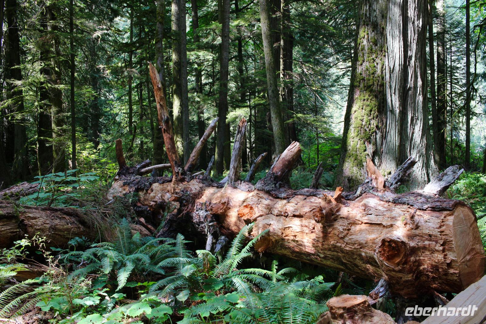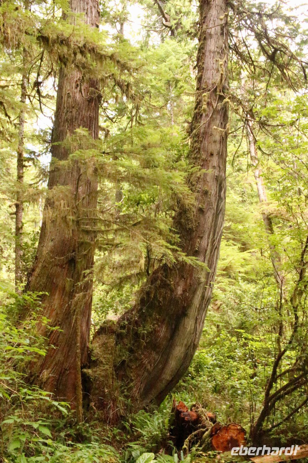 Nach dem Frühstück, welches es heute außerhalb des Hotels gab, verließen wir die Stadt Whistler wieder und fuhren weiter in Richtung Küste. Nach einem kurzen Stop an einem weiteren sehr schönen Wasserfall erreichten wir schließlich die Horseshoe Bay bei Vancouver. Hier gingen wir an Bord der Fähre, welche uns nach Vancouver Island bringen sollte. Wir genossen die Zeit an Bord bei einer heißen Schokolade und fotografierten vom oberen Deck aus natürlich fleißig die Umgebung. Als das Schiff schließlich anlegte, gingen wir mit unserem Bus wieder von Bord. Doch nicht allen gefiel dieser Weg, sodass auch der Fußgängerausgang genutzt wurde. Nachdem wir uns aber alle wiedergefunden hatten, setzten wir die Fahrt fort. Von Nanaimo aus fuhren wir in Richtung Norden, bis wir schließlich den MacMillan Provincial Park erreichten. Schon während der Fahrt war uns eine gewisse Veränderung der Landschaft bewusst geworden, doch nun erwartete uns nun eine vollkommen andere Landschaftsform als zunächst auf dem kanadischen Festland. Plötzlich befanden wir uns inmitten eines Regenwaldes - mit von Farnen überwucherten Böden, Schlingpflanzen und uralten Douglasien. Auf zwei Rundwegen erkundeten wir diese dichten Wälder und bestaunten dabei bis zu 800 Jahre alte Douglasien mit einem Umfang von bis zu neun Metern und einer Höhe von bis zu 70 Metern. Nach jeder Kurve entdeckten wir neue Giganten, die ein Foto in jedem Falle wert waren. Mit tausenden neuen Fotos im Gepäck setzten wir schließlich unsere Fahrt nach Tofino fort. Das Städtchen erreichten wir am Abend und bezogen auch direkt unsere Hotelzimmer. Der gegen Ende der Fahrt aufgetretene Regen hatte sich auch bald verzogen, sodass wir trockenen Fußes zum Restaurant spazieren konnten. In gemütlicher Atmosphäre genossen wir ein sehr schmackhaftes Menü und ließen einen weiteren schönen Reisetag gemeinsam ausklingen.