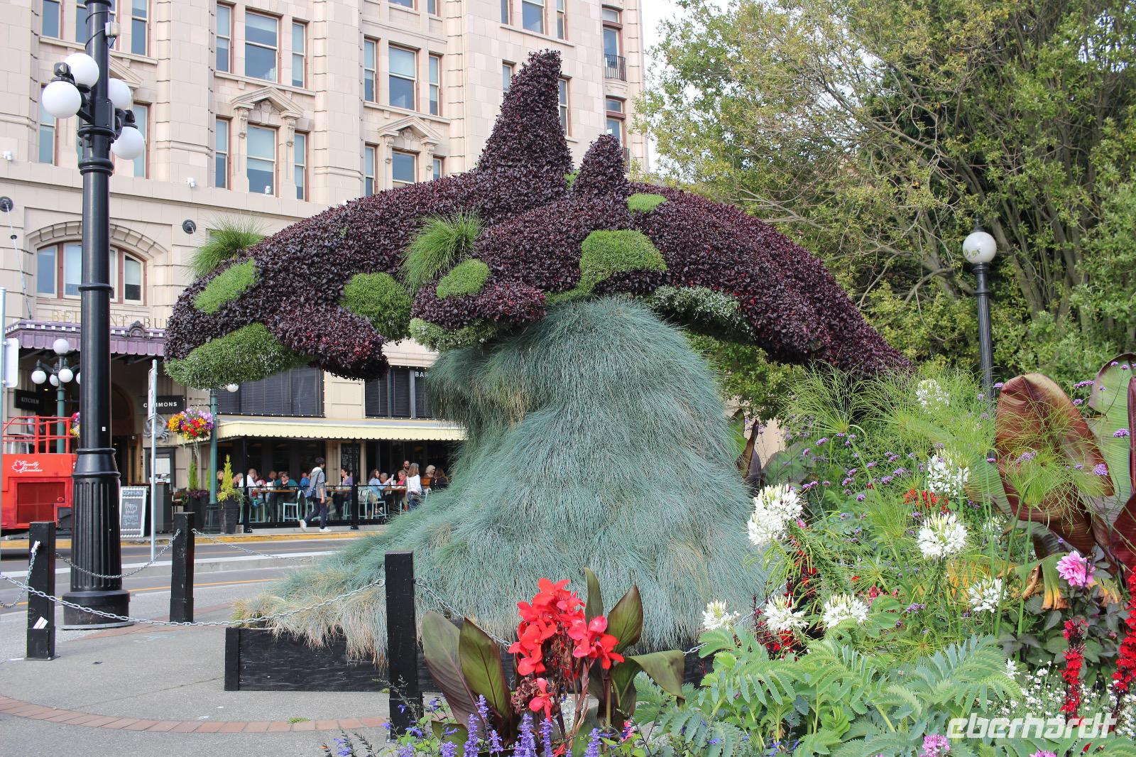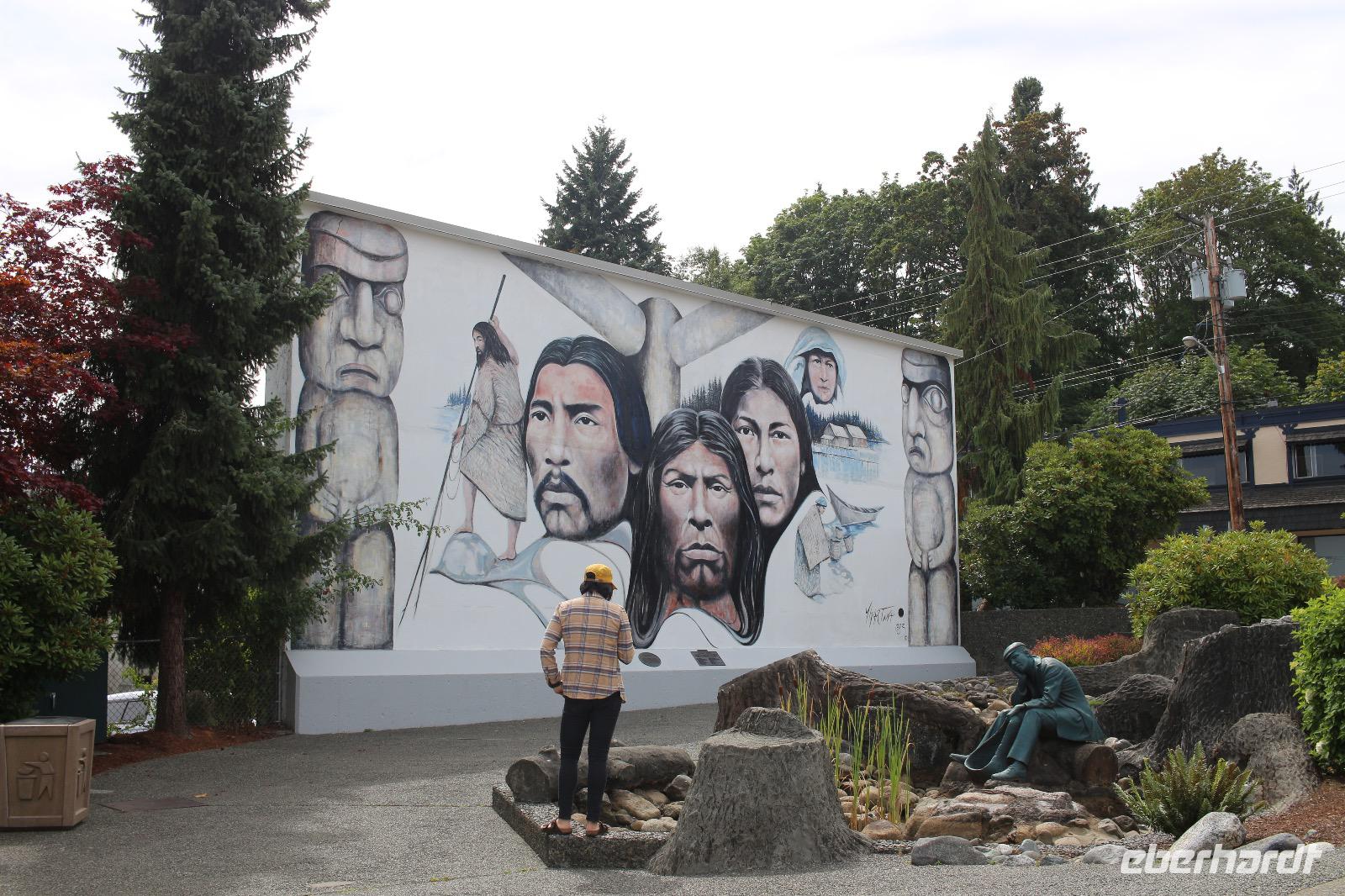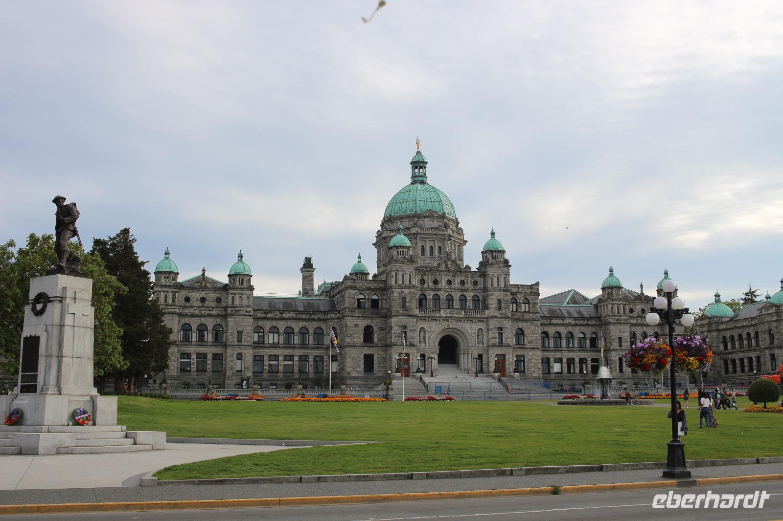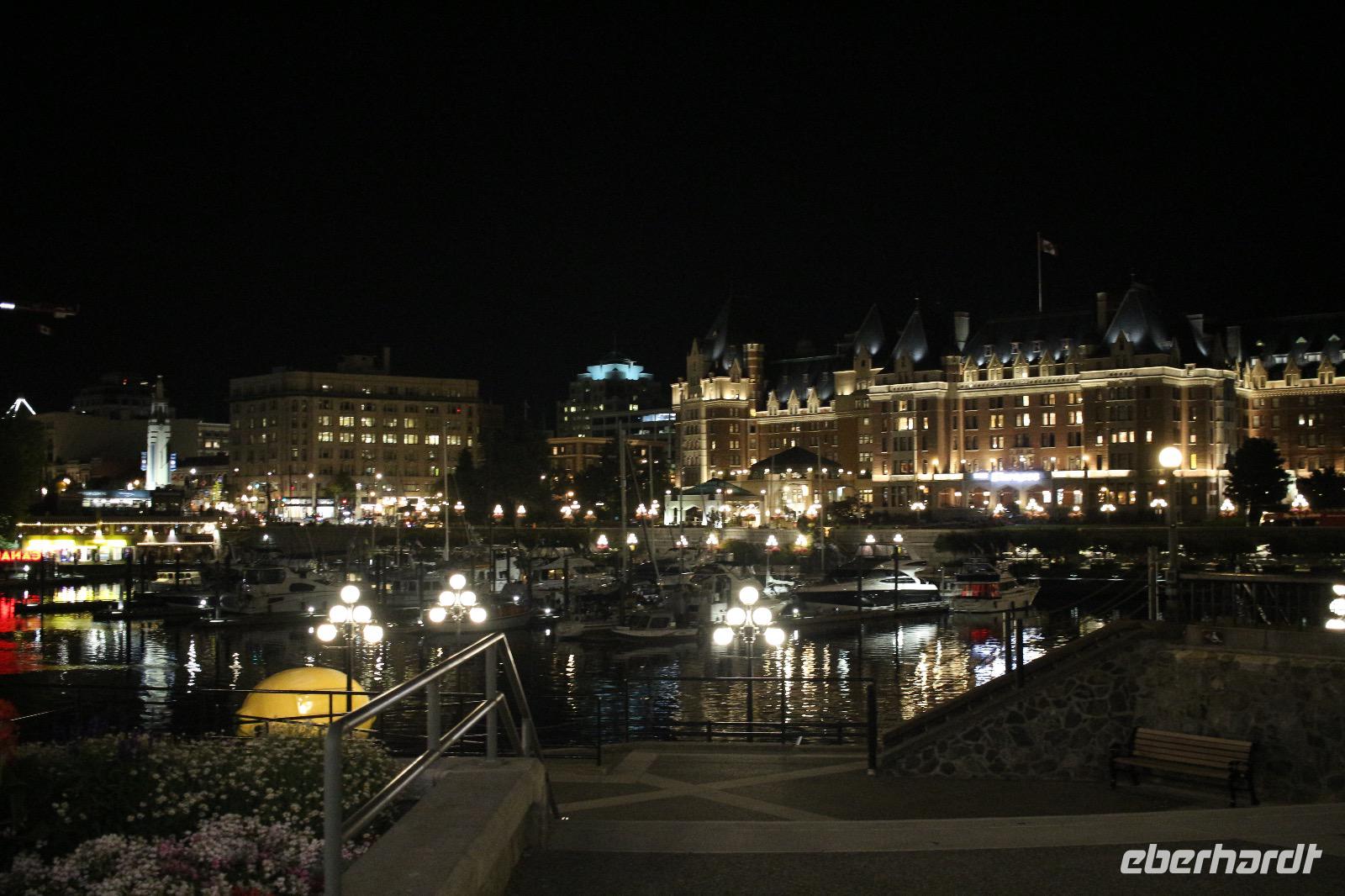 Nach dem sehr leckeren Frühstück in angenehmer Atmosphäre verließen wir unser schönes Hotel sowie auch den Ort Tofino und begaben uns in Richtung Süden von Vancouver Island. Leider wurde unser Zeitplan von einer Baustelle etwas durcheinandergebracht, da uns an dieser eine längere Wartezeit entstand. Guten Mutes fuhren wir weiter und erreichten schließlich das hübsche Örtchen Chemainus, welches durch seine eindrucksvollen Wandgemälde große Bekanntheit erreicht hatte. Wir spazierten kurz durch die Straßen und fotografierten fleißig. Das Örtchen strahlte eine Ruhe und Idylle aus, sodass wir uns sofort wohlfühlten und voller Genuss die unterschiedlichsten Kunstwerke begutachteten. Anschließend setzten wir unsere Fahrt nach Victoria fort, erreichten die Hauptstadt British Columbias jedoch erst mit kurzer Verspätung. Die für heute geplante Walbeobachtung verschoben wir deshalb auf den nächsten Tag und widmeten uns zunächst ganz der Stadt Victoria, welche sich als äußerst sehenswert erwies. Nach einem kurzen Bummel durch China Town fuhren wir zum Hafen, genauer gesagt zur Fishermans Wharf. Weniger berühmt als der Namensvetter aus San Francisco ist dies doch ein sehr sehenswerter Ort, welcher neben verschiedenen süßen und herzhaften Snacks auch niedliche, bunte, kleine Hausboote zu bieten hat, die zu fotografieren sehr lohnenswert war. Im Anschluss fuhren wir an der Küste entlang und konnten dabei bis in die USA blicken, welche sich auf der anderen Seite bereits erstreckte. Unsere Fahrt führte uns weiterhin durch das Villenviertel, wo wir die sehr hübschen Häuser bewunderten. Doch viel mehr Aufmerksamkeit erregten die zahlreichen Rehe, die sich uns hier mitten in der Stadt zeigten. Vorbei am beeindruckenden Empress Hotel, dem Parlamentsgebäude sowie den indianischen Totempfählen im Thunderbird Park erreichten wir schließlich unser Hotel, wo wir unsere Zimmer bezogen. Wenig später brachte uns Renzo mit dem Bus zur Haupteinkaufsstraße, die wir entlangbummelten und am Hafen flanierten, bis wir schließlich wieder das Hotel erreichten. Zum Abendessen trafen wir uns wieder und suchten dafür ein Restaurant direkt am Hafen auf, wo wir wieder einmal mit sehr schmackhaften Gerichten verwöhnt wurden. Beim Verlassen des Restaurants mussten wir natürlich noch einen Blick auf das außergewöhnlich beleuchtete Parlamentsgebäude werfen sowie dies auch fotografisch festhalten, bevor wir zurück zum Hotel spazierten und uns für den nächsten Tag ausruhten.