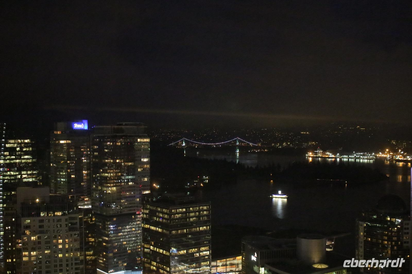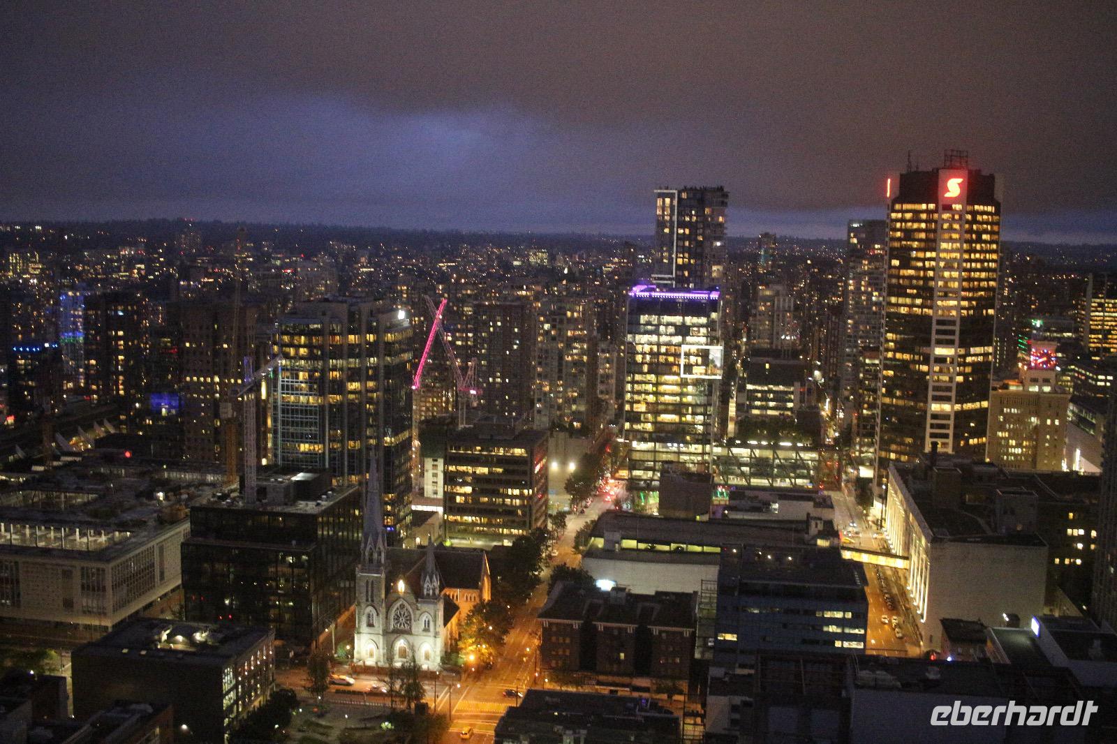 Nach anderthalbstündiger Fährüberfahrt erreichten wir schließlich die Stadt Vancouver, wo wir uns sogleich auf Erkundungstour begaben. Zunächst fuhren wir zum Queen Elizabeth Park, von wo aus wir einen fantastischen Blick auf die Stadt genießen sowie die Pflanzenpracht bewundern konnten. Anschließend fuhren wir durch die Innenstadt sowie aus das mittlerweile leider weniger lebendige Chinatown bis nach Gastown. Wir spazierten entlang der alten Backsteinhäuser bis zur bekannten Dampfuhr, welche als Wahrzeichen Vancouvers betrachtet werden kann. Aller 15 Minuten ertönt dabei eine Melodie, welcher wir zweimal lauschen konnten. Weiterhin blieb Zeit für einen kleinen Bummel durch die Souvenirgeschäfte, bevor wir unsere Stadtrundfahrt fortsetzten. Letztes Ziel sollte der Stanley Park sein, welcher mit 404,9 Hektarn der größte Stadtpark Kanadas ist und insbesondere für seine sehr sehenswerten Totempfähle bekannt ist. Diese fotografierten wir ebenso wie die Skyline Vancouvers, auf welche man von hier einen sehr guten Blick hatte. Anschließend fuhren wir zu unserem Hotel in der Robson Street und checkten ein. Nun blieb noch etwas Zeit zur Erholung, bevor wir uns schließlich trafen, um zu unserem letzten gemeinsamen Abendessen in Kanada zu fahren. Dafür erwartete uns heute eine ganz besondere Lokalität: der 168m hohe Top of Vancouver. Unser Tisch befand sich auf einer Drehplattform, welche sich in einer Stunde einmal rundum drehte, sodass wir die ganze Zeit einen fantastischen Blick auf die beleuchtete Stadt genießen konnten. Bei einem exzellenten Menü ließen wir eine wunderschöne Reise ausklingen.