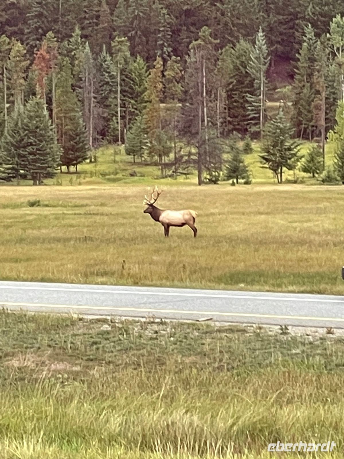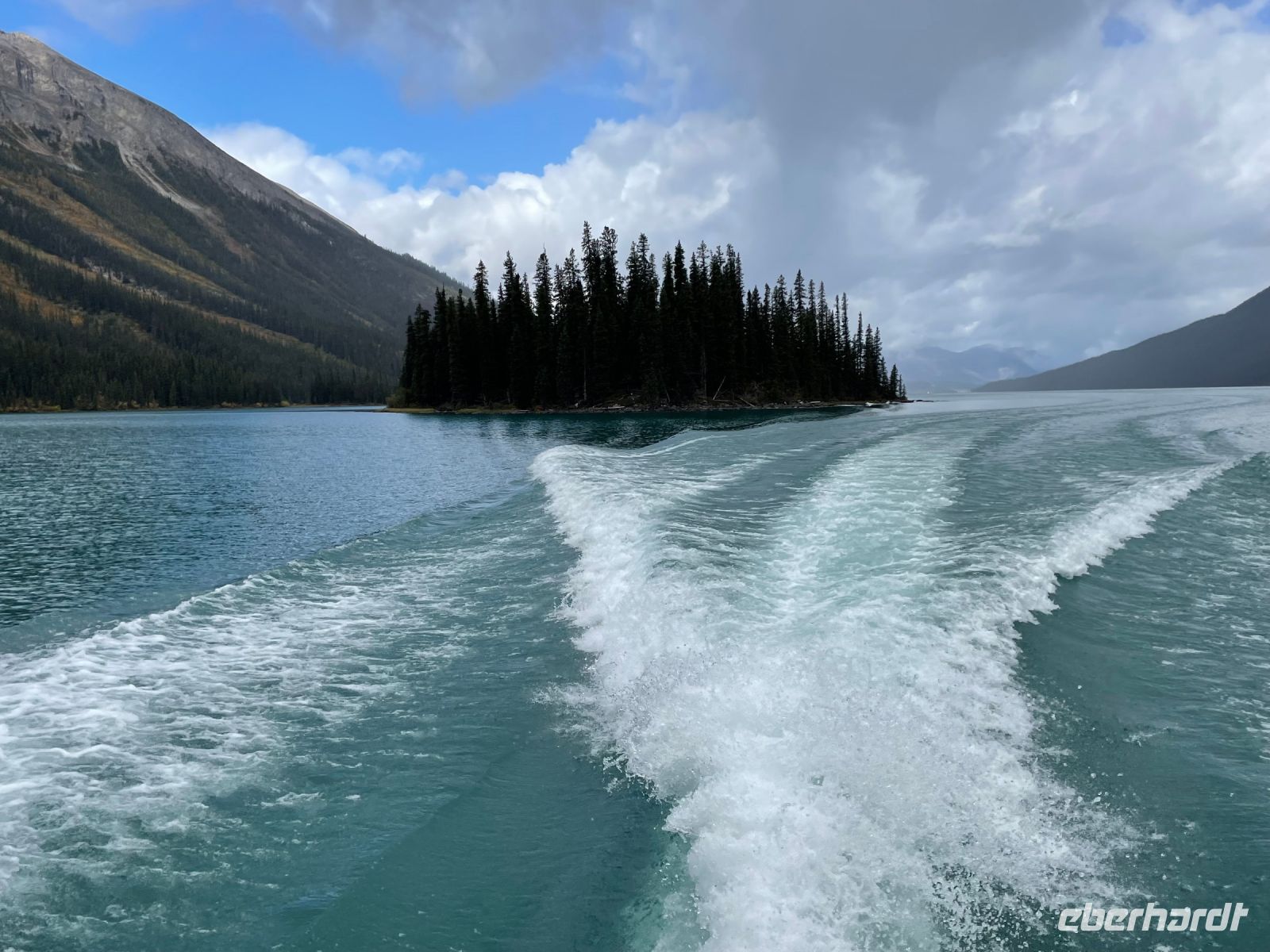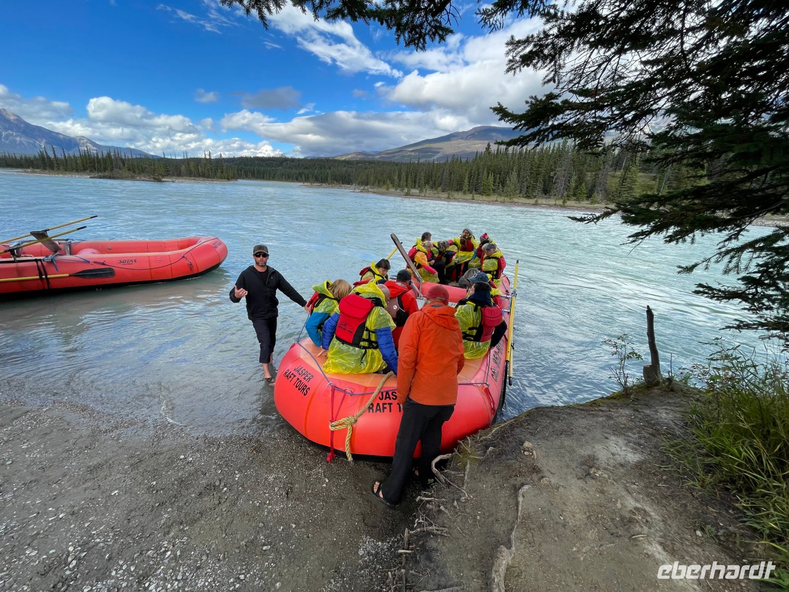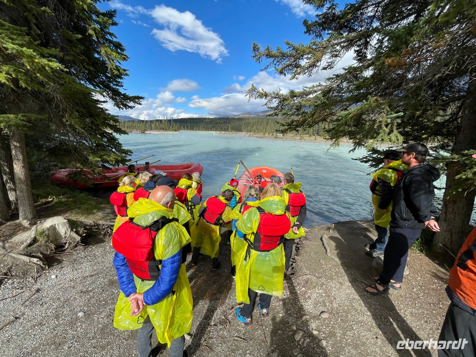 Unser vierter Reisetag ist der beste Tag für Tierbeobachtungen, denn im Jasper-Nationalpark sind die Chancen, Tiere aller Art zu entdecken am größten! Und siehe da… kaum haben wir unser Hotel mit dem Bus verlassen, sehen wir ein Waipiti Jungtier, 30min später 2 weitere davon und einen großen Bullen. Nach einem kurzen Fotostopp am Madison Lake, sehen wir anschließend 2 Grizzlybären ins Gebüsch verschwinden. So schnell konnten wir leider nicht unsere Kameras zücken. Weiter geht es zum zweitgrößten Gletschersee der Welt: dem Maligne Lake. Der See ist 22km lang und darin befindet sich die kleine Insel Spirit Island. Zusammen mit dem Bergpanorama im Hintergrund gehört dieser Ort zu den meistfotografierten Motiven in West-Kanada. Wir erkunden den See bei einer fast 2-stündigen Bootsfahrt. Zu Beginn kommt leichter Regen auf, doch als wir Spirit Island - das Heiligtum der Ureinwohner erreichen, kommt auf einmal die Sonne raus und bietet für ca. 15min traumhafte Fotomomente. Alles ist wie im Reisekatalog oder Dokumentarfilm. Wir sind begeistert von der Schönheit Westkanadas! Nach diesem Erlebnis und einer kleinen Mittagspause am See, setzen wir unsere Fahrt fort in Richtung Maligne Canyon, einer schmalen Schlucht, in die der gleichnamige Fluss ein tiefes Bett gegraben hat. Wir spazieren hier über Stege und Brücken und genießen beeindruckende Blicke in den Canyon und zum tosenden, schäumenden Fluss. Nicht ganz so tosend geht es dann auf einer zweistündigen Floßfahrt auf dem Athabasca-Fluss zu. Mit einem Raftingguide sitzen wir alle in einem großen Schlauchboot und werden von Stromschnelle zu Stromschnelle gefahren. An einigen Stellen bekommen wir ein paar Wasserspritzer ab, die uns aber aufgrund der Regencapes nix ausmachen. Größtenteils verläuft die Fahrt aber dennoch entspannt. Auf alle Fälle ein einmaliges Erlebnis! Im Hotel wieder angekommen haben wir alle etwas Freizeit. Vor dem Abendessen gibt dir Firma Eberhardt TRAVEL eine Runde Weißwein aus und danach schauen wir meine ersten geschnittenen Videos von den letzten Tagen an. Wir freuen uns auf die noch bevorstehenden Erlebnisse. ??