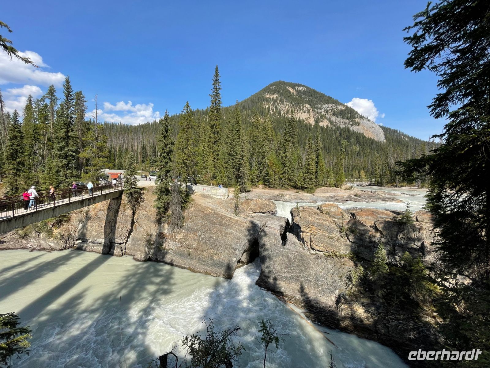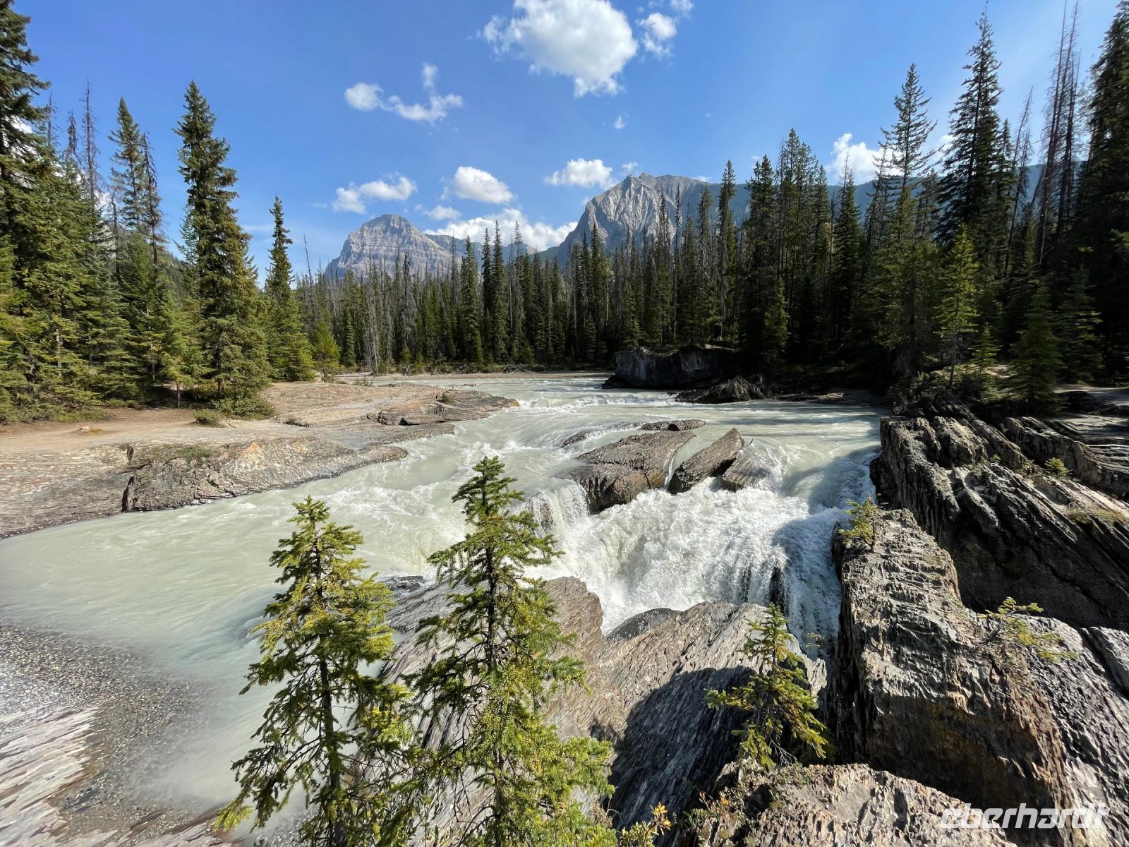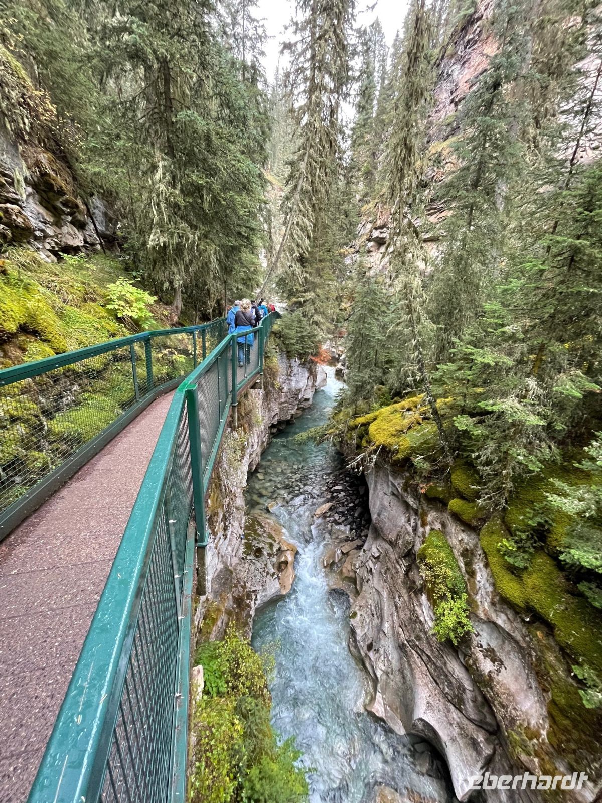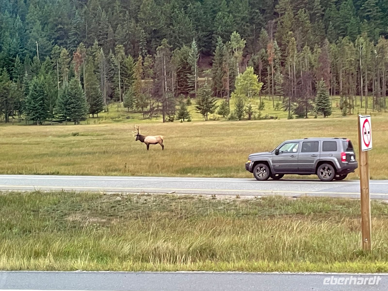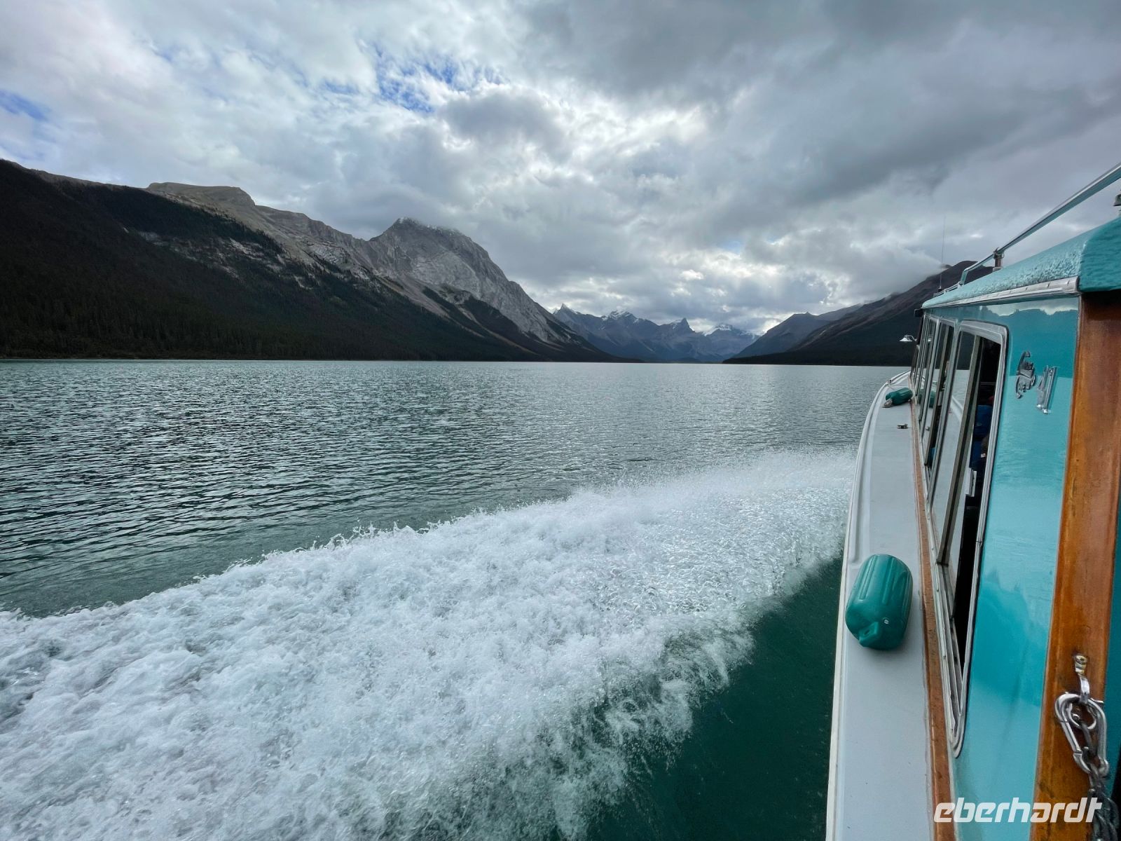 Unser vierter Reisetag ist der beste Tag für Tierbeobachtungen, denn im Jasper-Nationalpark sind die Chancen, Tiere aller Art zu entdecken am größten! Und siehe da… kaum haben wir unser Hotel mit dem Bus verlassen, sehen wir ein Waipiti Jungtier, 30min später 2 weitere davon und einen großen Bullen. Nach einem kurzen Fotostopp am Madison Lake, sehen wir anschließend 2 Grizzlybären ins Gebüsch verschwinden. So schnell konnten wir leider nicht unsere Kameras zücken. Weiter geht es zum zweitgrößten Gletschersee der Welt: dem Maligne Lake. Der See ist 22km lang und darin befindet sich die kleine Insel Spirit Island. Zusammen mit dem Bergpanorama im Hintergrund gehört dieser Ort zu den meistfotografierten Motiven in West-Kanada. Wir erkunden den See bei einer fast 2-stündigen Bootsfahrt. Zu Beginn kommt leichter Regen auf, doch als wir Spirit Island - das Heiligtum der Ureinwohner erreichen, kommt auf einmal die Sonne raus und bietet für ca. 15min traumhafte Fotomomente. Alles ist wie im Reisekatalog oder Dokumentarfilm. Wir sind begeistert von der Schönheit Westkanadas! Nach diesem Erlebnis und einer kleinen Mittagspause am See, setzen wir unsere Fahrt fort in Richtung Maligne Canyon, einer schmalen Schlucht, in die der gleichnamige Fluss ein tiefes Bett gegraben hat. Wir spazieren hier über Stege und Brücken und genießen beeindruckende Blicke in den Canyon und zum tosenden, schäumenden Fluss. Nicht ganz so tosend geht es dann auf einer zweistündigen Floßfahrt auf dem Athabasca-Fluss zu. Mit einem Raftingguide sitzen wir alle in einem großen Schlauchboot und werden von Stromschnelle zu Stromschnelle gefahren. An einigen Stellen bekommen wir ein paar Wasserspritzer ab, die uns aber aufgrund der Regencapes nix ausmachen. Größtenteils verläuft die Fahrt aber dennoch entspannt. Auf alle Fälle ein einmaliges Erlebnis! Im Hotel wieder angekommen haben wir alle etwas Freizeit. Vor dem Abendessen gibt dir Firma Eberhardt TRAVEL eine Runde Weißwein aus und danach schauen wir meine ersten geschnittenen Videos von den letzten Tagen an. Wir freuen uns auf die noch bevorstehenden Erlebnisse. ??