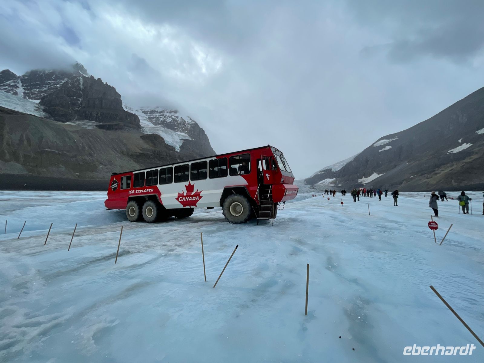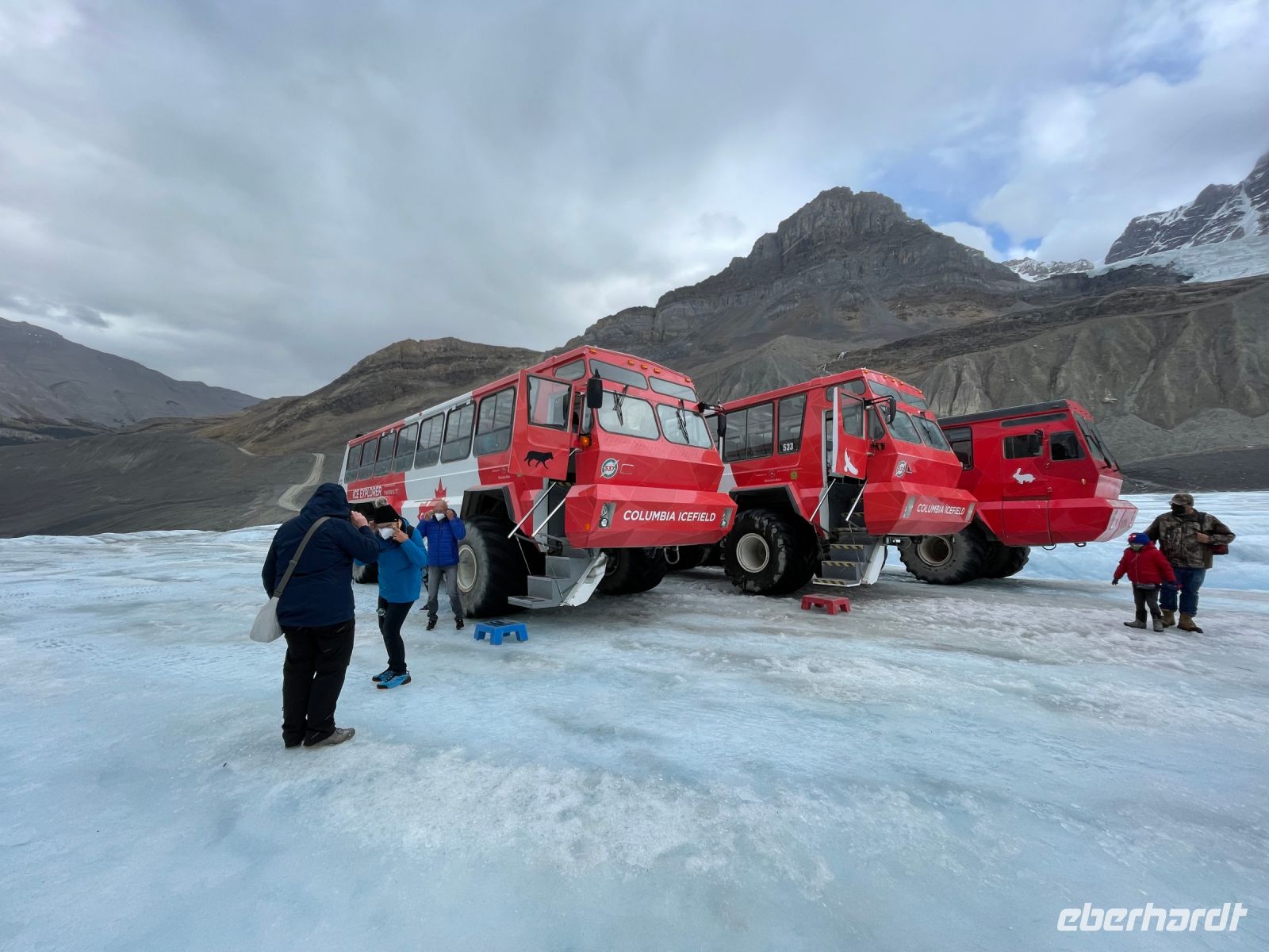 Unsere Entdeckungstour durch Westkanada setzt sich direkt nach dem gemeinsamen Frühstück fort. Wir fahren von Banff in Richtung Jasper. Unterwegs stoppen wir für eine kleine Wanderung am Johnsten Canyon, wo wir bis zum gleichnamigen Wasserfall laufen und wieder zurück. Etwas Bewegung tut ja bekanntlich immer gut. Weiter geht es auf einer wunderschönen Panoramastraße, durch die Rocky Mountains, die den Banff-Nationalpark und den Jasper-Nationalpark verbindet. Zwischenstopps am Hector Lake, Croowfoot Glacier (Krähenfuß Gletscher) und am Bow Lake bieten Zeit zum Fotografieren, Durchatmen und Genießen. Nach einer Mittagspause an einer typisch kanadischen Raststätte ist es nicht mehr weit bis zum spektakulären Icefield Parkway. Wir erreichen den 6km langen Athabasca Gletscher, welcher einer der Hauptzungen des beeindruckenden Columbia Icefields ist. Dort können wir mit dem Ice Explorer auf das Jahrhunderte alte Eis fahren, insofern man im Vorfeld gebucht hat. Sobald wir aus dem Fahrzeug aussteigen, können wir die Gletscherspalten aus der Nähe betrachten und das faszinierende Knacken und Krachen des Gletschers hören. Leider ist es sehr kalt, windig und regnerisch, weshalb die meisten nicht so sehr lange auf dem Eis bleiben und schon eher in den Geländebus zurückkehren. Im Tal wieder angekommen, fahren wir noch ca. 1 Stunde bis zu den Sunwapta Wasserfällen und schließlich in die gleichnamige Lodge, wo wir für die nächsten 2 Nächte bleiben. Nach unseren Grillspezialitäten-Abendessen erzählt uns Heidi (eine Nationalpark-Mitarbeiterin) noch viele interessante Fakten über die Tierwelt der Rocky Mountains. Alle sind begeistert aber dennoch müde vom langen Tag.