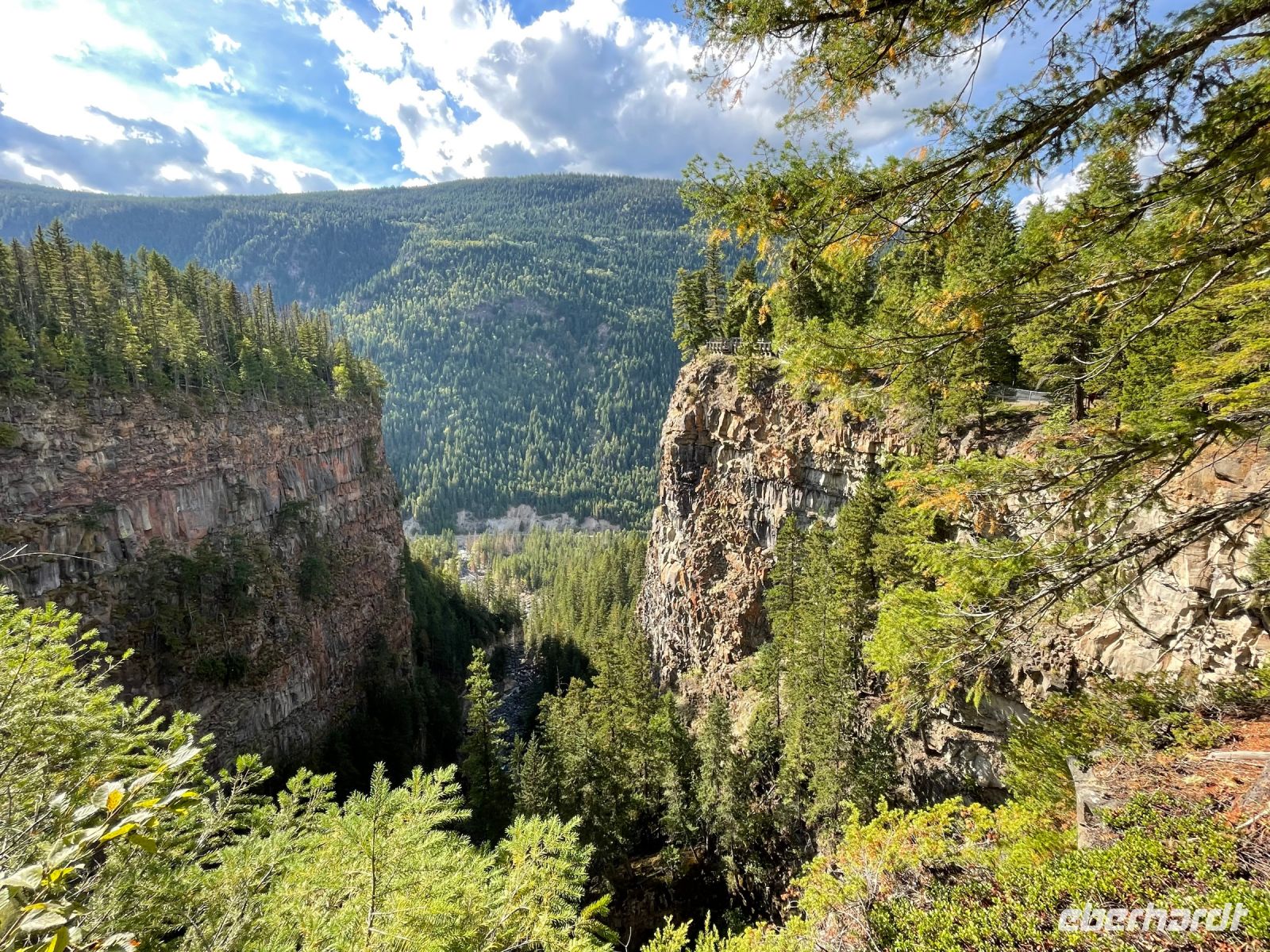 Nach einer kleinen Wanderung zu den Athabasca-Wasserfällen an unserem fünften Reisetag verlassen wir den Jasper-Nationalpark und reisen durch die Rocky Mountains weiter in Richtung Westen. Unterwegs stoppen wir am Mount Robson Visitor Center und erhaschen einen Blick auf den Gipfel als sich die Wolken verziehen. Er ist mit einer Höhe von 3.954 Metern der höchste Berg der kanadischen Rocky Mountains. Wir folgen dem Flusstal des Thompson Rivers durch ein dicht bewaldetes, bergiges Gebiet bis nach Clearwater. Der kleine Ort gilt als Eingangstor zum Wells Gray Provincial Park, der berühmt für seine zahlreichen Wasserfälle ist. Unsere Mittagspause legen wir im Restaurant „Painted Turtle“ am Dutch Lake ein, welches Reiseleiterin Nadja vorher für uns reserviert hat. Die Sonne scheint und wir genießen das tolle Ambiente. Gut gestärkt geht es weiter zum Spahub Wasserfall, Dawson Wasserfall und Helmcken Wasserfall wo wir jeweils einen kleinen Spaziergang und Fotopausen einlegen. Nach einem schönen Tagesprogramm übernachten wir in der Clearwater Lodge.