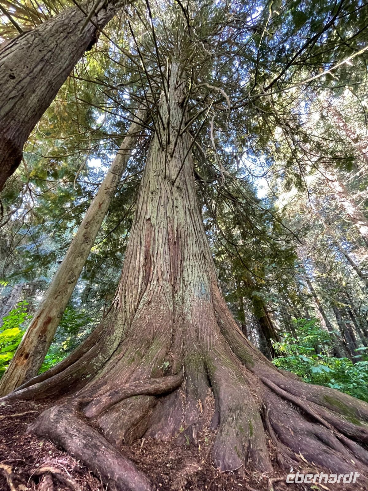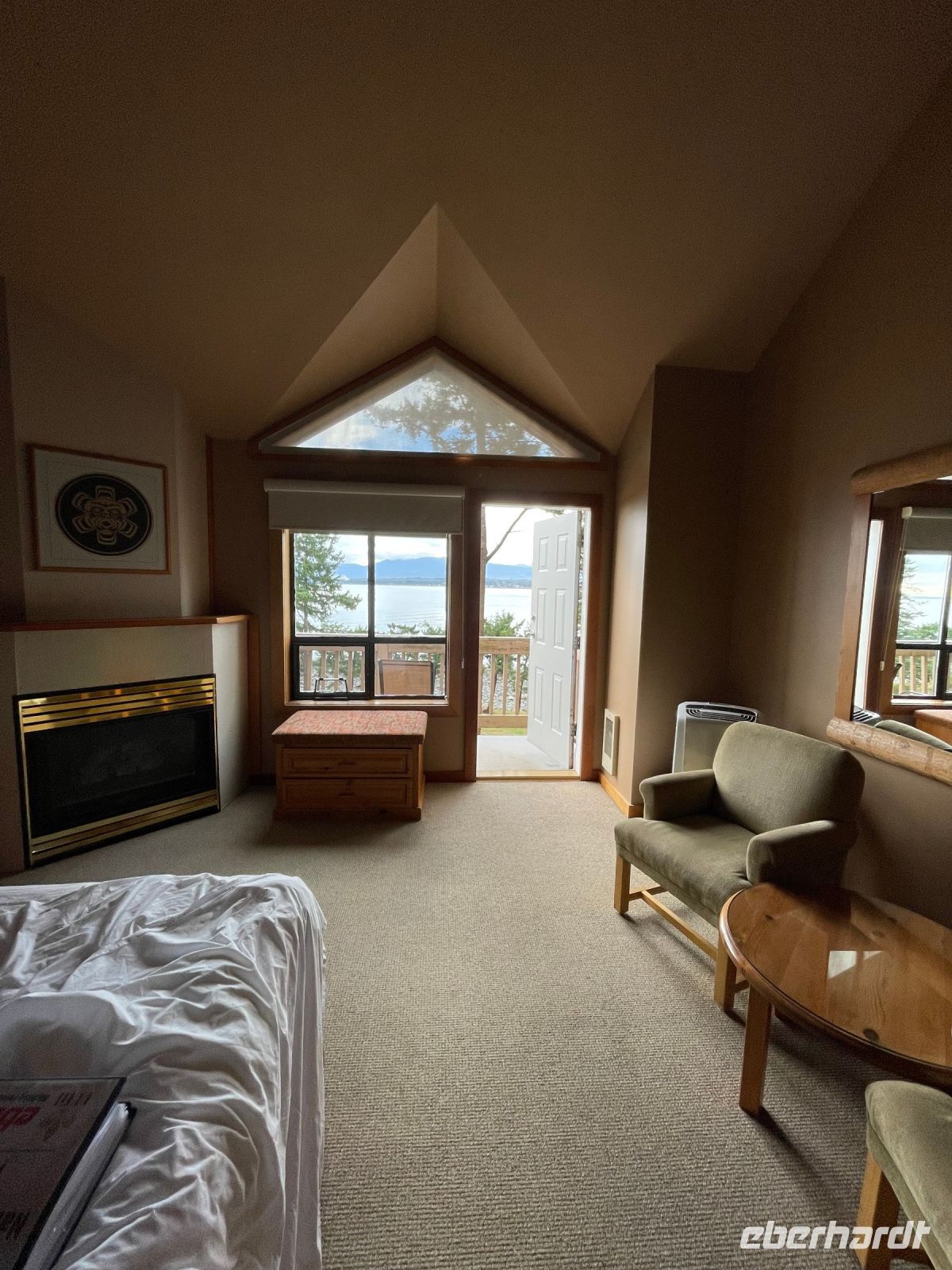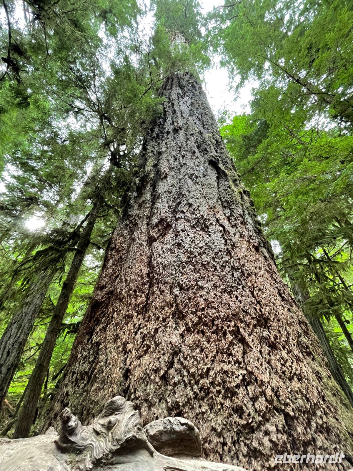 Heute beginnt der zweite Teil unserer Reise und wir verlassen die Berge, um die Westküste Kanadas zu bereisen. Wir durchqueren das Örtchen Squamisch und halten für einen Fotostopp am „Tantalus Lookout“ wo wir zum letzten Mal auf die Bergwelt von Whistler und Umgebung blicken. Angekommen in Horseshoe Bay setzen wir mit der Fähre nach Nanaimo auf Vancouver Island über. Auf der Insel angekommen legen wir eine Mittagspause im Hippie Ort Cooms ein, wo sich viele bunte und kreative Läden befinden. Das Highlight im Ort sind jedoch die Ziegen auf dem Grasdach eines Hauses. Weiter geht es in den MacMillan Provincial-Park wo wir einen Regenwald durchqueren, ganz im Kontrast zu den Wäldern, Bergen und Seen der letzten Tage. Uns erwarten Farne, die den Boden überwuchern, Holzbrücken, die über Bäche führen und Schlingpflanzen, die sich entlang der uralten Bäume räkeln. Die ältesten Bäume sind bis zu 800 Jahre alte Douglasienbäume – die zur Familie der Kieferngewächse zählen. Vom Regenwald geht es weiter nach Campbell River, die auch als „Lachs-Hauptstadt“ bezeichnet wird. Von dort aus setzen wir mit der Fähre nach Quadra Island über, unserem Übernachtungsziel für die nächsten beiden Tage. Wir checken ein in die Tsa Kwa Luten Lodge bzw. dem Cape Mudge Resort. Die geräumigen Zimmer bieten eine schöne Aussicht über die Discovery Passage nach Campbell River und zu den selbst im Sommer schneebedeckten Gipfeln vom White Ridge und Strathcona Provincial Park auf Vancouver Island… wenn mal die Sonne raus kommt. ??Abends kommen regelmäßig Weißwedelhirsche zu Besuch. So entdecken wir eine Kuh, die ihre beiden Jungen während der Dämmerung auf die Rasenflächen vor der Lodge führt. Die Lodge befindet sich im Eigentum der We Wai Kai Nation und wird auch von dieser betrieben. So stammt auch der Name, Tsa Kwa Luten, aus dem Indianischen und bedeutet so viel wie Versammlungsplatz. Dementsprechend wurde die Lobby ganz im Stil eines Kwagiulth Big House, eines Versammlungshauses, gebaut. Nach einem sehr leckeren Abendessen, lassen wir den Tag bei einem kanadischen Whisky-Likör (gesponsert von Eberhardt TRAVEL) in gemütlicher Runde ausklingen.