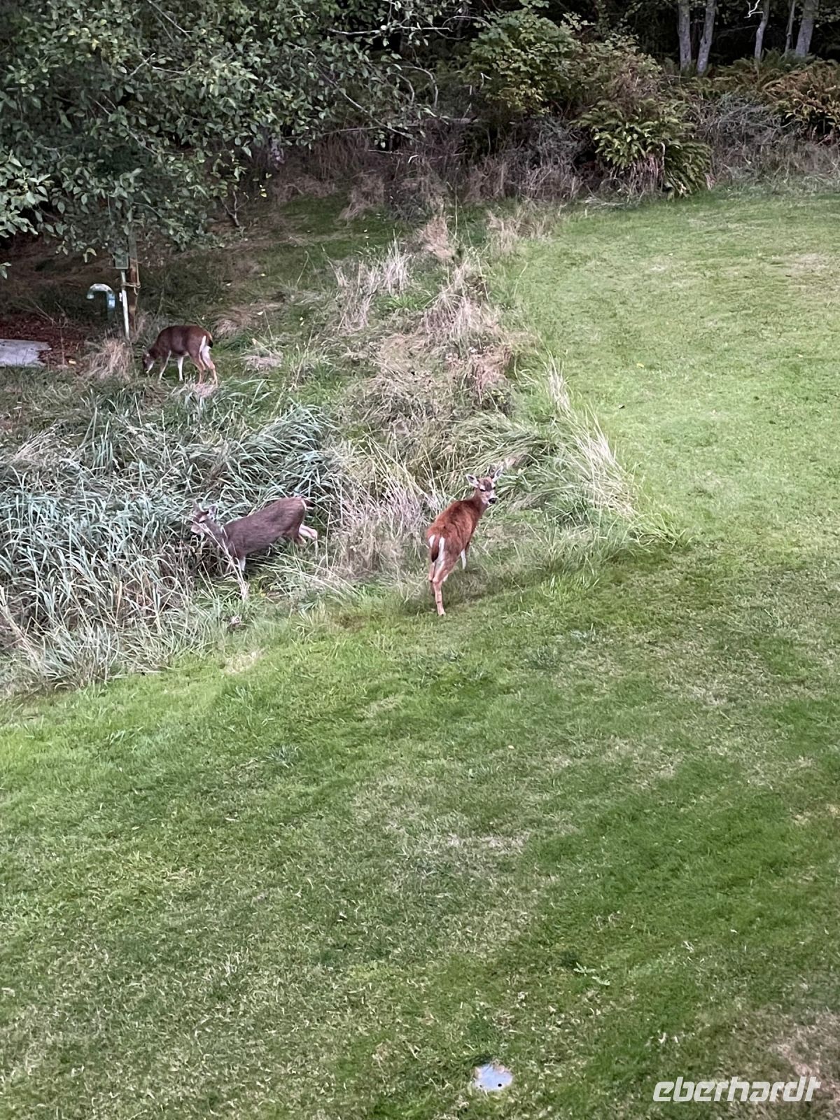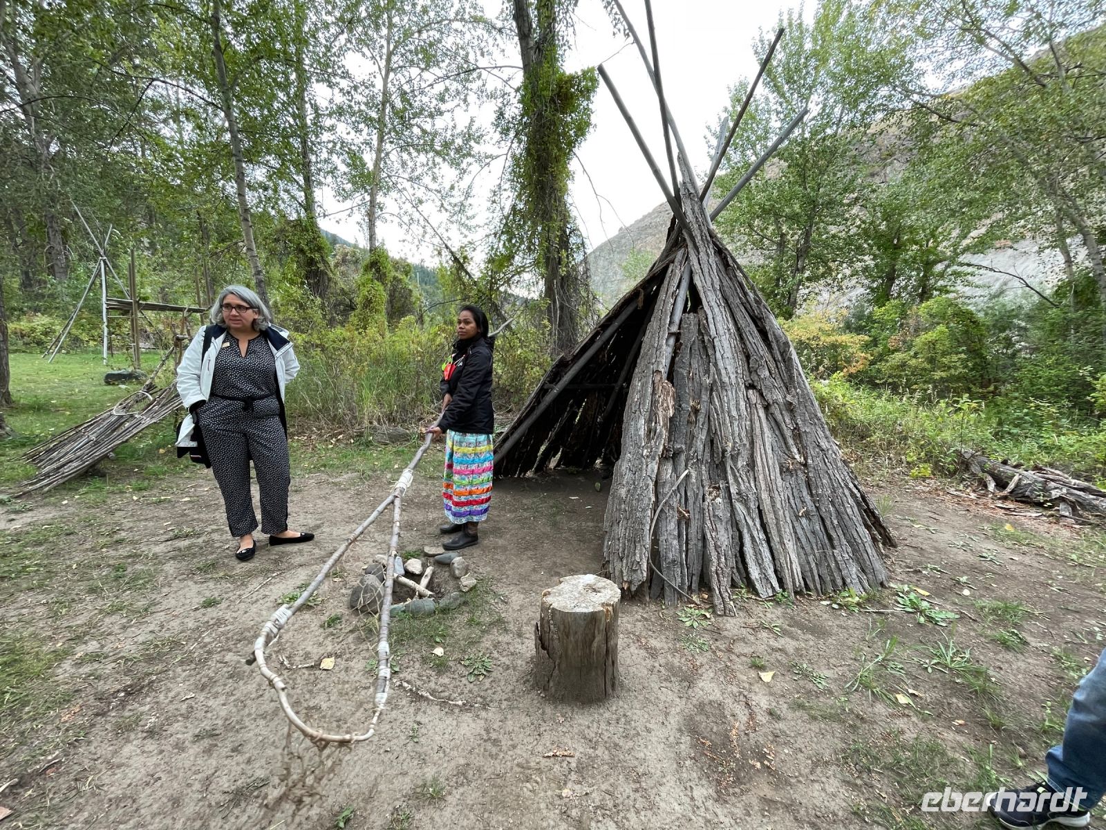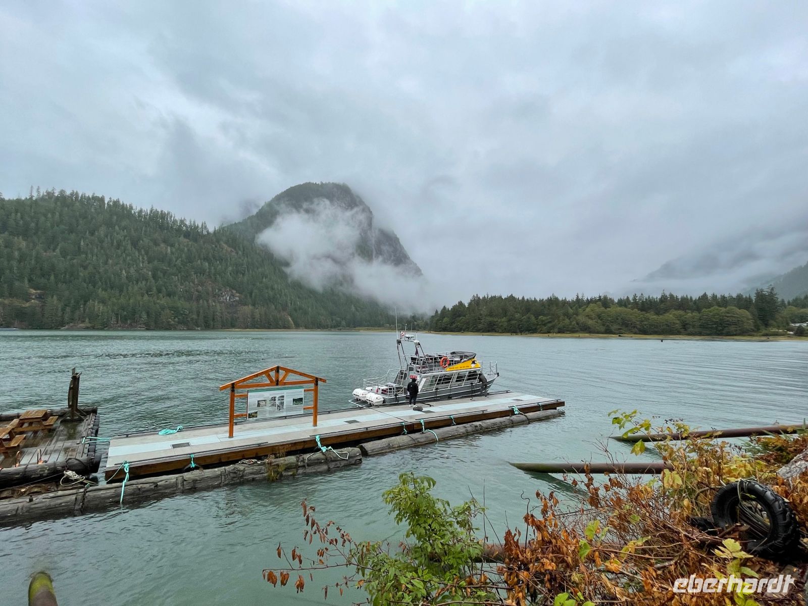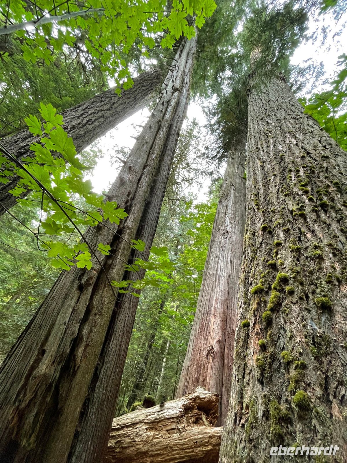 Heute beginnt der zweite Teil unserer Reise und wir verlassen die Berge, um die Westküste Kanadas zu bereisen. Wir durchqueren das Örtchen Squamisch und halten für einen Fotostopp am „Tantalus Lookout“ wo wir zum letzten Mal auf die Bergwelt von Whistler und Umgebung blicken. Angekommen in Horseshoe Bay setzen wir mit der Fähre nach Nanaimo auf Vancouver Island über. Auf der Insel angekommen legen wir eine Mittagspause im Hippie Ort Cooms ein, wo sich viele bunte und kreative Läden befinden. Das Highlight im Ort sind jedoch die Ziegen auf dem Grasdach eines Hauses. Weiter geht es in den MacMillan Provincial-Park wo wir einen Regenwald durchqueren, ganz im Kontrast zu den Wäldern, Bergen und Seen der letzten Tage. Uns erwarten Farne, die den Boden überwuchern, Holzbrücken, die über Bäche führen und Schlingpflanzen, die sich entlang der uralten Bäume räkeln. Die ältesten Bäume sind bis zu 800 Jahre alte Douglasienbäume – die zur Familie der Kieferngewächse zählen. Vom Regenwald geht es weiter nach Campbell River, die auch als „Lachs-Hauptstadt“ bezeichnet wird. Von dort aus setzen wir mit der Fähre nach Quadra Island über, unserem Übernachtungsziel für die nächsten beiden Tage. Wir checken ein in die Tsa Kwa Luten Lodge bzw. dem Cape Mudge Resort. Die geräumigen Zimmer bieten eine schöne Aussicht über die Discovery Passage nach Campbell River und zu den selbst im Sommer schneebedeckten Gipfeln vom White Ridge und Strathcona Provincial Park auf Vancouver Island… wenn mal die Sonne raus kommt. ??Abends kommen regelmäßig Weißwedelhirsche zu Besuch. So entdecken wir eine Kuh, die ihre beiden Jungen während der Dämmerung auf die Rasenflächen vor der Lodge führt. Die Lodge befindet sich im Eigentum der We Wai Kai Nation und wird auch von dieser betrieben. So stammt auch der Name, Tsa Kwa Luten, aus dem Indianischen und bedeutet so viel wie Versammlungsplatz. Dementsprechend wurde die Lobby ganz im Stil eines Kwagiulth Big House, eines Versammlungshauses, gebaut. Nach einem sehr leckeren Abendessen, lassen wir den Tag bei einem kanadischen Whisky-Likör (gesponsert von Eberhardt TRAVEL) in gemütlicher Runde ausklingen.