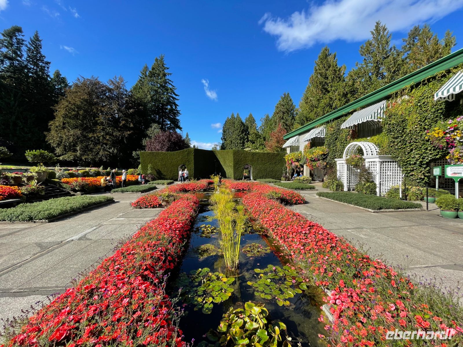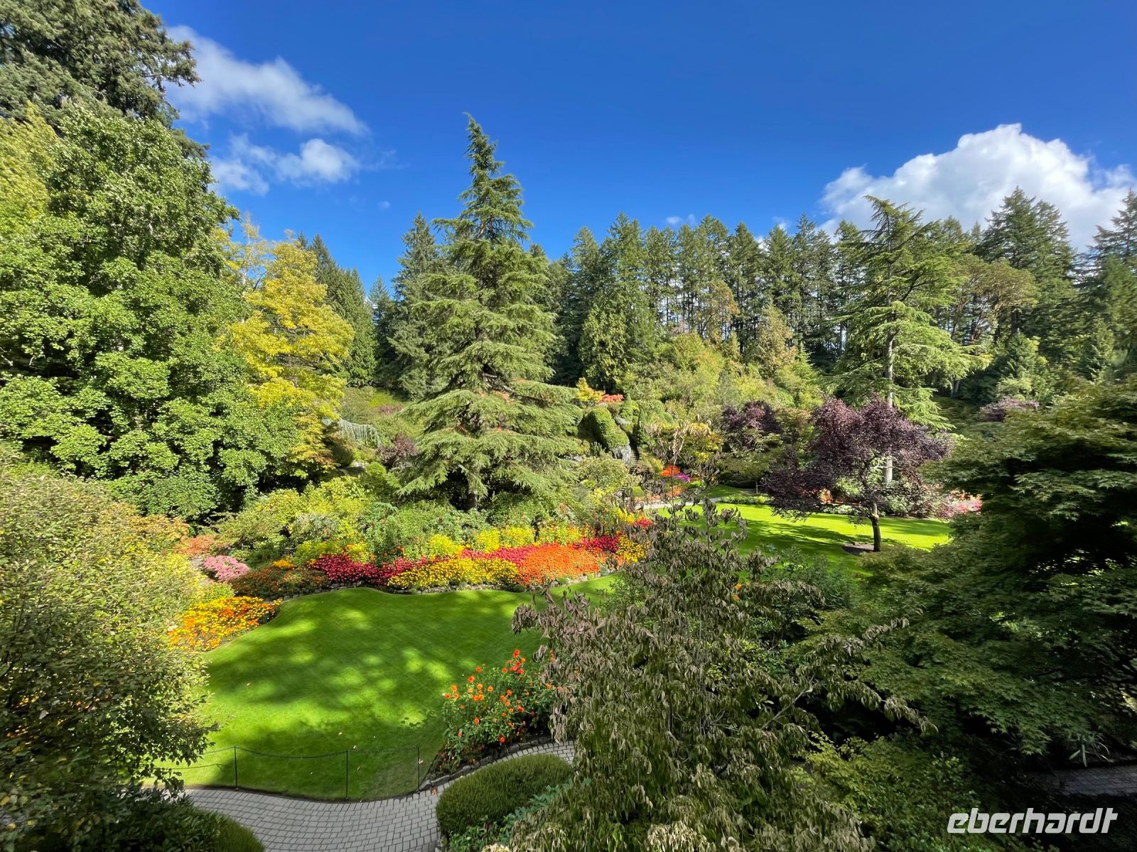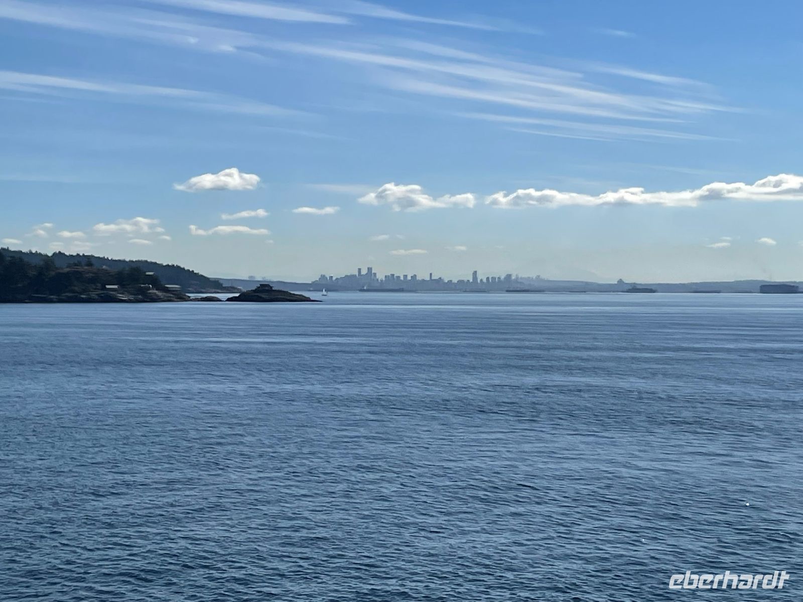 Nach dem Frühstück und dem Hotel Check-Out, spazieren wir gemeinsam zum Hafen um von dort aus eine 3-stündige Walbeobachtungstour zu unternehmen. Mit dem Boot fahren wir auf den Ozean hinaus und können die gigantischen Säuger aus nächster Nähe betrachten. Das Wetter ist sonnig und der Wellengang sehr gering. Wir haben Glück und sehen minutenlang mehreren Buckelwalen beim Auf- und Abtauchen zu. Kurze Zeit später sehen wir noch einige Orcas… einer kommt unserem Boot sogar richtig nahe. Wieder einmal sind wir begeistert! Auf dem Rückweg sehen wir noch einige Seehunde und Roben auf den Felsen liegen. Am Hafen wieder angekommen verabschieden wir uns wieder von der britischen Stadt Victoria und fahren in Richtung Butchart Gardens. Wir spazieren auf eigene Faust durch die traumhafte Parkanlage. Dieser im japanischen und italienischen Stil errichteter Garten zählt mit zu den schönsten in ganz Kanada. Wieder einmal haben wir Glück und die Sonne zeigt sich von der besten Seite. Danach fahren wir mit der Fähre von Swartz Bay nach Tsawwassen auf dem kanadischen Festland. Auf dieser Mini-Kreuzfahrt genießen wir die Ausblicke auf das Inselmeer der etwa 20 Gulf Islands. Von Tsawwassen ist es dann nur noch ein Katzensprung bis in die Weltstadt Vancouver. Die Metropolregion hat knapp 2,5 Mio. Einwohner und wird oft auch HongCouver bezeichnet, wegen der vielen Chinesen dich sich hier im Laufe der letzten 100 Jahre angesiedelt haben. Gegen Abend erreichen wir unser Hotel „Pinnacle Harbourfront“, wo wir gemeinsam einchecken und uns von unserem Busfahrer verabschieden. Er wird am nächsten Tag ca. 13 Stunden bis nach Calgary zurückfahren. Wir bedanken uns bei ihm mit einem großzügigen Trinkgeld. Unser Abendessen nehmen wir im Restaurant „Rouge Kitchen“ gleich um die Ecke ein.