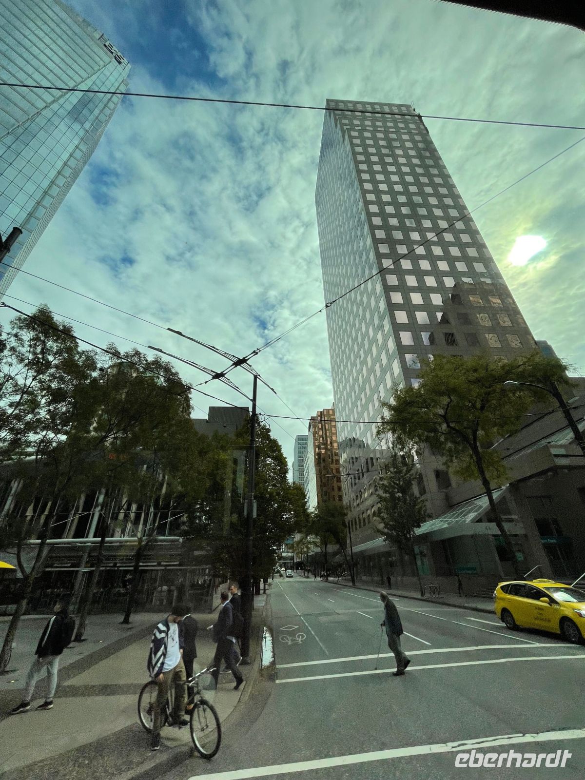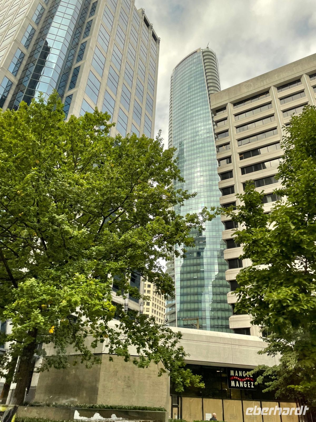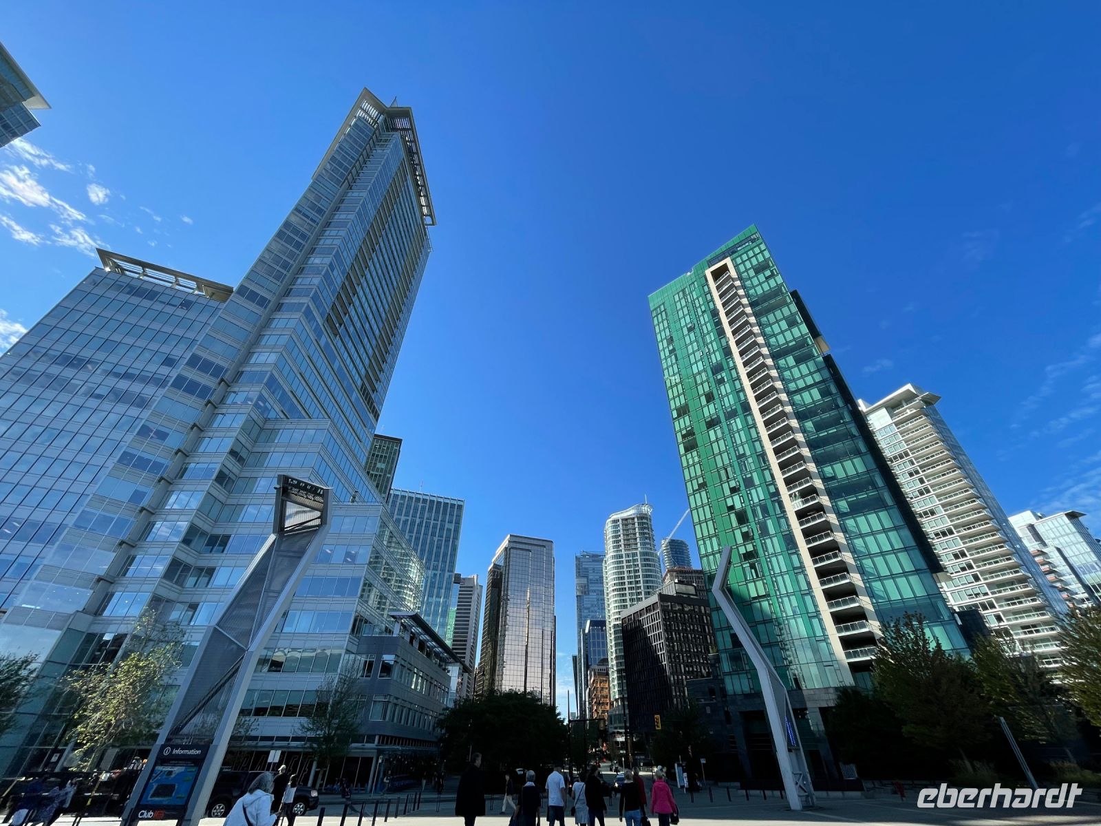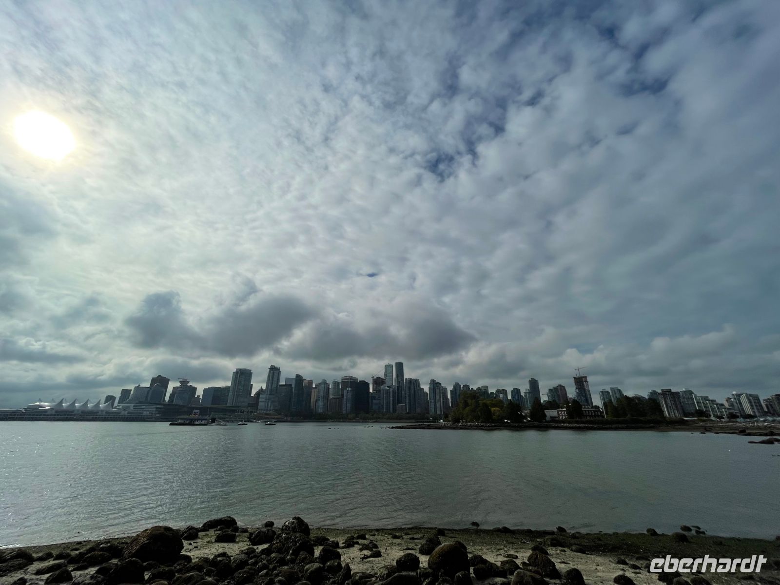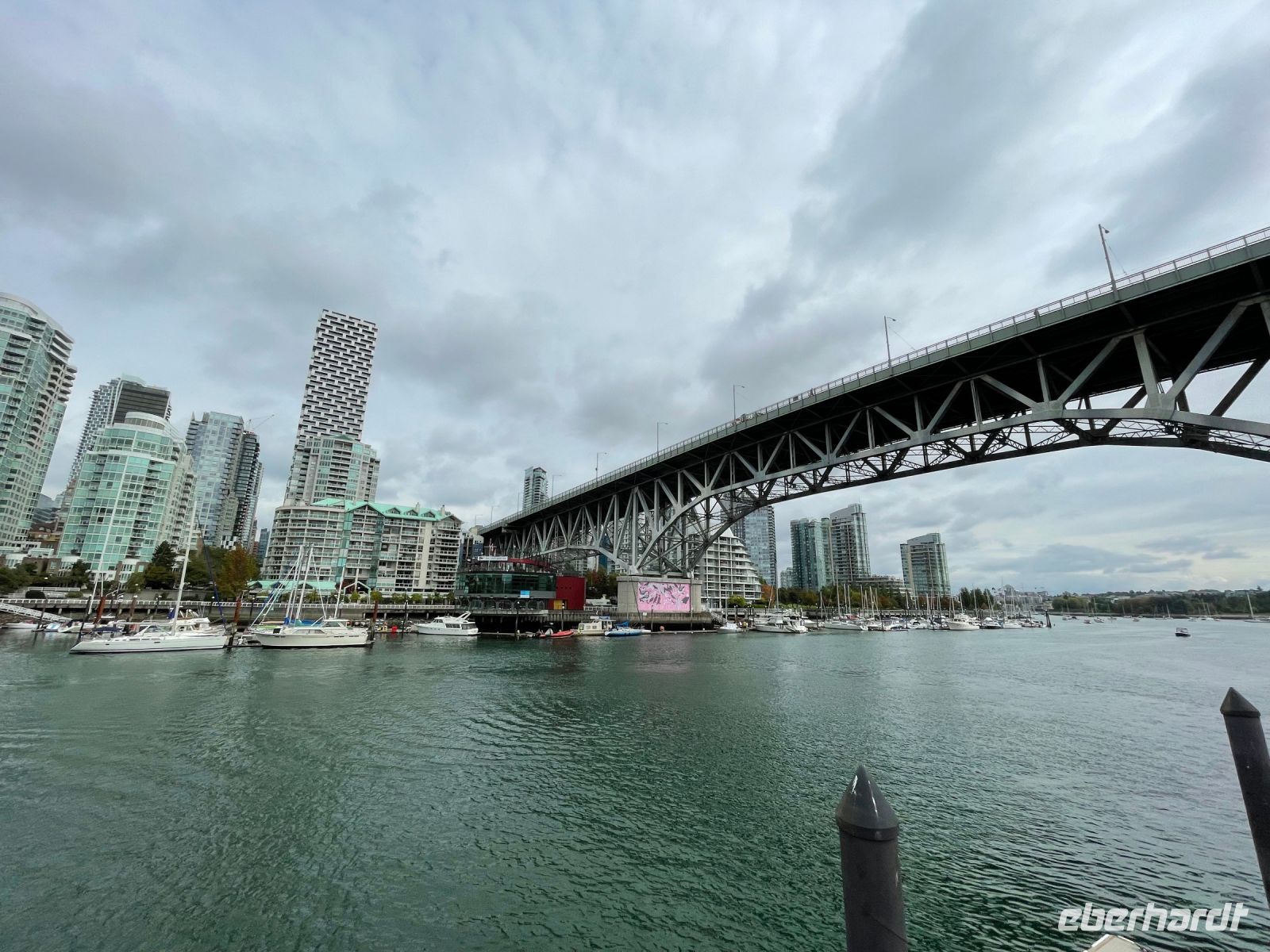 An unserem ersten Tag in der kanadischen Großstadt unternehmen wir eine Stadtrundfahrt. Wir fahren zuerst durch Downtown, Chinatown und erreichen kurze Zeit später Gastown. Dieser Teil der Stadt beeindruckt uns mit einem besonderen Charme. Die Gebäude sind im viktorianischen Stil gebaut, umgeben von Kopfsteinpflaster und vielen Restaurants. Das Wahrzeichen ist die antike Dampfuhr, die meist von vielen Besuchern umlagert wird, doch in Coronazeiten haben wir Glück und es sind nur wenige Besucher da. Weiter geht es in den Stanley Park, wo wir die Totempfähle sehen und einen tollen Blick auf die Skyline haben. Anschließend haben wir Zeit für eine ausgiebige Mittagspause auf Granville Island, dem Vergnügungsviertel der Stadt. Hier befinden sich zahlreiche Geschäfte, eine Markthalle und unzählige Restaurants. Gut gestärkt geht es nun in die Natur. Wir besuchen den Capilano Suspension Bridge Park, ein Naturpark mit Baumwipfelpfad, Naturlehrpfad, Skywalk und einer der längsten und höchsten Hängebrücken der Welt. Die frei schwingende Seilbrücke ist 70 Meter hoch und 136 Meter lang und somit eine der Topattraktionen Vancouvers.
