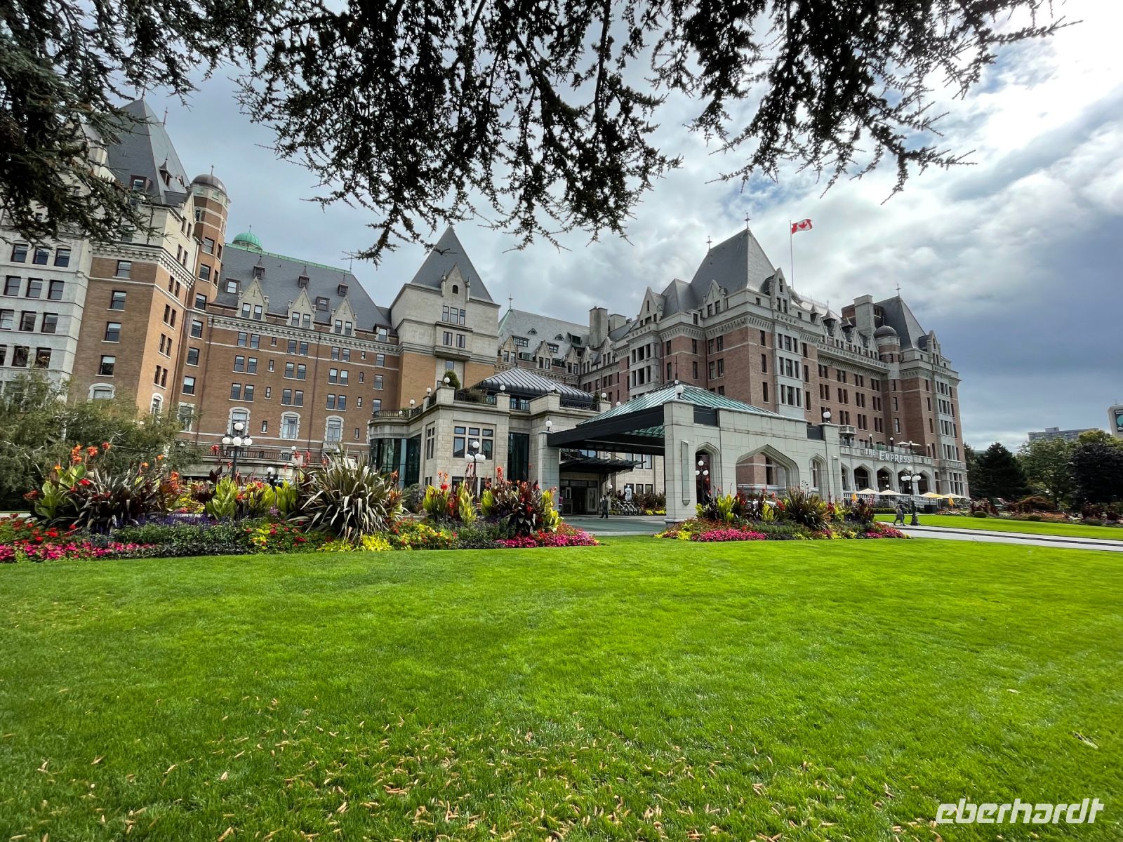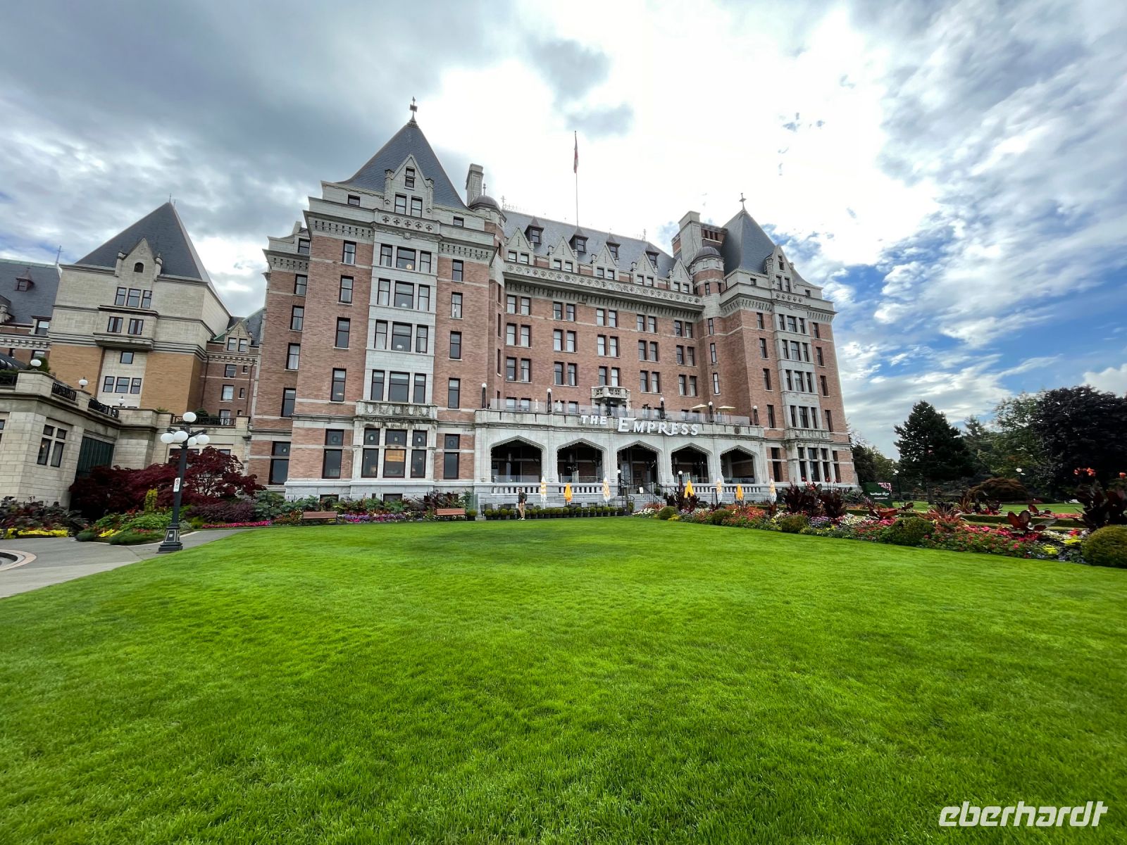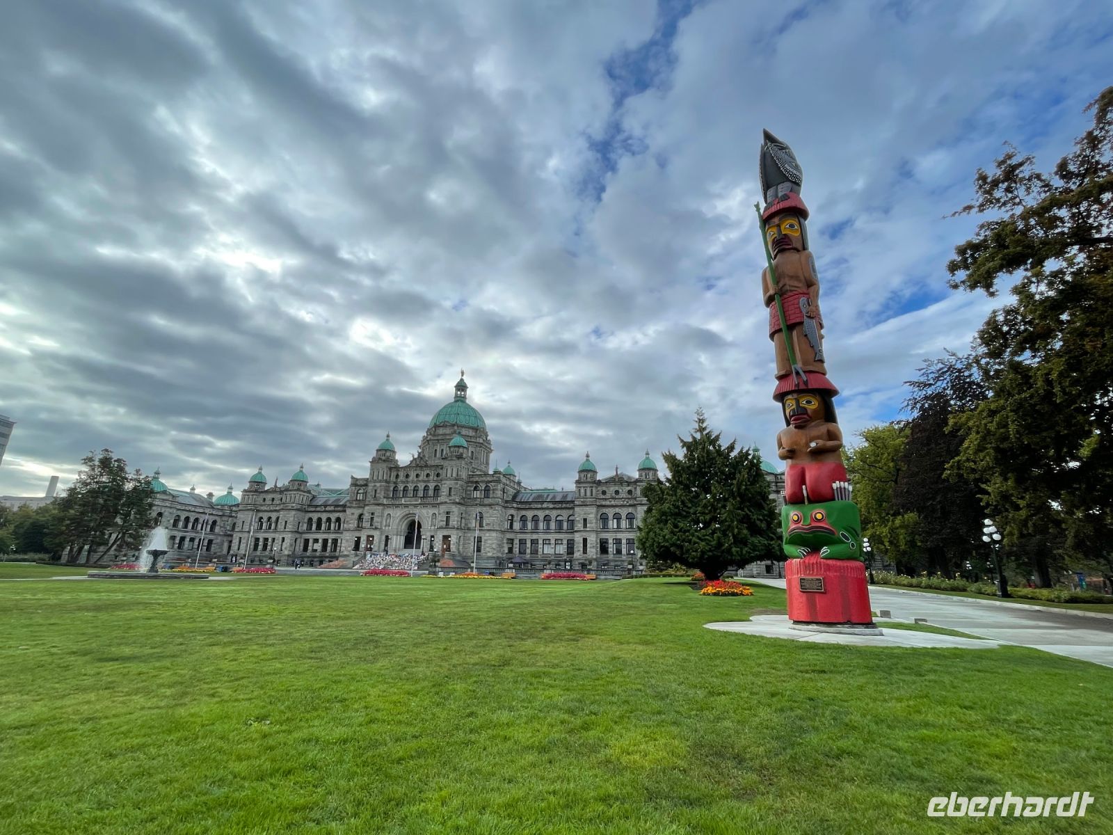 Nun heißt es wieder Abschied nehmen von Quadra Island. Nach einem kleinen Spaziergang in der Umgebung vom Hotel, fahren wir gegen Mittag zum Fährhafen. Leider können wir nicht früh mit der Fähre fahren, weil der Wasserpegel noch zu niedrig ist. Auf der anderen Seite angekommen, fahren wir in Richtung Chemainus. Diese Ortschaft ist bekannt für seine zahlreichen Wandmalereien, die an den Hauswänden in der ganzen Stadt zu finden sind. Dort haben wir Zeit für eine Mittagspause und für individuelle Erkundungen. Am frühen Abend erreichen wir die Hauptstadt British Columbias: Victoria benannt nach der britischen Königin Victoria. Wir unternehmen eine kleine orientierende Stadtrundfahrt und halten am Beacon Hill, dort wo sich die Meile 0 vom Transkanada Highway befindet. Danach checken wir in unser Hotel ein und unternehmen nach dem Abendessen noch einen kleinen Stadtrundgang zum Hafen und zum Parlament.