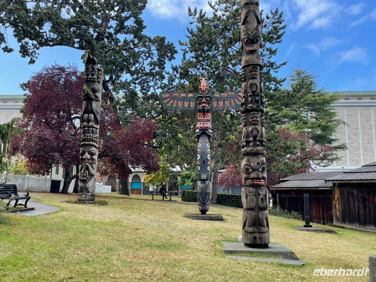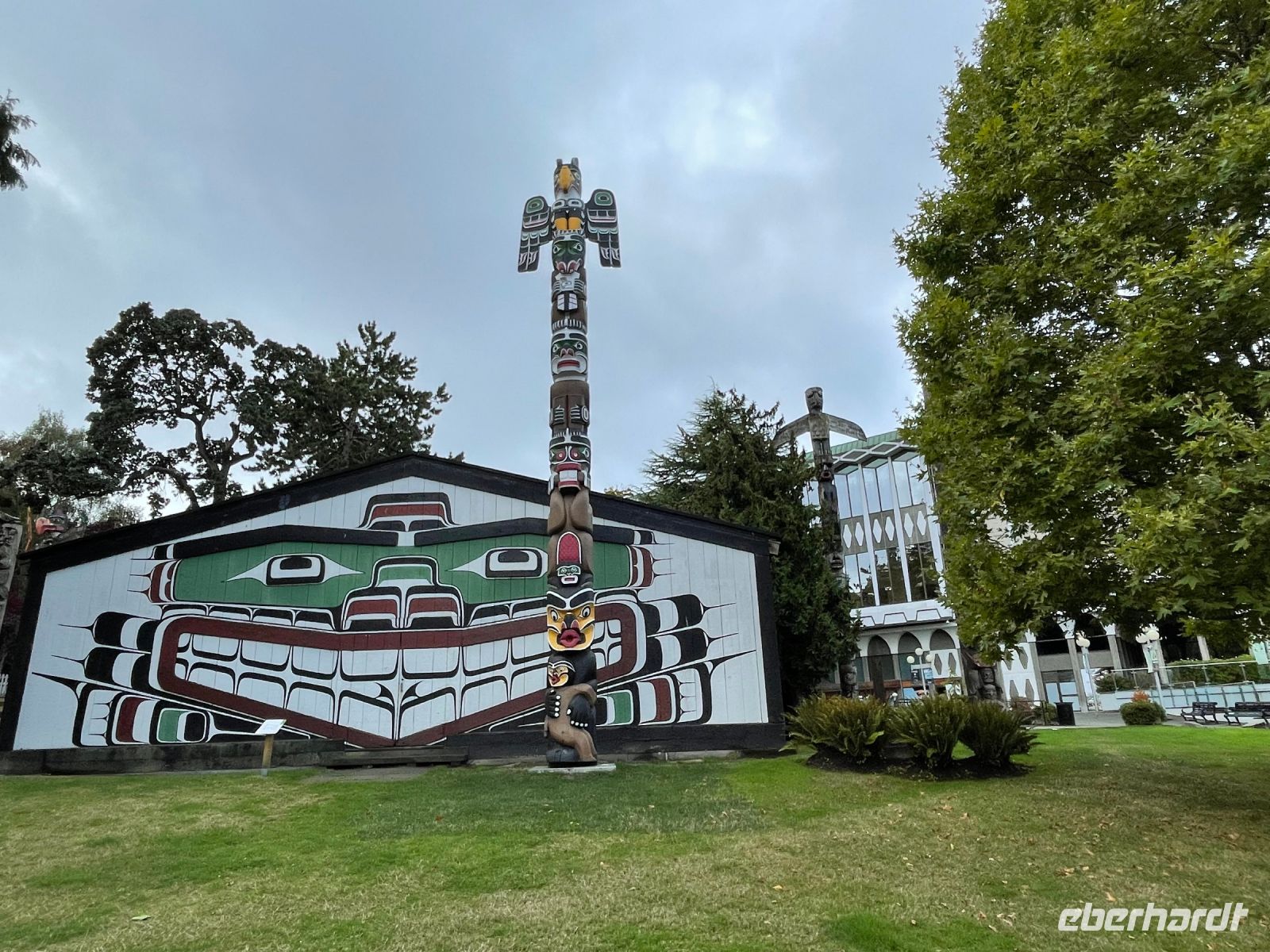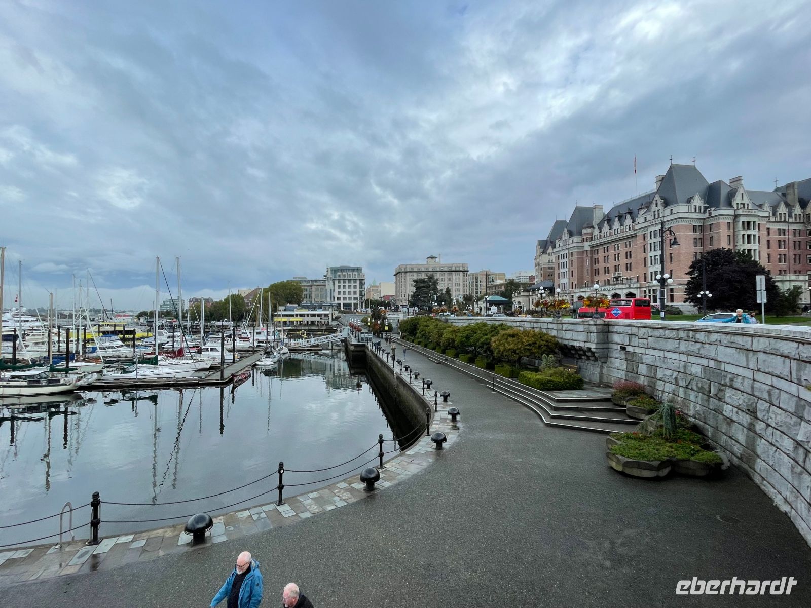 Nun heißt es wieder Abschied nehmen von Quadra Island. Nach einem kleinen Spaziergang in der Umgebung vom Hotel, fahren wir gegen Mittag zum Fährhafen. Leider können wir nicht früh mit der Fähre fahren, weil der Wasserpegel noch zu niedrig ist. Auf der anderen Seite angekommen, fahren wir in Richtung Chemainus. Diese Ortschaft ist bekannt für seine zahlreichen Wandmalereien, die an den Hauswänden in der ganzen Stadt zu finden sind. Dort haben wir Zeit für eine Mittagspause und für individuelle Erkundungen. Am frühen Abend erreichen wir die Hauptstadt British Columbias: Victoria benannt nach der britischen Königin Victoria. Wir unternehmen eine kleine orientierende Stadtrundfahrt und halten am Beacon Hill, dort wo sich die Meile 0 vom Transkanada Highway befindet. Danach checken wir in unser Hotel ein und unternehmen nach dem Abendessen noch einen kleinen Stadtrundgang zum Hafen und zum Parlament.