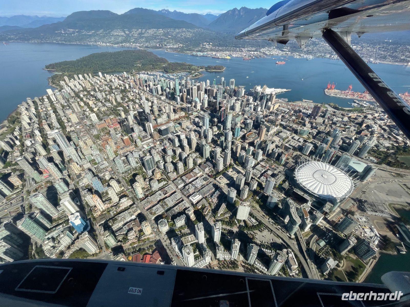 Den Vormittag unseres letzten Reisetages kann jeder individuell gestalten. Doch die meisten haben sich für einen Wasserflugzeug-Rundflug mit mir entschieden. Wir spazieren also vom Hotel etwa 10min. zur Waterfront und checken für den knapp 25minütigen Rundflug ein. Wir sind 14 Personen an Bord und haben somit ein ganzes Flugzeug für uns allein. Wir fliegen in Richtung Berge über die Lions Brücke und über die imposante Skyline der Stadt. Dies ist der krönende Abschluss einer tollen Reise. Nach sicherer Landung, haben wir noch Zeit für Fotos bevor wir wieder zum Hotel zurück spazieren.