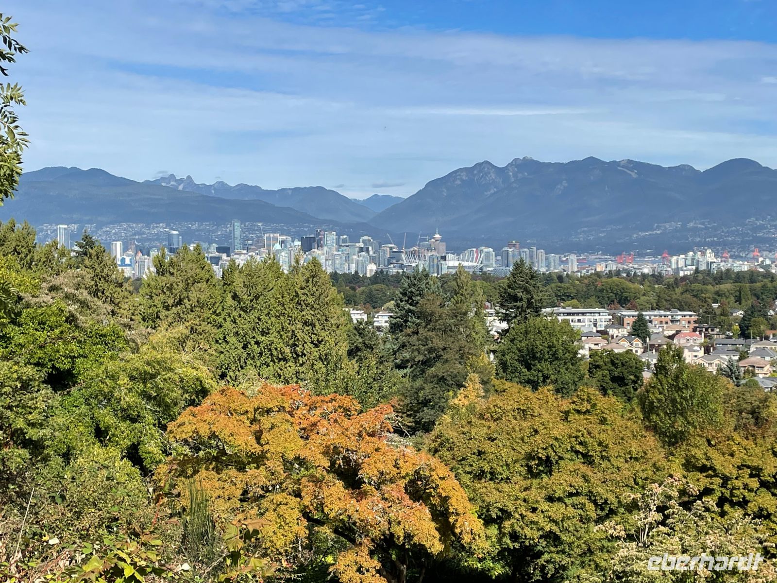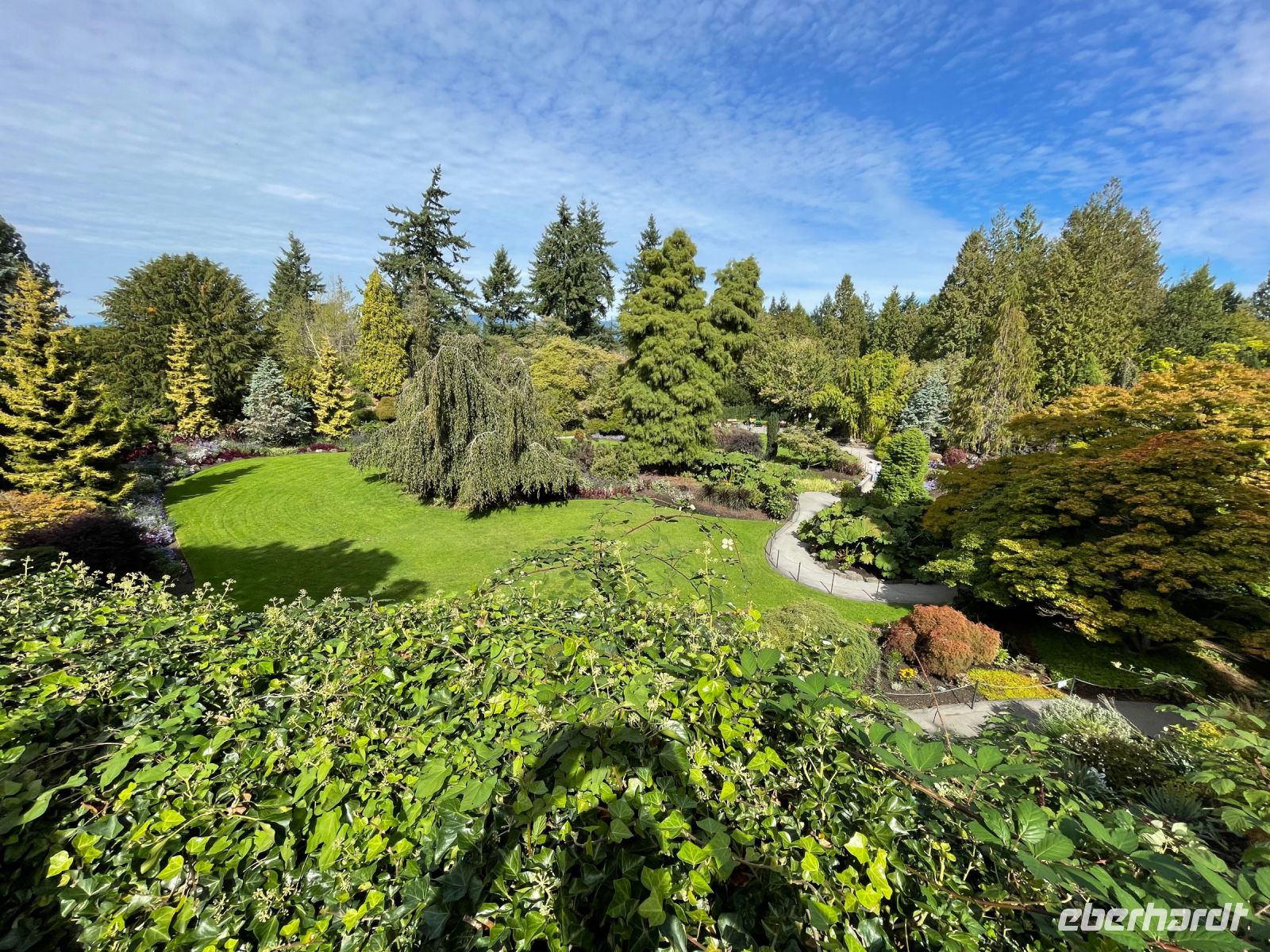 Um 11:40 fahren wir mit gepackten Koffern zum Flughafen. Unterwegs stoppen wir noch im Queen Elizabeth Park für einen kleinen Rundgang und einen atemberaubenden Blick auf die Stadt und die Berge. Der Park ist mit 125m über dem Meeresspiegel der höchste Punkt in Vancouver ist.