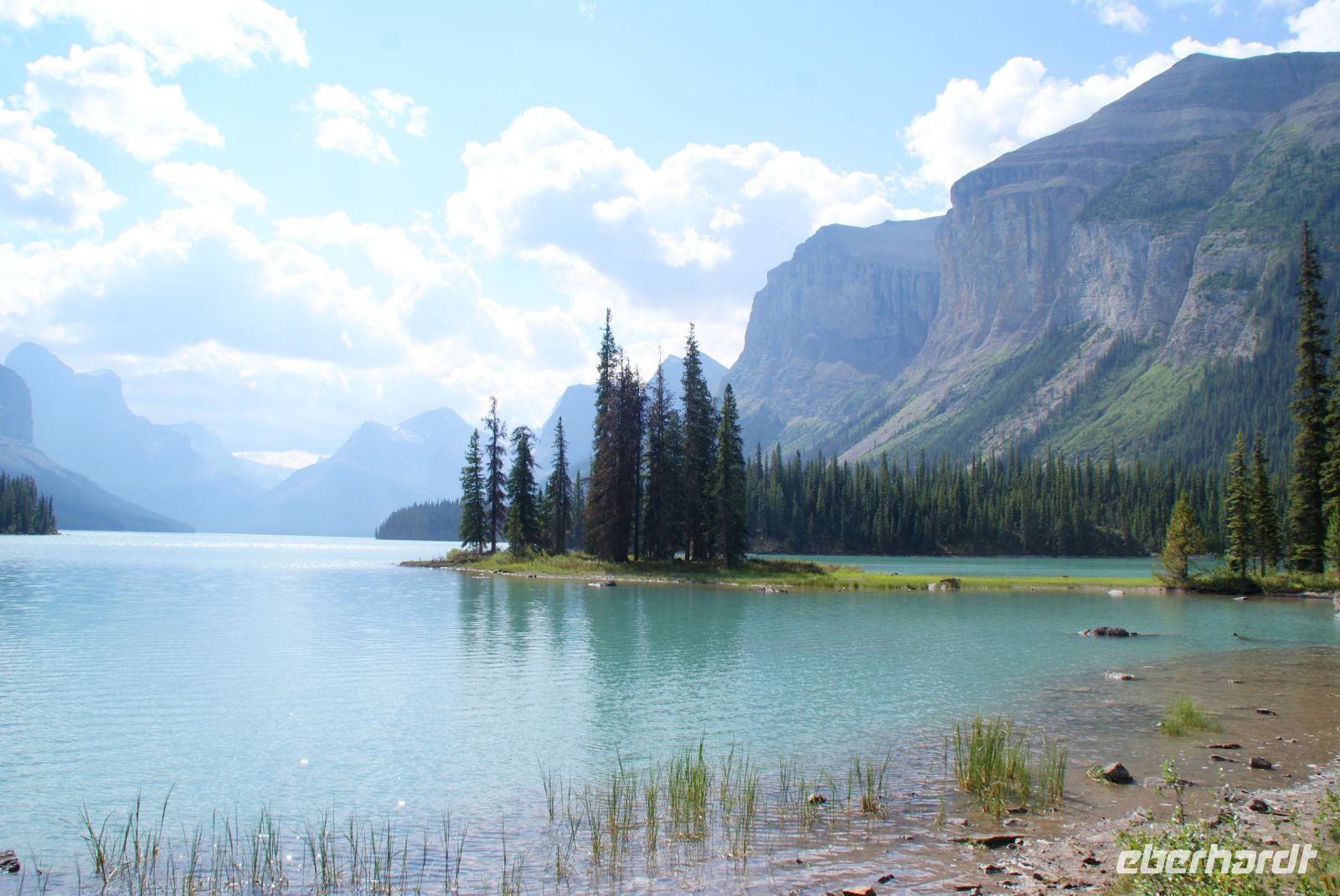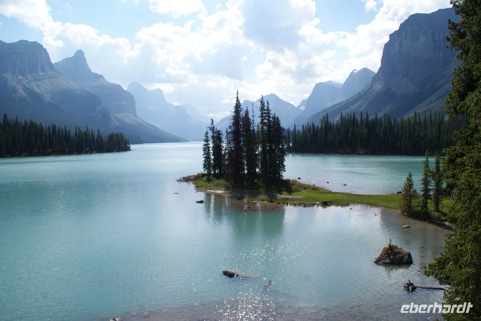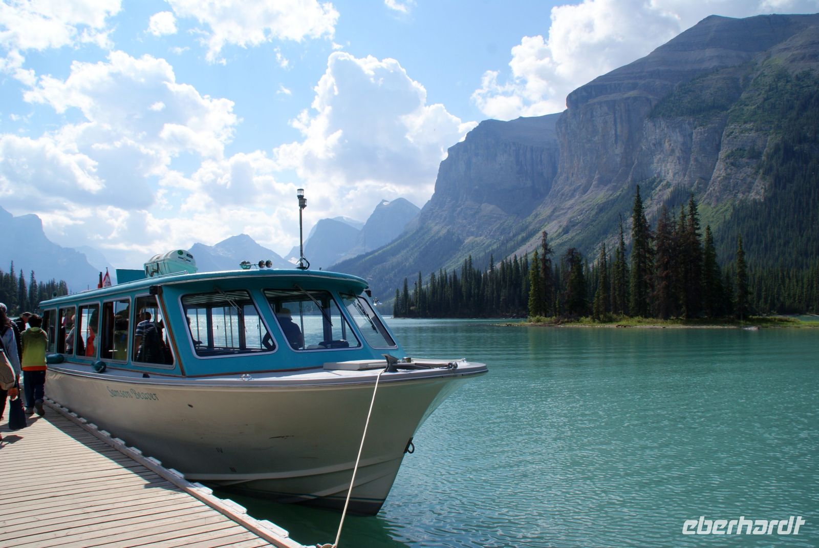 Am heutigen Tag werden wir unser wahres Wunder erleben… Bestens genächtigt und gefrühstückt verlassen wir unsere schönen Chalets und halten zunächst am Medicine Lake. Dieser liegt in einem Gebiet, in dem es vor Jahren einen verheerenden Waldbrand gegeben und von dem sich die Natur bis heute nur wenig erholt hat. In der Ferne erspähen wir einen Adlerhorst, der verlassen im Baum thront. Vormittags erreichen wir unser erstes Tagesziel, den berühmten Maligne Lake auf 1670 m Höhe mit der noch bekannteren Spirit Island. Zunächst begeben wir uns jedoch auf einen schönen Spaziergang am See entlang und genießen die ruhige, morgendliche Atmosphäre und das besondere Panorama. Anschließend gehen wir an Bord unserer geplanten Bootstour und mit den Guides Shannon und Gregory fahren wir Richtung Spirit Island. Shannon berichtet viel Interessantes während unserer 35-minütigen Fahrt, so hören wir, dass der See 22 Km lang, 1,2 Km breit und bis zu 97 m tief ist. Die Saison für die Bootstouren ist nur kurz und dauert von Mitte Juni bis Mitte Oktober. Davor und danach ist noch und schon wieder mit Schnee und Eis in der Höhe zu rechnen. Auf der Spirit Island haben wir ausreichend Gelegenheit, das weltbekannte Panorama zu fotografieren. Durch einen Fotowettbewerb wurde diese Kulisse weltberühmt, da ein Foto der Spirit Island in der New Yorker U-Bahn zu sehen war. Daraufhin wurde dieser Ort zum absoluten Touristenmagnet. Für die indigene Bevölkerung ist dies ein heiliger Ort. Einer Legende derer zufolge war die Insel der heimliche Treffpunkt eines jungen Liebespaares aus verfeindeten Stämmen. Als der Vater der jungen Frau von dieser Beziehung erfuhr, verbot er ihr, die Insel jemals wieder aufzusuchen. Ihr Liebhaber aber kehrte sein Leben lang immer wieder hierher zurück und wartete auf sie, bis er schließlich sogar an diesem Ort verstarb. Sein Geist soll heute noch auf dem Eiland umgehen und hat ihm so den Namen Spirit Island (Geisterinsel) verliehen. Bei unserem kurzen Spaziergang an Land passieren einige junge Hirsche unsere Strecke, was nochmals ein besonderes Highlight für uns bedeutete. Nach beendeter Bootstour und einem Mittagssnack, brechen wir auf, um den Maligne Canyon zu erkunden. Wir wandern an diesem entlang, wo der Maligne Fluss teilweise bis zu 51 m tief unter uns fließt und auf imposante Art und Weise, die unterliegenden Felsen ausgewaschen hat. Zurück Richtung Jasper wollten wir zunächst noch den Pyramid Lake (Pyramidensee) besuchen, werden jedoch von einem ungeahnt tollen Erlebnis aufgehalten. Ich entdecke am Stadtrand von Jasper in einer Wohnstraße einen Schwarzbären!!!! Renzo nimmt Fahrt auf, wendet und im Sauseschritt fliegen wir zurück Richtung Wohngebiet. Der Bär ist noch da und dazu auch noch seine Jungtiere. Wir stehen mit unserem Bus 5 m entfernt und dürfen diesen besonderen Moment genießen. Anwohner haben jedoch bereits die Ranger gerufen, welche vermutlich die Tiere betäuben und aus der Stadt hinausbringen. Glücklich über das Erlebte fahren wir nun zum Pyramid Lake und laufen über eine Brücke auf eine Insel, auf der nochmals wunderschöne Aufnahmen des Sees und auch der Pyramid Mountain entstehen. Zurück in Jasper bleibt noch genügend Zeit, das kleine Örtchen zu erkunden und nach so vielen Erlebnissen kehren wir zurück zur schönen Beckers Chalet und freuen uns auf ein erneut herrliches Abendessen mit besonderer Auswahl.