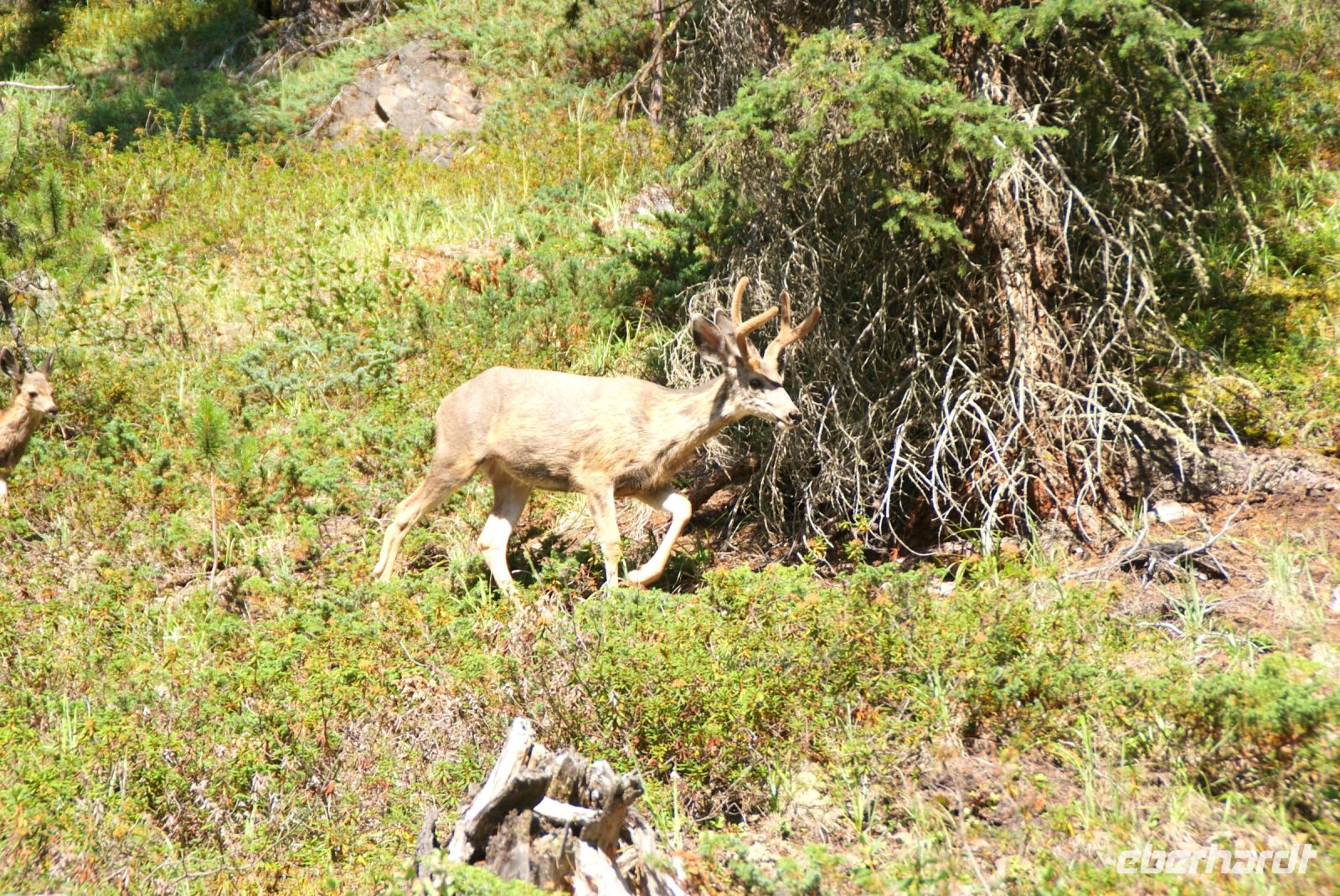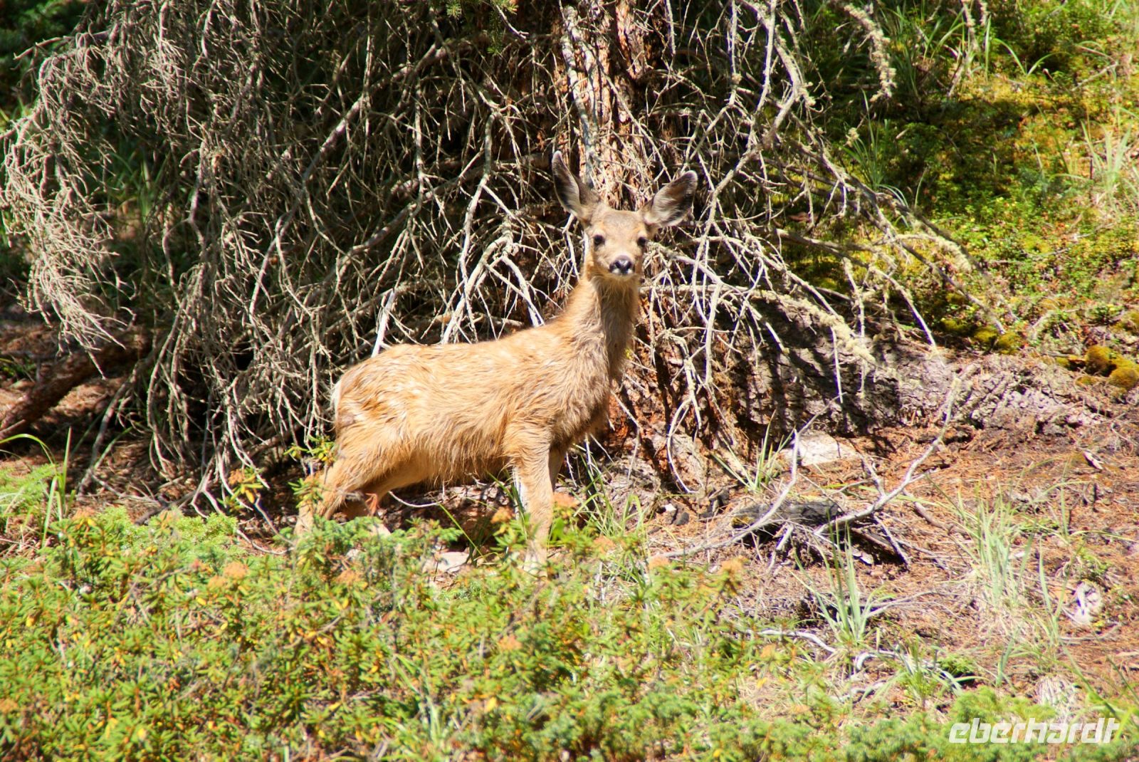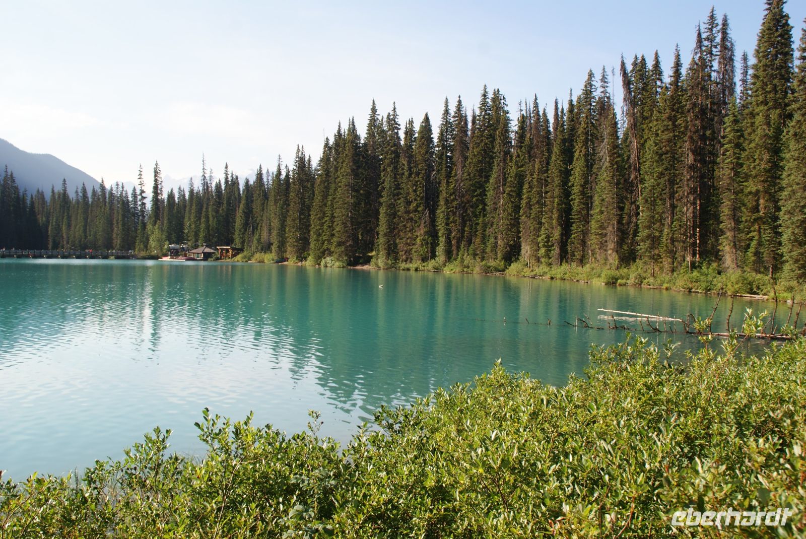 Am heutigen Tag werden wir unser wahres Wunder erleben… Bestens genächtigt und gefrühstückt verlassen wir unsere schönen Chalets und halten zunächst am Medicine Lake. Dieser liegt in einem Gebiet, in dem es vor Jahren einen verheerenden Waldbrand gegeben und von dem sich die Natur bis heute nur wenig erholt hat. In der Ferne erspähen wir einen Adlerhorst, der verlassen im Baum thront. Vormittags erreichen wir unser erstes Tagesziel, den berühmten Maligne Lake auf 1670 m Höhe mit der noch bekannteren Spirit Island. Zunächst begeben wir uns jedoch auf einen schönen Spaziergang am See entlang und genießen die ruhige, morgendliche Atmosphäre und das besondere Panorama. Anschließend gehen wir an Bord unserer geplanten Bootstour und mit den Guides Shannon und Gregory fahren wir Richtung Spirit Island. Shannon berichtet viel Interessantes während unserer 35-minütigen Fahrt, so hören wir, dass der See 22 Km lang, 1,2 Km breit und bis zu 97 m tief ist. Die Saison für die Bootstouren ist nur kurz und dauert von Mitte Juni bis Mitte Oktober. Davor und danach ist noch und schon wieder mit Schnee und Eis in der Höhe zu rechnen. Auf der Spirit Island haben wir ausreichend Gelegenheit, das weltbekannte Panorama zu fotografieren. Durch einen Fotowettbewerb wurde diese Kulisse weltberühmt, da ein Foto der Spirit Island in der New Yorker U-Bahn zu sehen war. Daraufhin wurde dieser Ort zum absoluten Touristenmagnet. Für die indigene Bevölkerung ist dies ein heiliger Ort. Einer Legende derer zufolge war die Insel der heimliche Treffpunkt eines jungen Liebespaares aus verfeindeten Stämmen. Als der Vater der jungen Frau von dieser Beziehung erfuhr, verbot er ihr, die Insel jemals wieder aufzusuchen. Ihr Liebhaber aber kehrte sein Leben lang immer wieder hierher zurück und wartete auf sie, bis er schließlich sogar an diesem Ort verstarb. Sein Geist soll heute noch auf dem Eiland umgehen und hat ihm so den Namen Spirit Island (Geisterinsel) verliehen. Bei unserem kurzen Spaziergang an Land passieren einige junge Hirsche unsere Strecke, was nochmals ein besonderes Highlight für uns bedeutete. Nach beendeter Bootstour und einem Mittagssnack, brechen wir auf, um den Maligne Canyon zu erkunden. Wir wandern an diesem entlang, wo der Maligne Fluss teilweise bis zu 51 m tief unter uns fließt und auf imposante Art und Weise, die unterliegenden Felsen ausgewaschen hat. Zurück Richtung Jasper wollten wir zunächst noch den Pyramid Lake (Pyramidensee) besuchen, werden jedoch von einem ungeahnt tollen Erlebnis aufgehalten. Ich entdecke am Stadtrand von Jasper in einer Wohnstraße einen Schwarzbären!!!! Renzo nimmt Fahrt auf, wendet und im Sauseschritt fliegen wir zurück Richtung Wohngebiet. Der Bär ist noch da und dazu auch noch seine Jungtiere. Wir stehen mit unserem Bus 5 m entfernt und dürfen diesen besonderen Moment genießen. Anwohner haben jedoch bereits die Ranger gerufen, welche vermutlich die Tiere betäuben und aus der Stadt hinausbringen. Glücklich über das Erlebte fahren wir nun zum Pyramid Lake und laufen über eine Brücke auf eine Insel, auf der nochmals wunderschöne Aufnahmen des Sees und auch der Pyramid Mountain entstehen. Zurück in Jasper bleibt noch genügend Zeit, das kleine Örtchen zu erkunden und nach so vielen Erlebnissen kehren wir zurück zur schönen Beckers Chalet und freuen uns auf ein erneut herrliches Abendessen mit besonderer Auswahl.