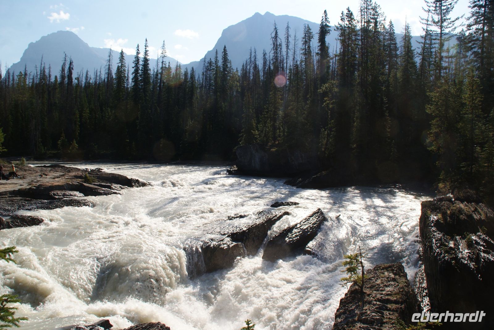 Heute Morgen reisen wir zeitig ab, denn ein tolles Tagesprogramm erwartet uns. Wir begeben uns auf den Trans-Canada-Highway No.1 der von Neufundland bis Victoria führt. Unseren ersten Halt machen wir am sogenannten Spiraltunnel, wo wir auch tatsächlich just bei unserer Ankunft einen Güterzug beobachten können, wie sich dieser durch die Serpentinen und den Tunnel schlängelt. Zufrieden setzen wir unsere Fahrt zum Emerald Lake fort. Dieser macht seinem Namen alle Ehre und es entstehen herrliche Aufnahmen des smaragdgrünen Wassers, während wir einen schönen Spaziergang am See entlang unternehmen. Weiter geht die Reise zur Natural Bridge-der sogenannten Naturbrücke, an der wir die Wassermassen bestaunen, die sich in die Tiefe stürzen. Am Athabasca Gletscher und dem sogenannten Columbia Icefield angekommen, begeben wir uns mit dem Ice-Explorer auf den Gletscher, natürlich nicht ohne das Jahrtausend alte Gletscherwasser zu trinken, welches eine verjüngende Wirkung haben soll. Einen weiteren tollen Panoramablick haben wir am Aussichtspunkt „Goats & Glaciers“, wo wir die Weite des unter uns liegenden Flussbetts mit dahinter liegender Bergwelt bestaunen. An den Athabasca Falls erhalten wir erneut einen Eindruck, mit welcher Kraft sich der Athabasca Fluss seinen Weg nimmt und auf selbigem unternehmen wir am Nachmittag eine 2-stündige Floßfahrt. Guide Matthew führt uns auf unserer Tour über etliche Stromschnellen und sorgt dafür, dass wir alle abwechselnd ein bisschen befeuchtet werden. Wir genießen die Zeit an Bord mit der wunderbaren Bergkulisse und den schönen Erklärungen unseres Guides. Wieder begeistert am Ufer zurück, werden wir von Renzo empfangen, der ja unser Gefährt bis zum Ziel führen musste. Dieser fährt uns abschließend zum schönen Örtchen Jasper, wo wir eine orientierende Stadtrundfahrt unternehmen und kurz vor Ankunft in unserer neuen Unterkunft einige Wapiti Hirsche und deren Kühe am Straßenrand entdecken. Ein herrliches Abendessen im schönen „Beckers Chalets“ 5 Km außerhalb von Jasper gelegen, rundet einen wunderbar, erlebnisreichen Tag ab.