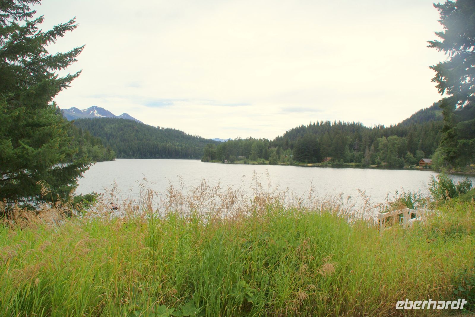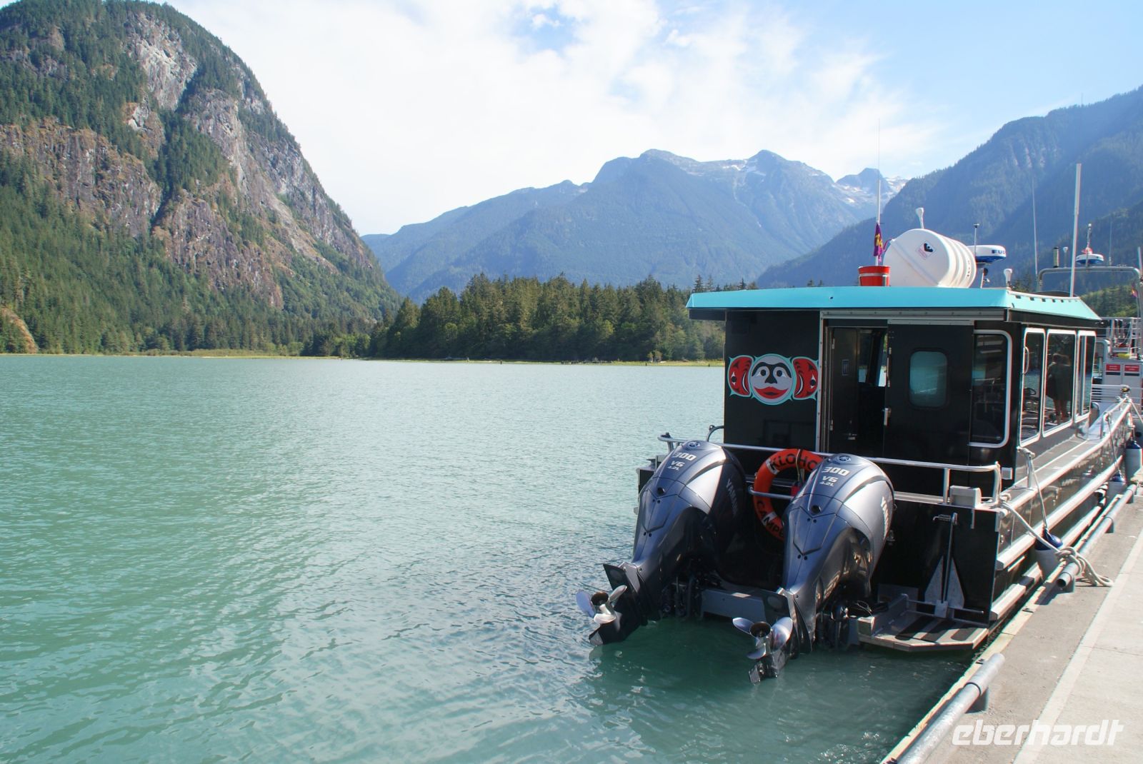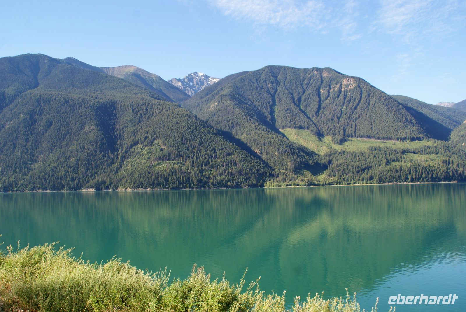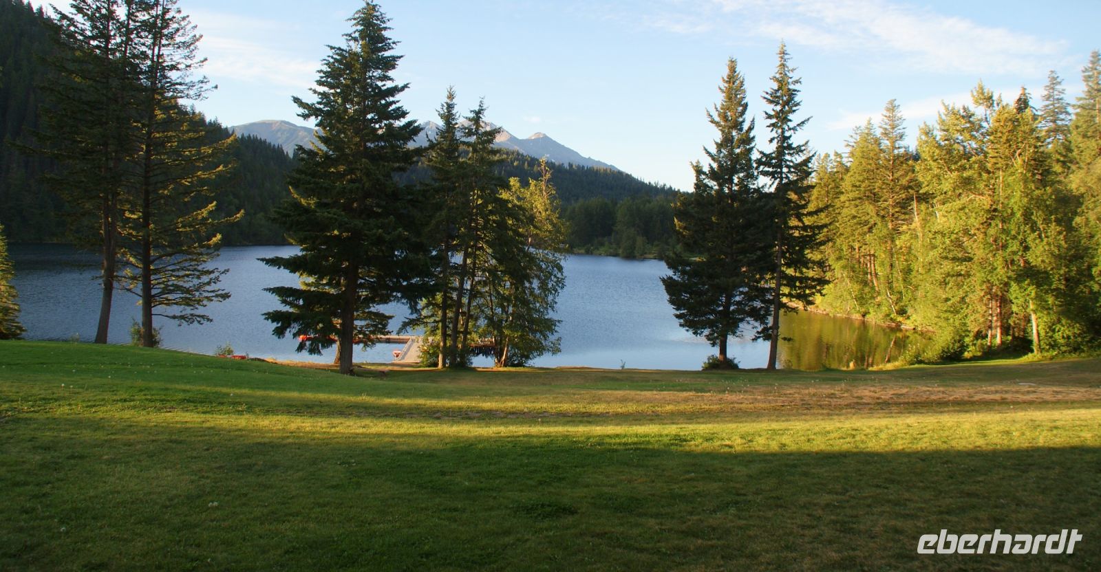 Ein letztes Mal frühstücken wir exklusive in der Tyax Lodge, in der wir nun wirklich die einzigen Gäste sind. So richtig weg möchte hier eigentlich niemand. Die Ruhe, das Panorama, die netten Mitarbeiter, die Erlebnisse…all das haben wir sehr genossen und könnten noch Tage bleiben. Reisen wir also weiter. Die Sonne lacht und das herrliche Wetter bietet uns eine Bilderbuchkulisse. Wieder zurück am 50 Km langen Carpenter Lake erfreuen wir uns an der tollen Landschaft und dem Smaragdgrün des Sees, der stets an unserer Seite bleibt. Mittags halten wir in Lillooet und kaufen für unser heutiges Mittagspicknick ein. Dieses genießen wir am 22Km langen Seton Lake, an dessen Ufer Picknicktische-und Bänke für uns bereitstehen. Eine schönere Kulisse kann es ja nicht geben. Gut verköstigt ziehen wir weiter, um schon bald am genauso idyllischen Duffy Lake zu halten. Hier hat sich viel Treibholz gesammelt, was auch wieder für viele schöne Fotomotive sorgt. Kurz vor Ankunft in Whistler noch ein Stopp am One Mile Lake bei mittlerweile 35 Grad, lässt uns dann doch ein wenig unter der Hitze ächzen. Unser Tagesziel Whistler liegt unmittelbar bevor und als das Ziel erreicht ist, sind wir doch ein bisschen vom urbanen Leben erschlagen. So direkt aus der Natur ins pure Leben zu fallen, fühlt sich mittlerweile schon fremd an. Der bekannte Skiort zieht offensichtlich auch im Sommer viel junges Publikum an, welches mit Mountainbikes per Seilbahn den Berg hinauffährt um sich von dort in die Tiefe zu stürzen. Wir belassen es beim Schlendern durch die belebte Fußgängerzone und deren zahlreiche Geschäfte. Der Abend verläuft italienisch und so lassen wir es uns im Restaurant Quattro schmecken und schlendern danach noch durch die lebhafte Fußgängerzone.