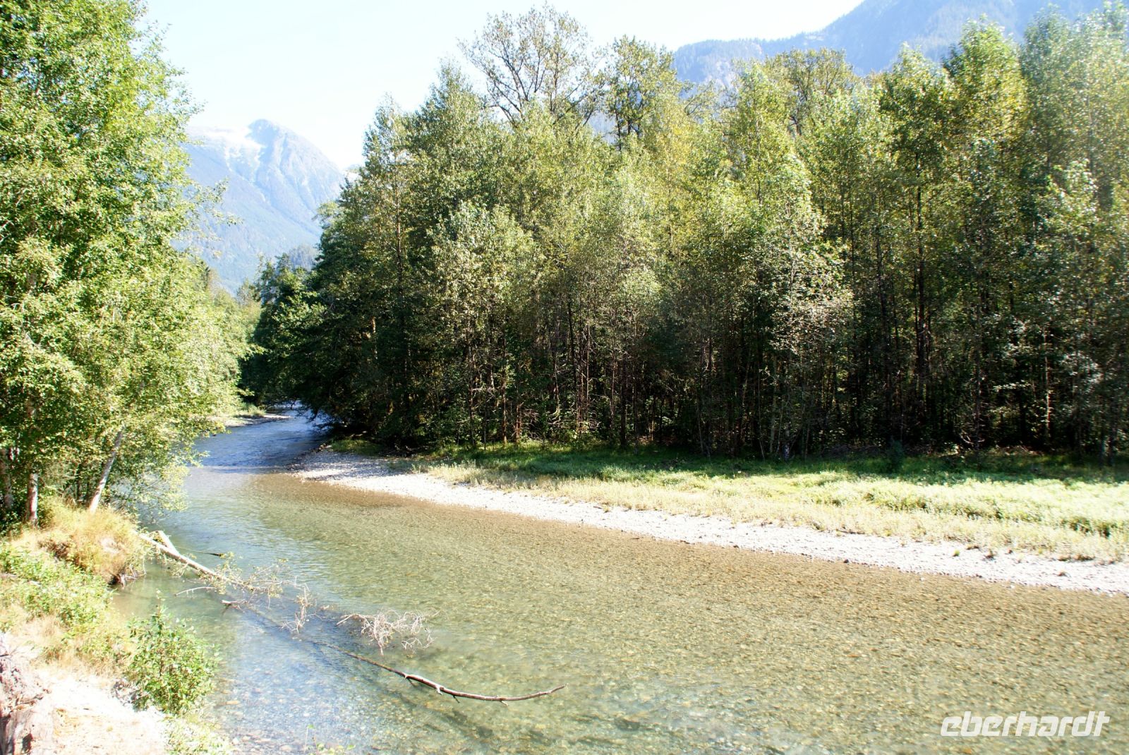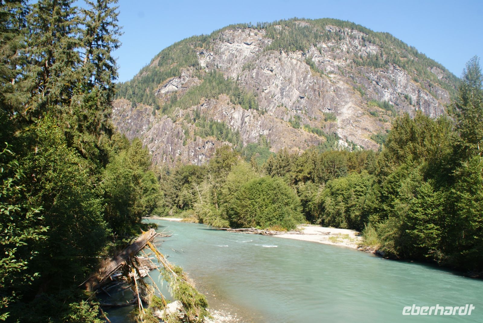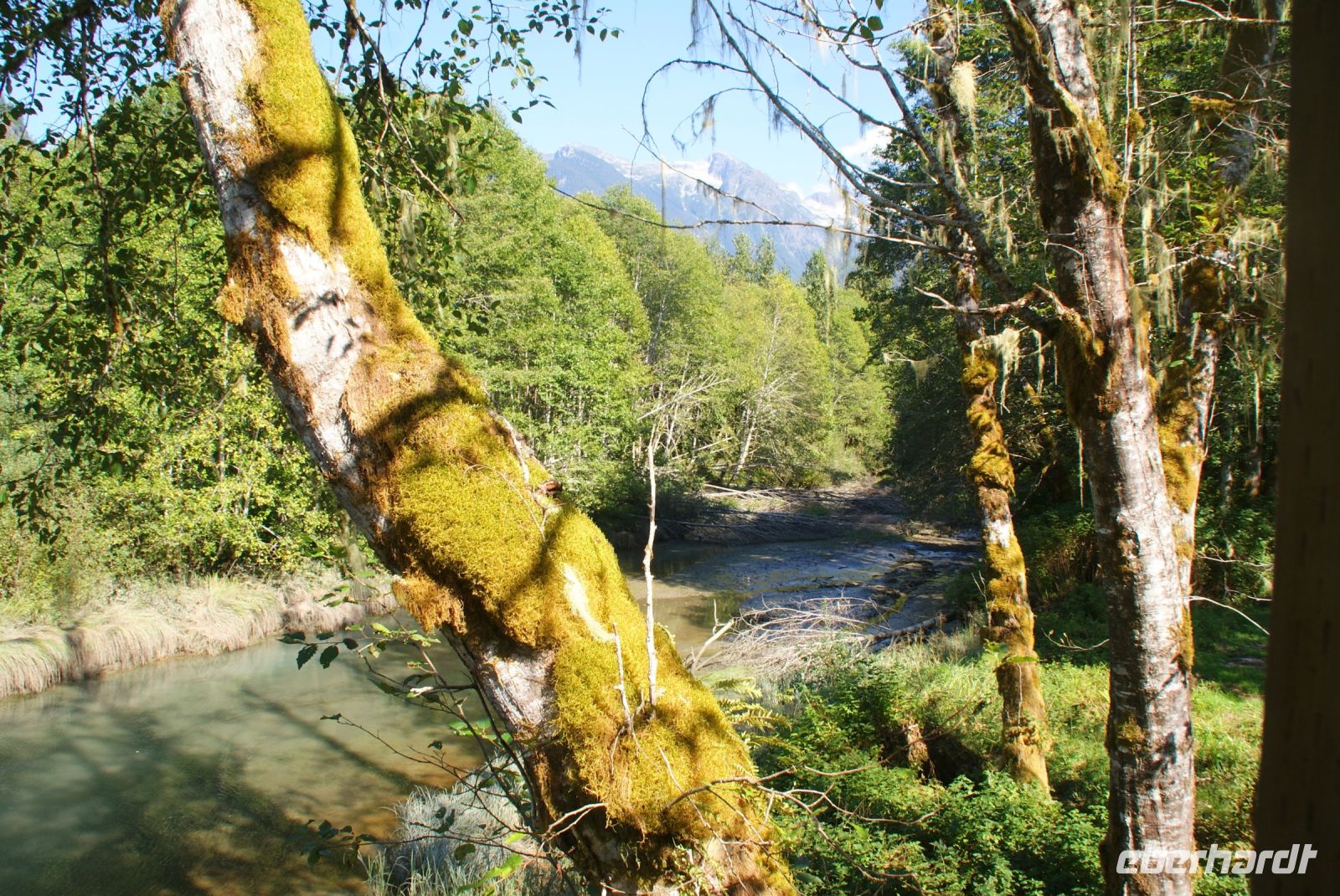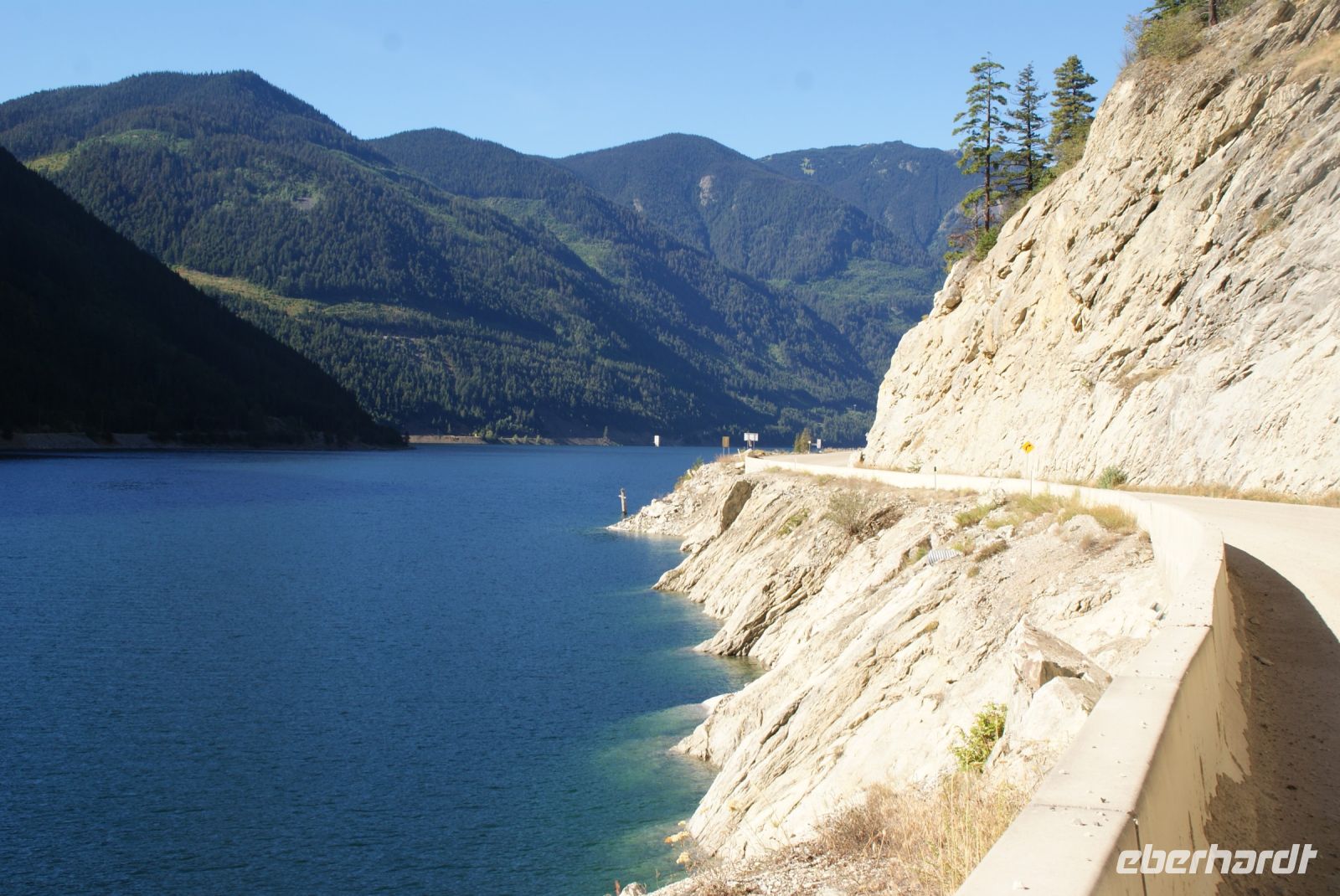 Ein letztes Mal frühstücken wir exklusive in der Tyax Lodge, in der wir nun wirklich die einzigen Gäste sind. So richtig weg möchte hier eigentlich niemand. Die Ruhe, das Panorama, die netten Mitarbeiter, die Erlebnisse…all das haben wir sehr genossen und könnten noch Tage bleiben. Reisen wir also weiter. Die Sonne lacht und das herrliche Wetter bietet uns eine Bilderbuchkulisse. Wieder zurück am 50 Km langen Carpenter Lake erfreuen wir uns an der tollen Landschaft und dem Smaragdgrün des Sees, der stets an unserer Seite bleibt. Mittags halten wir in Lillooet und kaufen für unser heutiges Mittagspicknick ein. Dieses genießen wir am 22Km langen Seton Lake, an dessen Ufer Picknicktische-und Bänke für uns bereitstehen. Eine schönere Kulisse kann es ja nicht geben. Gut verköstigt ziehen wir weiter, um schon bald am genauso idyllischen Duffy Lake zu halten. Hier hat sich viel Treibholz gesammelt, was auch wieder für viele schöne Fotomotive sorgt. Kurz vor Ankunft in Whistler noch ein Stopp am One Mile Lake bei mittlerweile 35 Grad, lässt uns dann doch ein wenig unter der Hitze ächzen. Unser Tagesziel Whistler liegt unmittelbar bevor und als das Ziel erreicht ist, sind wir doch ein bisschen vom urbanen Leben erschlagen. So direkt aus der Natur ins pure Leben zu fallen, fühlt sich mittlerweile schon fremd an. Der bekannte Skiort zieht offensichtlich auch im Sommer viel junges Publikum an, welches mit Mountainbikes per Seilbahn den Berg hinauffährt um sich von dort in die Tiefe zu stürzen. Wir belassen es beim Schlendern durch die belebte Fußgängerzone und deren zahlreiche Geschäfte. Der Abend verläuft italienisch und so lassen wir es uns im Restaurant Quattro schmecken und schlendern danach noch durch die lebhafte Fußgängerzone.