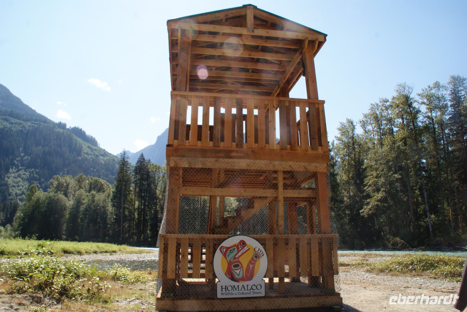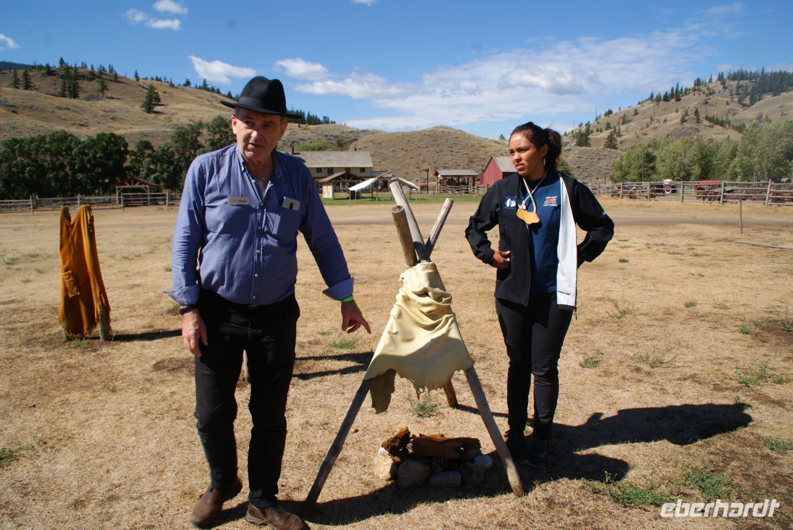 Bevor wir heute die Region verlassen, statten wir dem beschaulichen Örtchen Kamloops noch einen Besuch ab. Wir durchfahren den Ortskern und halten am Fluss, um uns ein wenig die Beine zu vertreten. Am späten Vormittag erreichen wir die Hat Creek Ranch. Diese wurde in den Jahren 1862-1865 gegründet und diente vor allem als Raststätte für Postkutschenpassagiere, Frachttransporteure und Goldgräber. Vieles hier ist noch originalgetreu erhalten, so schauen wir beispielsweise in das Haus des Hufschmieds genauso, wie in das sehr gut erhaltene Hat Creek House aus dem Jahr 1861 mit vielen verschiedenen Räumlichkeiten und deren original erhaltenem Interieur.. Anschließend sehen wir den indigenen Bereich des Stammes der Shuswap und werden von Shuswap Valerie über die verschiedenen Utensilien des täglichen Lebens unterrichtet, wie das Gerben von Fell, das Aufstellen von Schutzhütten, Bau einer Sauna, etc. Nach einem kurzen Mittagsstopp in diesem herrlichen Areal ziehen wir weiter Richtung Lillooet, wo wir noch etwas Proviant für den nächsten Tag besorgen. An einem schönen Aussichtspunkt stoßen wir mit einem Schlückchen kanadischen Whisky auf den bisherigen tollen Reiseverlauf an. Weiter geht unsere Fahrt am 50 km langen Carpenter Stausee entlang, bis wir am frühen Abend in der Wildnis am Tyaughton Lake ankommen, an dem die idyllisch gelegene Tyax Lodge für die nächsten beiden Nächte unsere Unterkunft sein wird. Schon so mancher Bärenhaufen am Wegesrand schickt seine Boten voraus und wir sind uns nun bewusst, so wirklich im Land der Schwarzbären und Grizzlys angekommen zu sein. Bei einem fantastischen Abendessen klingt der schöne Reisetag aus und wir freuen uns morgen auf die bevorstehende Freizeit und so manchen Aktivitäten.