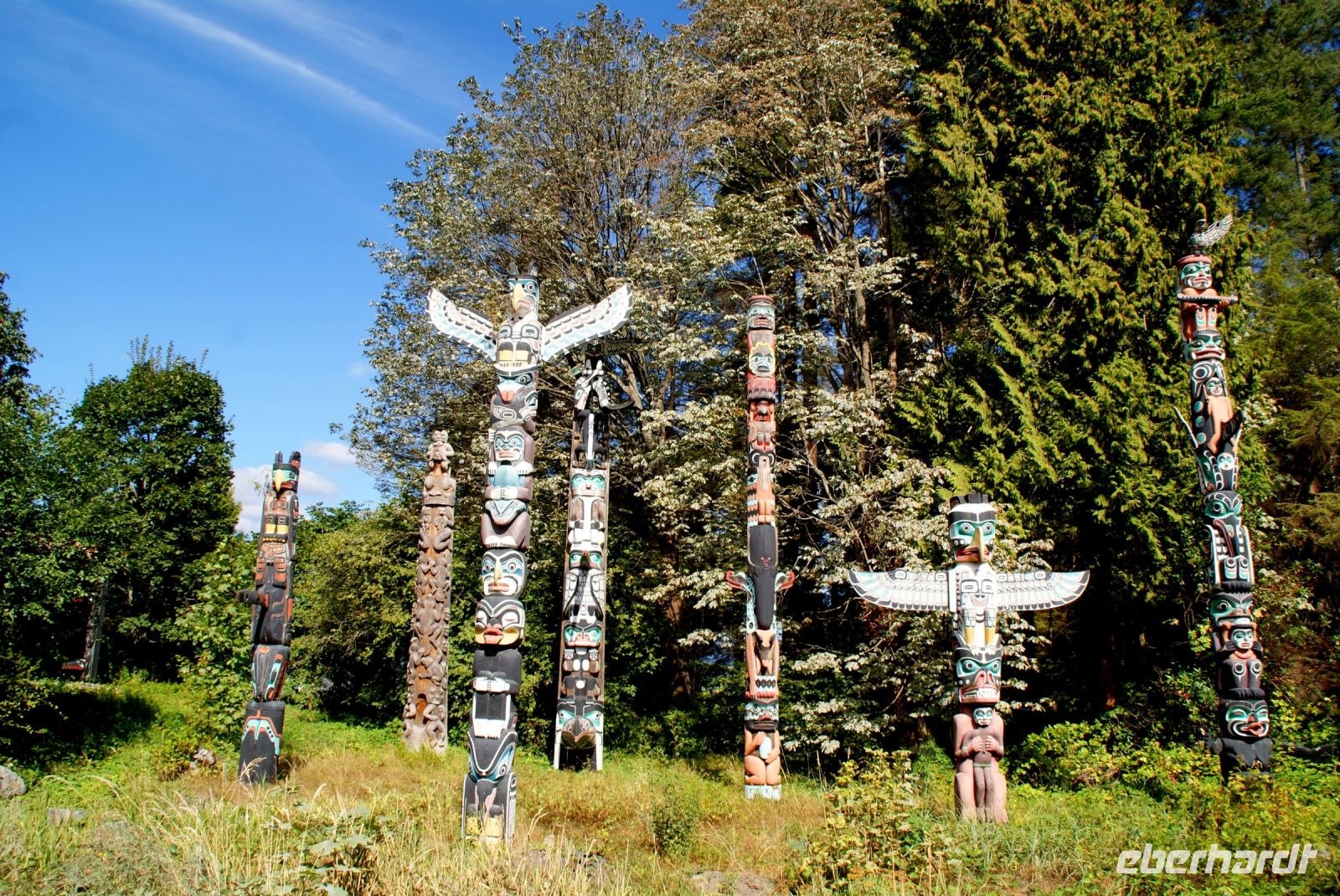 Wir verlassen Victoria, welches sich heute in ein morgendliches Nebeltuch gehüllt hat. Nicht ohne noch die schönen Villen am Stadtrand zu bestaunen und noch schöne Blicke auf die verträumte Bucht zu werfen. Da wir gut in der Zeit sind, nehmen wir eine Fähre eher und haben somit mehr Zeit für Vancouver zur Verfügung. Zunächst genießen wir jedoch die herrliche Überfahrt bei ruhiger See, toller Landschaft, in die urigen Häuser gebettet sind. Wir befinden uns nun nah der US-amerikanischen Grenze und es wäre nur ein Katzensprung, das Land zu wechseln. Auf dem Festland angekommen, halten wir am Elisabeth Park, wo wir unsere Mittagspause mit Blick auf die Skyline von Vancouver vornehmen. Der sehr idyllische Park lädt zum Verweilen ein und bei wieder bestem Wetter genießen wir unseren Aufenthalt. In Vancouver City angekommen, durchfahren wir zunächst die Innenstadt mit ihren besonderen Bauten und unzähligen Hochhäuser und ziehen anschließend zur grünen Lunge der Stadt, in den berühmten Stanley Park. Hier stehen unter anderem viele imposante Totempfähle und auch von hier gibt es einen tollen Blick auf die gegenüberliegende Skyline. Zurück in der Stadt spazieren wir durch die Altstadt, die sogenannte Gastown, benannt nach deren Gründer „Gassy Jack“. Am Canada Place sehen wir den Hafen mit riesigen Kreuzfahrtschiffen, Wassertaxen und zahlreichen Kleinflugzeugen, die ebenfalls als Taxen dienen. Abschließend fotografieren wir das olympische Feuer, welches einst zu den damaligen Olympischen Winterspielen errichtet wurde. An der English Bay vorbeifahrend, mit den bekannten lachenden Männern kehren wir in die Innenstadt zurück und so hat jeder noch Gelegenheit, die City zu Fuß zu erkunden und die letzten Souvenirs zu erstehen. Unser Abschiedsabendessen erfolgt hoch oben im „Top of Vancouver“, wo wir auf 167 m Höhe mit grandioser Aussicht auf Vancouver und Umgebung unseren letzten Abend gemeinsam verbringen. Hier nutzen wir die Gelegenheit, um nochmals auf die wundervolle Reise anzustoßen und uns bei unserem Driverguide Renzo zu bedanken, der uns 2800 Km sicher und gut behütet durch Kanada geführt und gefahren hat. Es war eine unvergessliche Zeit mit vielen Highlights, sei es Natur, Tiere oder Menschen. Wir sind uns einig-Kanada ist immer eine Reise wert.