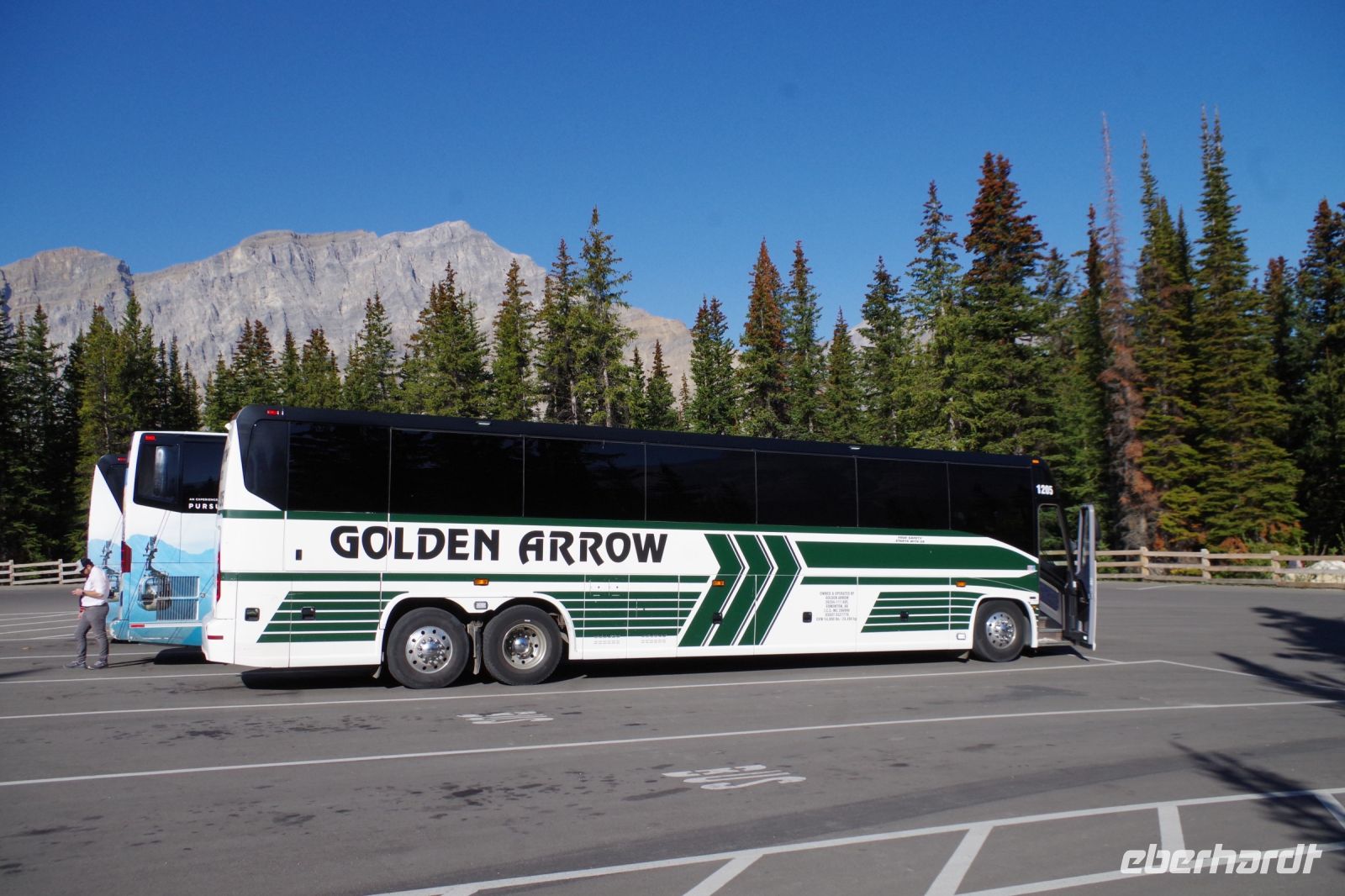 Nach einem erstaunlich vielfältigen Frühstück, mit (fast) allem, was das deutsche Frühstücksherz begehrt, geht es für uns heute in Richtung Rocky Mountains. Wir fahren zunächst am Olympiapark vorbei, der ebenfalls für die Olympischen Winterspiele im Jahr 1988 erbaut wurde und als Hauptstandort diente. Leider gewann Kanada als Austrageland keine einzige Goldmedaille, die Deutschen dafür umso mehr.