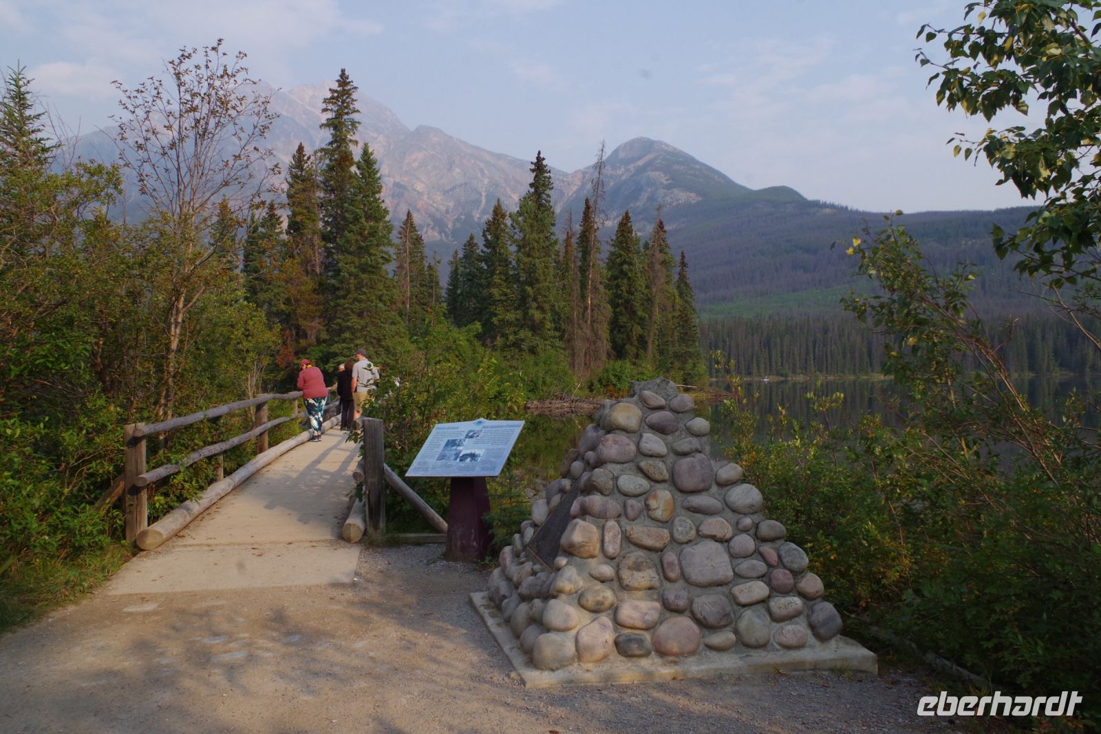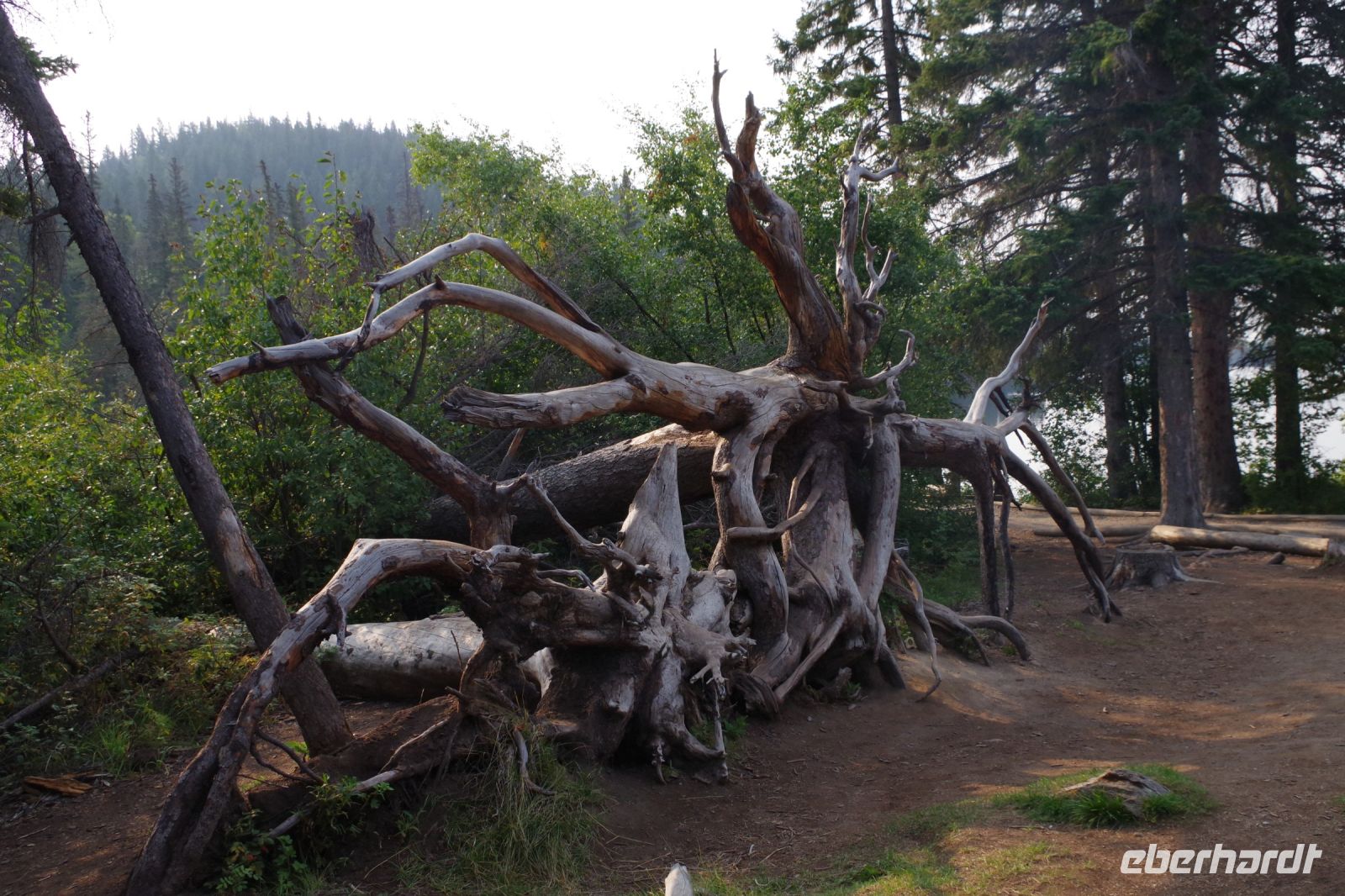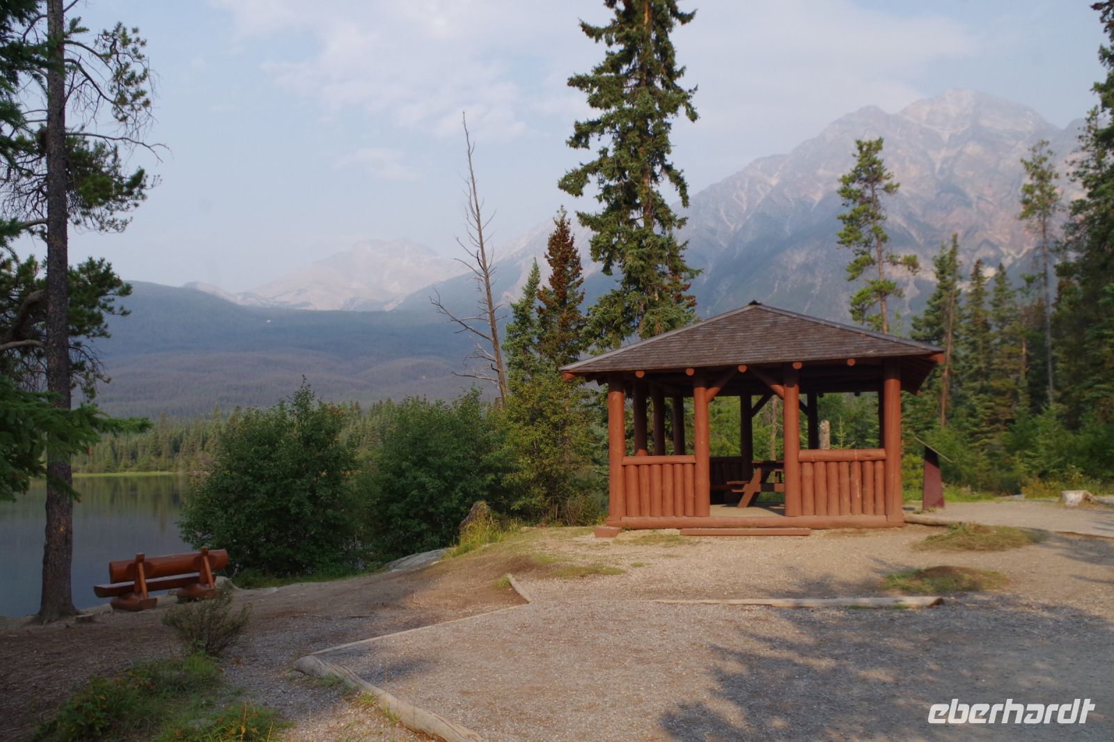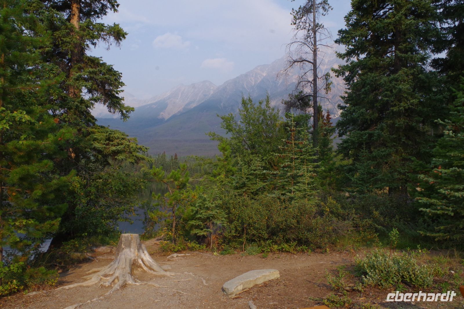 So langsam pendelt sich der Jetlag bei allen ein - es können ruhigere Nächte und vor allem schlafreichere Nächte verbracht werden. Wir sitzen beim gemeinsamen Frühstück im Hotelrestaurant und plötzlich springen manche Gäste auf und starren aus dem Fenster. Ein großer Wapiti Hirsch läuft doch tatsächlich für einen Morgenspaziergang, nur einige Meter entfernt, an unserem Fenster vorbei. Juhu, alle freuen sich, nun können wir wenigstens ein Tier auf der Liste abhaken. Wir setzen unsere Reise fort und checken (etwas wehleidig) aus dem fantastischen Beckers Chalet aus. Heute steht ein recht weiter Fahrtweg bevor, der uns am Ende des Tages bis nach Clearwater in British Columbia führen soll. Doch nicht so schnell. Unterwegs, am Randgebiet von Jasper, besuchen wir noch den Pyramid Lake sowie den Patricia Lake, welche beide eine großartige Spiegelung der umliegenden Berge und Nadelbäume im Wasser haben. Unterwegs im Jasper Nationalpark, treffen wir sogar nochmal auf einen oder vielleicht auch den gleichen Wapiti Hirsch, der ganz gemächlich über die Straße läuft und sich dabei von keinem Fahrzeug stören lässt.