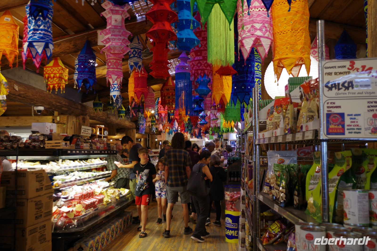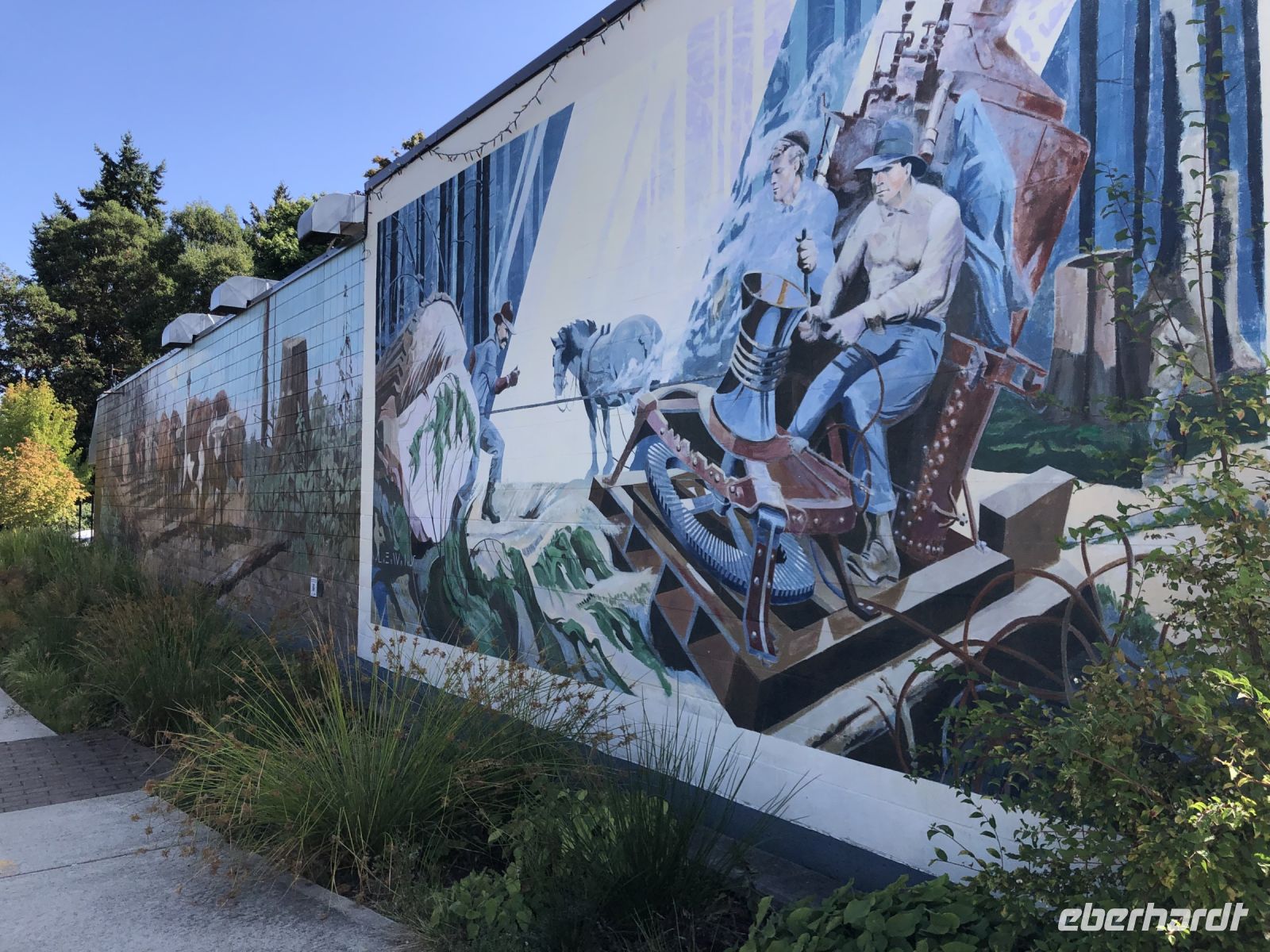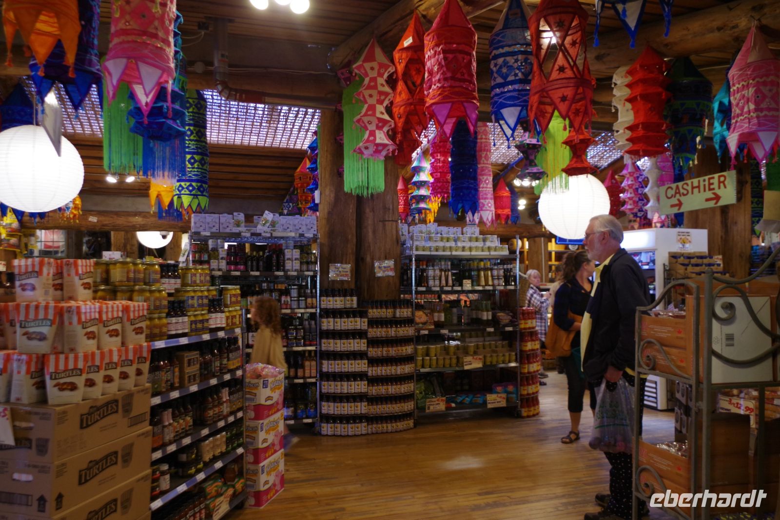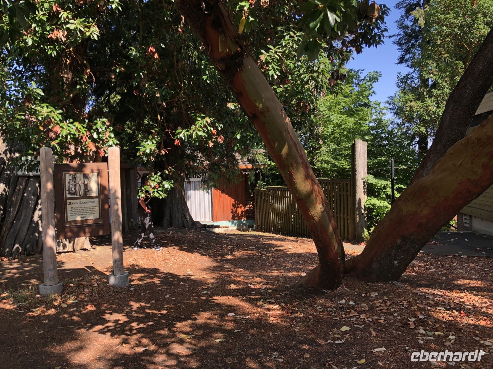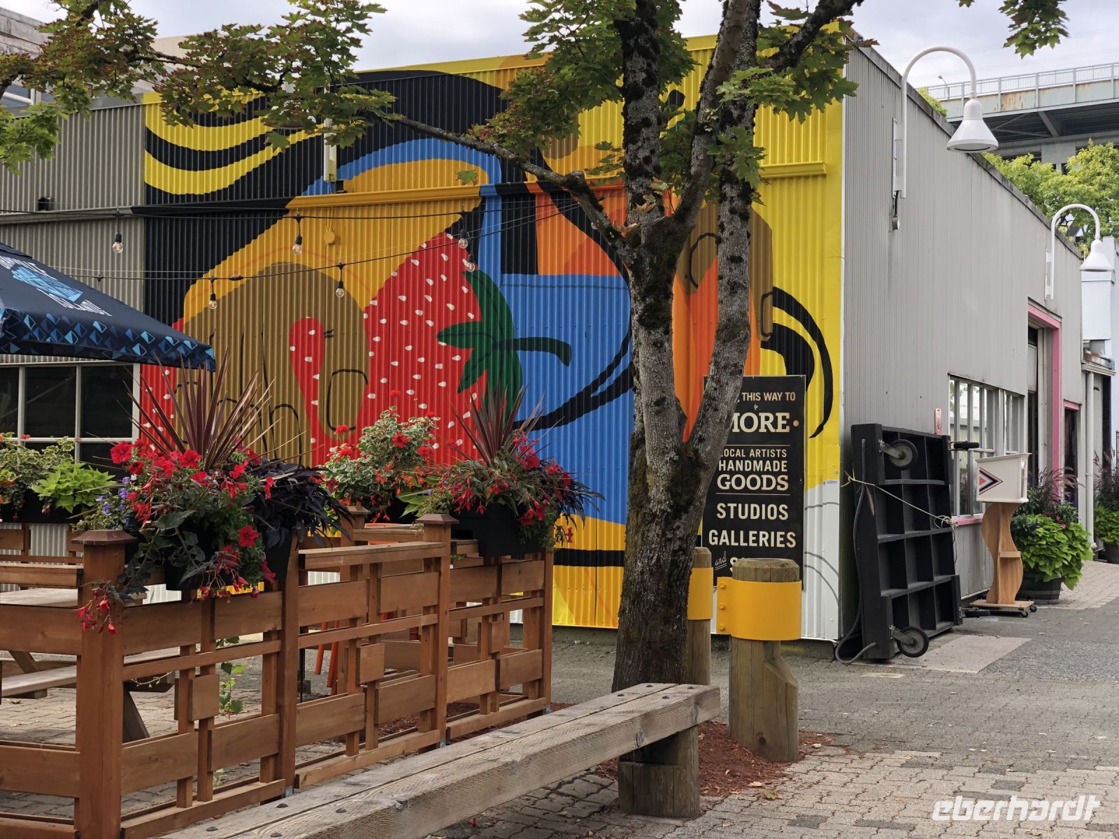 Erneut startet der Tag mit einem reichlichen Teller Bacon, Eier und Toast. Wir verlassen den erholsamen Ort Parksville. Ursprünglich war der Besuch des McMillan Provincial Parks geplant, dieser ist leider aufgrund der Waldbrände noch für die gesamte Saison für Besucher geschlossen. Am Vortag organisieren Nadja und ich bereits eine Alternative, damit der Besuch eines Urwaldes mitsamt seinen Jahrhunderte Jahre alten Bäumen, worauf sich schon viele gefreut haben, nicht gänzlich wegfällt. Also steuern wir den nahegelegenen Heritage Forest an, wo wir einen entspannten Rundgang durch den Wald unternehmen und treffen hier auf gigantische Lebensbäume, Tannen, Douglasien und vieles mehr - ihr Baum- und Pflanzenexperten wisst es besser ;-). Nachdem wir uns kurzzeitig in dem Wald „verlaufen“ und wieder an einer bekannten Stelle ankommen, erreichen wir den Reisebus natürlich trotzdem und steuern das nächste Ziel, nämlich das Hippiedorf Koombs, an. Hier ist Zeit für einen Mittagssnack und etwas Shopping in der skurrilen Markthalle. Das Dach der Markthalle besteht aus einer großen Rasenfläche, auf der einige Ziegen leben und fleißig das Gras wegknabbern. Im Anschluss wartet eine kleine Überraschung auf die Gruppe – außerplanmäßig besuchen wir das idyllische Beaufort Weingut in Courtenay, für eine Kostprobe, bestehend aus 5 verschiedenen Sorten. Die Terrasse, mit Blick auf die Weinreben, wurde schön für uns hergerichtet und wir genießen das großartige Ambiente, während wir den ökologisch angebauten und dafür zertifizierten Wein verkosten. Ich würde sagen, die Überraschung ist gelungen! Nächster Halt: Quadra Island. Nur eine kurze Fährüberfahrt von Campbell River entfernt, erreichen wir Quathiaski Cove auf der größten Insel der Discovery Islands. Wir machen uns auf den Weg zur einheimisch geführten Tsa-Kwa Luten Lodge, die allen Gästen super gefällt. Das gesamte Haus ist aus massiven Baumstämmen gebaut und im urigen, indigenen Design eingerichtet. Heute waren wir mal etwas früher mit dem Abendessen fertig, so war für einige noch Zeit, sich für ein Getränk in der Lobby zu treffen, um den Abend ausklingen zu lassen.
