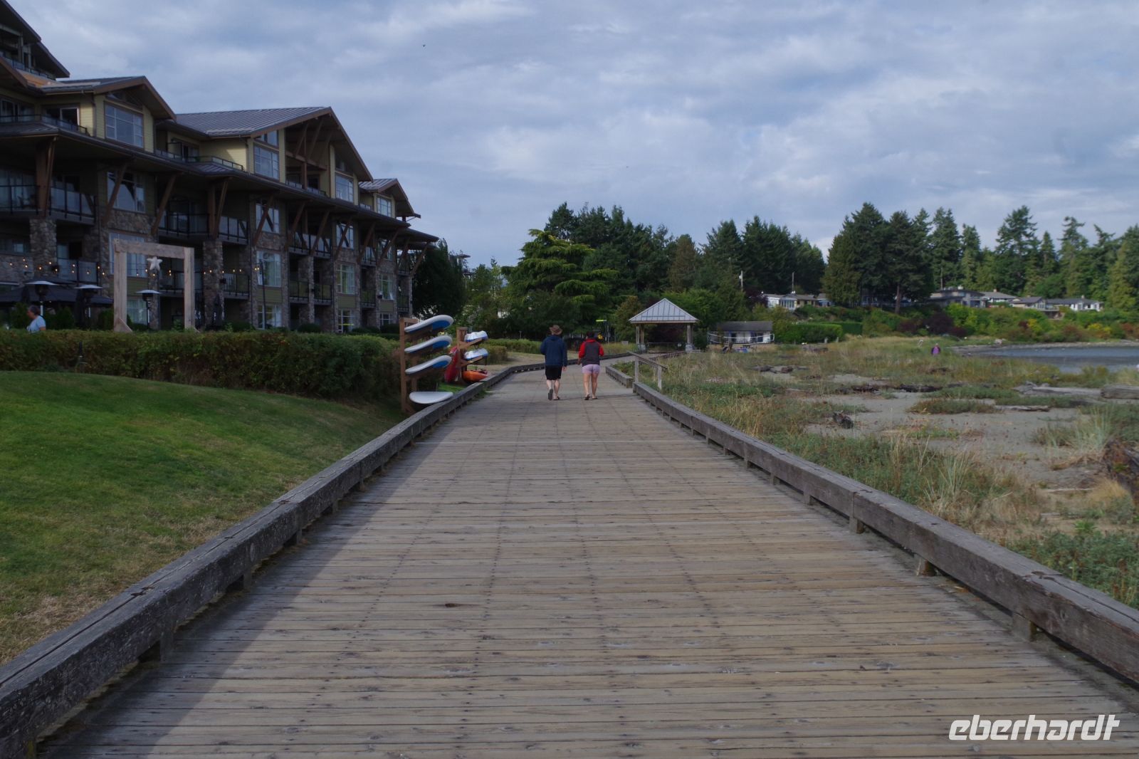 Am frühen Abend erreichen wir das maritime Städtchen Parksville und das traumhaft schöne Beach Club Resort, wo wir die kommenden zwei Nächte verbringen. Bis zum Abendessen ist noch etwas Zeit, um sich einfach mal etwas auszuruhen und die ganzen Erlebnisse auf sich wirken zu lassen - das klappt bei einem Glas Wein, auf dem Zimmereigenen Balkon mit Blick auf den Pazifik besonders gut. Das Abendessen genießen wir bei wunderschönem Sonnenuntergang, auf der Terrasse des Hotels – heute gibt es den köstlichen Kings Lachs als Hauptgang, der auch als Sockey Lachs bekannt ist und als Bester der 5 verschiedenen Lachssorten gilt.