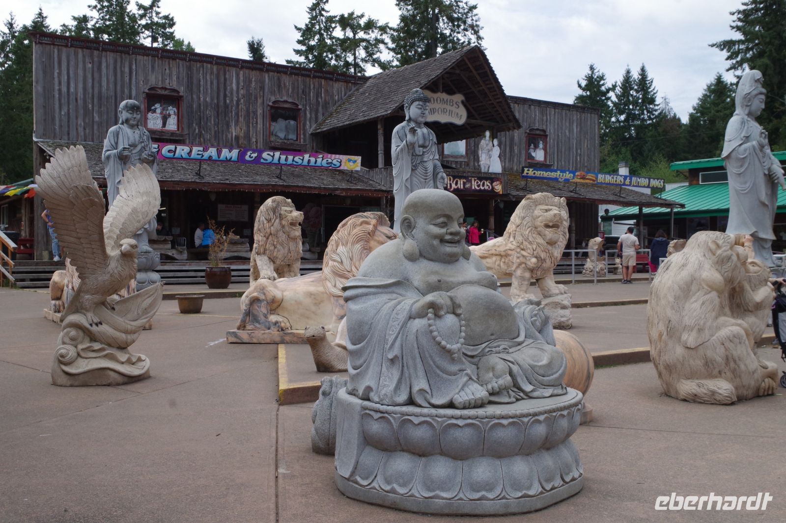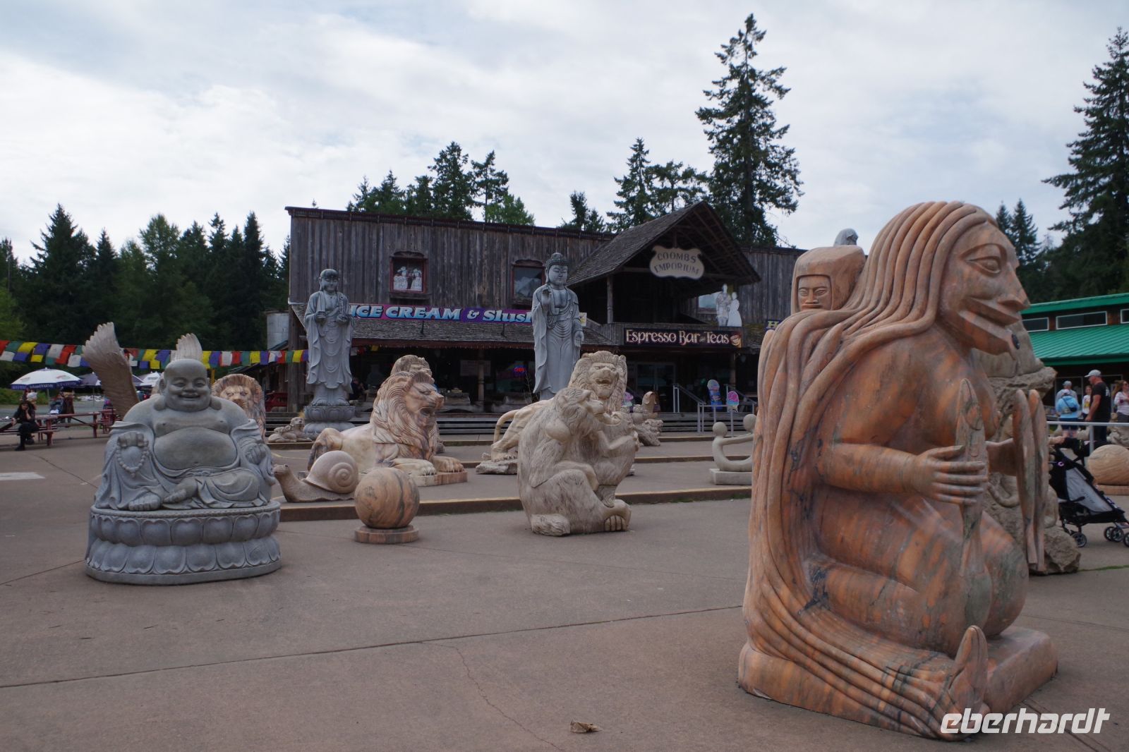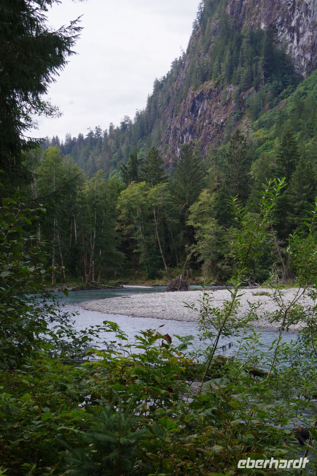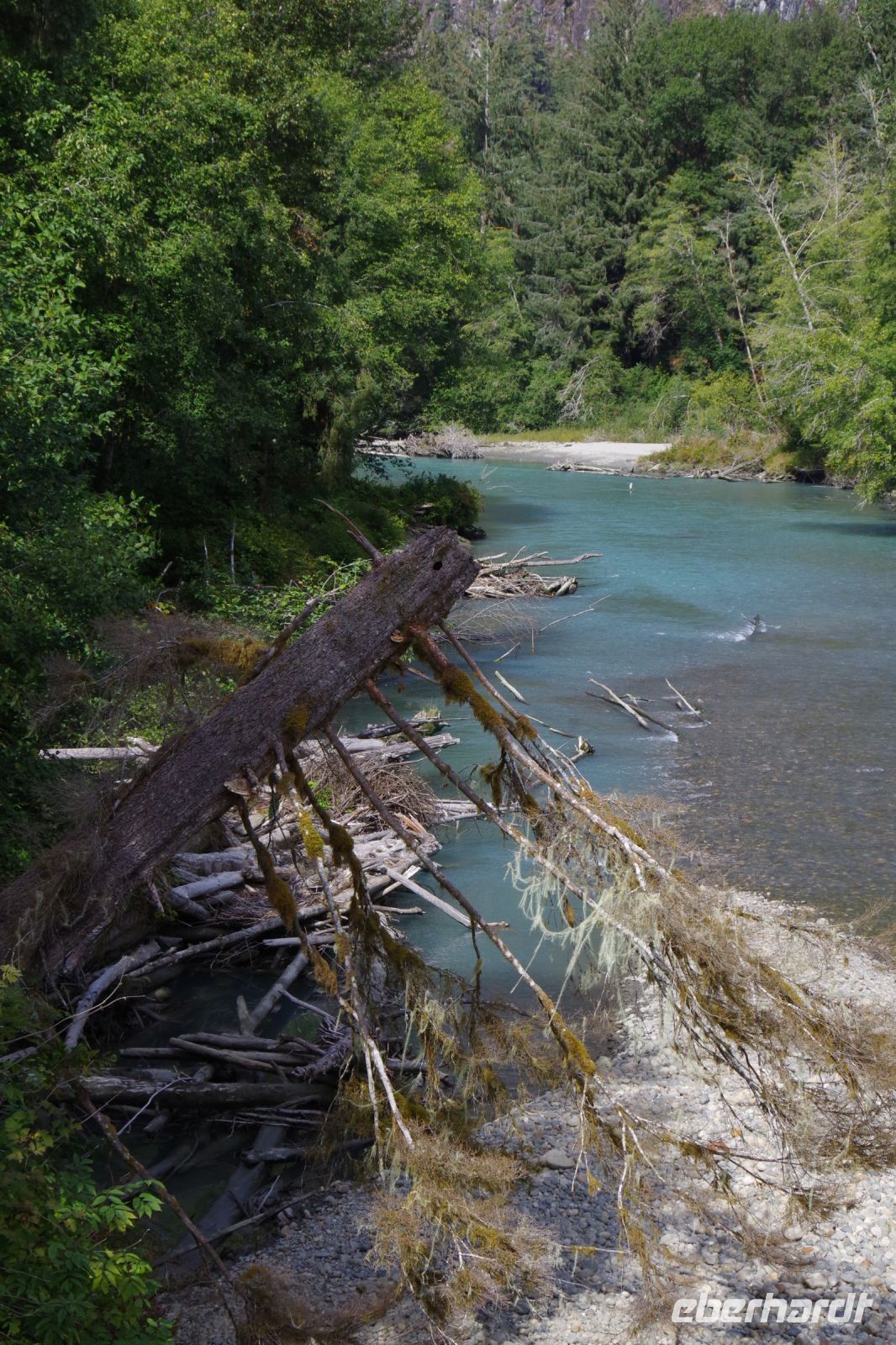 Heute steht der zweite, kurzfristig geänderte Programmteil bevor – anstelle des Besuchs der Tyax Lodge, die aufgrund der nahegelegenen Waldbrände komplett evakuiert wurde, ändern wir die Route und verbringen 2 zusätzliche Nächte auf der wunderschönen Vancouver Island. Den Vormittag verbringen wir noch in Whistler, so haben alle Zeit für einen Bummel durch die Einkaufsstraße oder für einen gemeinsamen Spaziergang mit Nadja und mir, zunächst zu den Olympischen Ringen und anschließend durch einen kleinen Urwald.