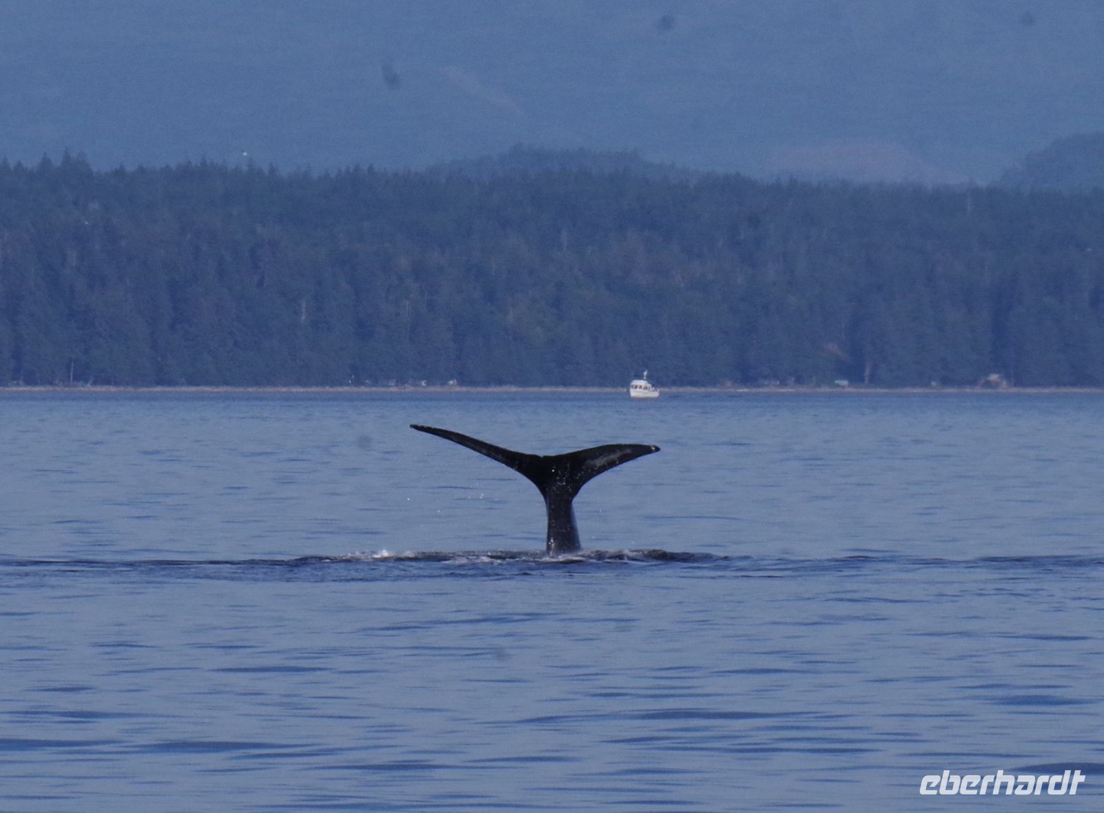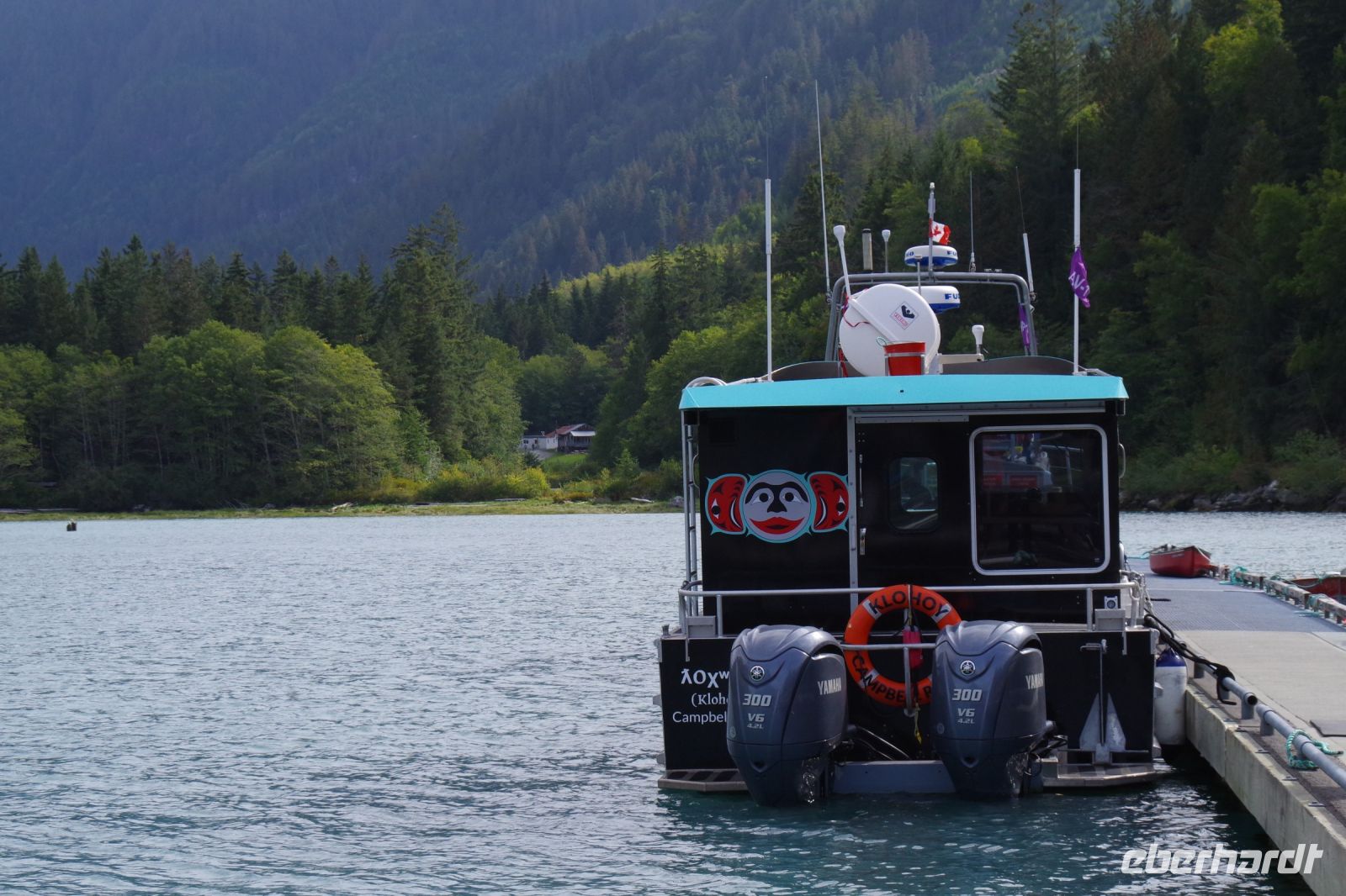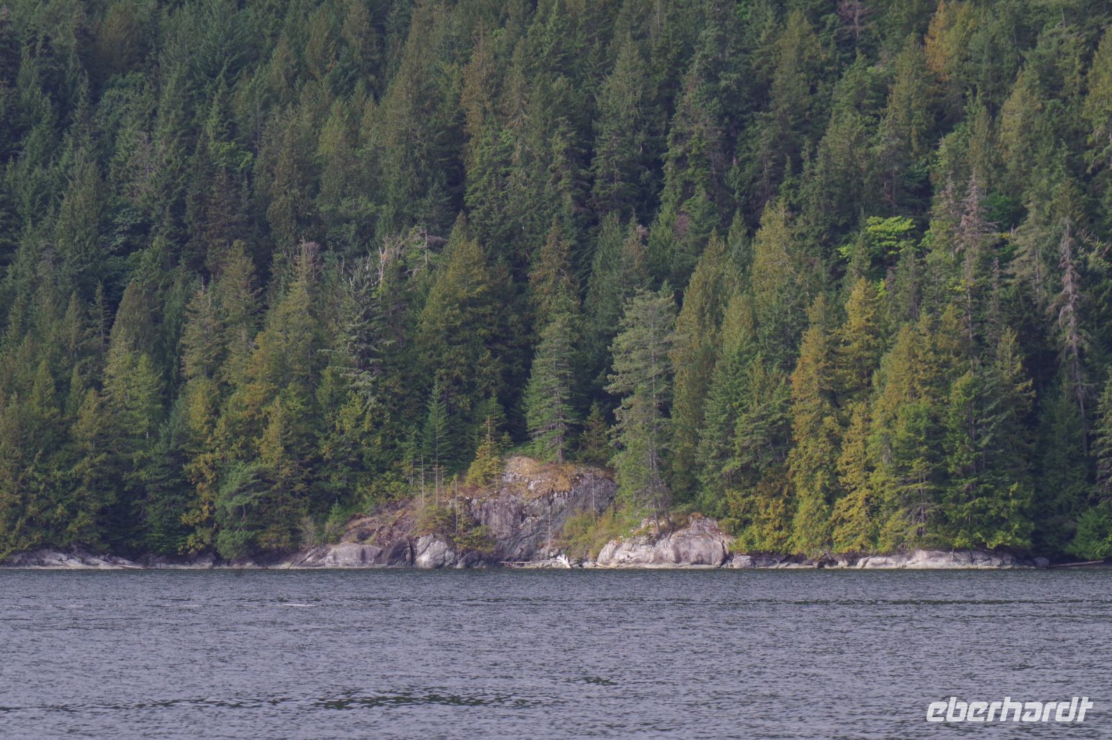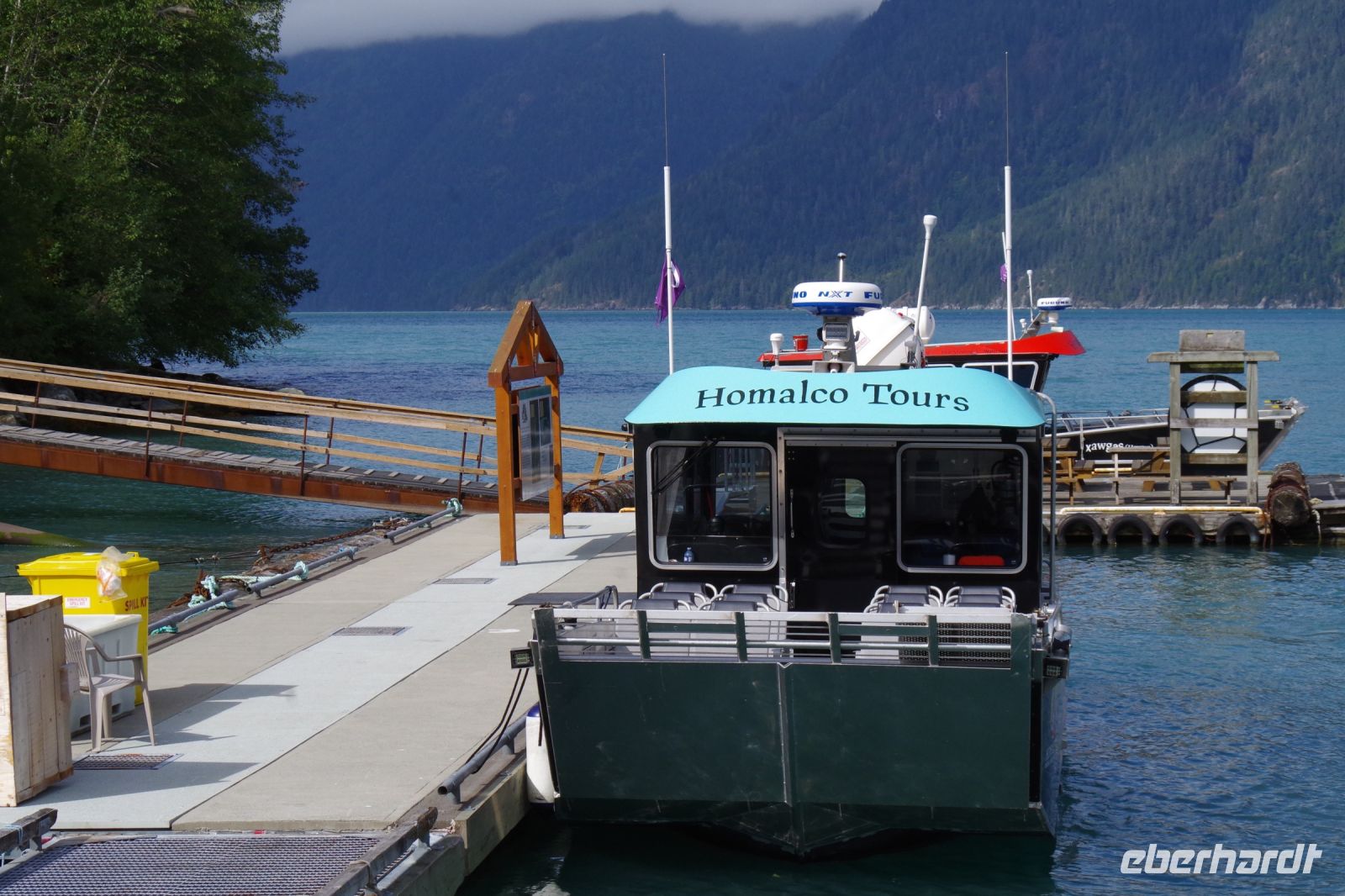 Heute ist es endlich so weit – der Tag, auf den sich der Großteil der Gruppe so gefreut hat. Es ist an dieser Stelle vielleicht nochmal wichtig zu erwähnen, dass wir noch immer noch eine recht überschaubare Anzahl kanadischer Tiere in freier Wildbahn gesehen haben, obwohl die Chancen eigentlich schon oft gut standen :-(. Bereits am frühen Morgen geht es für 10 Gäste, Nadja und mich zur Anlegestelle Quathiaski Cove. Hier warten wir auf das Boot, das uns für die nächsten Stunden beim Wale beobachten durch die Gewässer der Discovery Islands, bis ans Festland zur Orford Bay bringt. Tatsächlich sehen wir 2 Buckelwale, die geschmeidig durch das Wasser gleiten und immer wieder auftauchen, natürlich vorangekündigt durch einen explosionsartigen Luftausstoß der Wale. Wir fahren vorbei an zahlreichen unberührten und teilweise unbewohnten, dicht bewachsenen Inseln – Eine wahnsinnig schöne Natur, die dieses Land zu bieten hat. Nach knapp 3 Stunden auf dem Wasser, erreichen wir das Bärengebiet. Alle bekommen zunächst ein kleines Lunchpaket ausgehändigt, das sie sich in einem abgesicherten Bereich an einem schönen Picknickplatz, direkt am Wasser, gut schmecken lassen. Danach werden wir per Kleinbus abgeholt und gehen auf Expedition durch das Bärengebiet. Da wir bisher noch nicht einen einzigen Bären während der gesamten Reise gesehen haben, sind die Erwartungen hoch - Und wir werden nicht enttäuscht. Schon kurz bevor wir den ersten Aussichtsturm erreichen, erspähen wir schon einen weiblichen Grizzly Bären von Weitem. Nicht viel später, hören wir ein fürchterliches Jammern und bemerken ein kleines Grizzly Baby, welches verlassen auf der anderen Seite des Flusses hervorgerannt kommt. Wir schauen zu, wie der kleine Baby Bär versucht, den Fluss zu überqueren, um zu einer Mama zu kommen. Etwas hilflos und leicht abgetrieben von der Strömung, erreicht der Bär dann doch noch das andere Flussufer. Wir sind schon zu Anfang begeistert und werden Stopp für Stopp mit verschiedenen Bären von verschiedenen Blickperspektiven belohnt. Sogar die bisher ausgeblieben Lachse sehen wir in hoher Anzahl und einmal sogar. Doch nicht nur unsere Gäste erfreuen sich an den Lachsen, auch der ein oder andere Bär geht mal mehr und mal weniger geschickt auf Lachsjagd. Nachdem wir ca. 7 verschiedene Grizzlybären in Ihrer natürlichen Umgebung gesehen haben, geht vielen das Lächeln gar nicht mehr aus dem Gesicht und der Tag entpuppte sich zum vollen Erfolg und eines der Highlights unserer Reise. Doch der Tag ist noch nicht vorbei – die Rückfahrt und das gleichzeitige Whale Watching hat auch noch einiges zu bieten. Wir sehen zahlreiche Seelöwen und Robben sowie Delfine, die gemeinsam mit zwei Orcas auf und ab durch das Wasser gleiten – ein spektakulärer Anblick. Ein erlebnisreicher Tag neigt sich dem Ende und wir erreichen unsere Lodge am späteren Abend. Beim Abendessen erzählen die anderen 3 Gruppenmitglieder von Ihrem Tag, den sie mit Erkunden der wilden Schönheit, die ruhigen Buchten und die üppige Vegetation der Insel erkundeten.