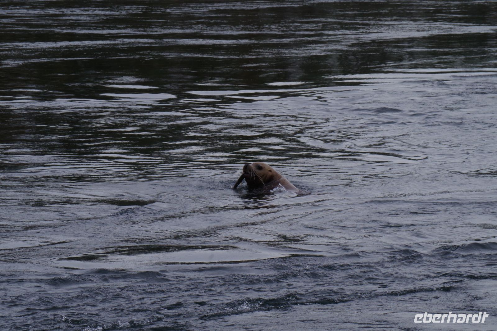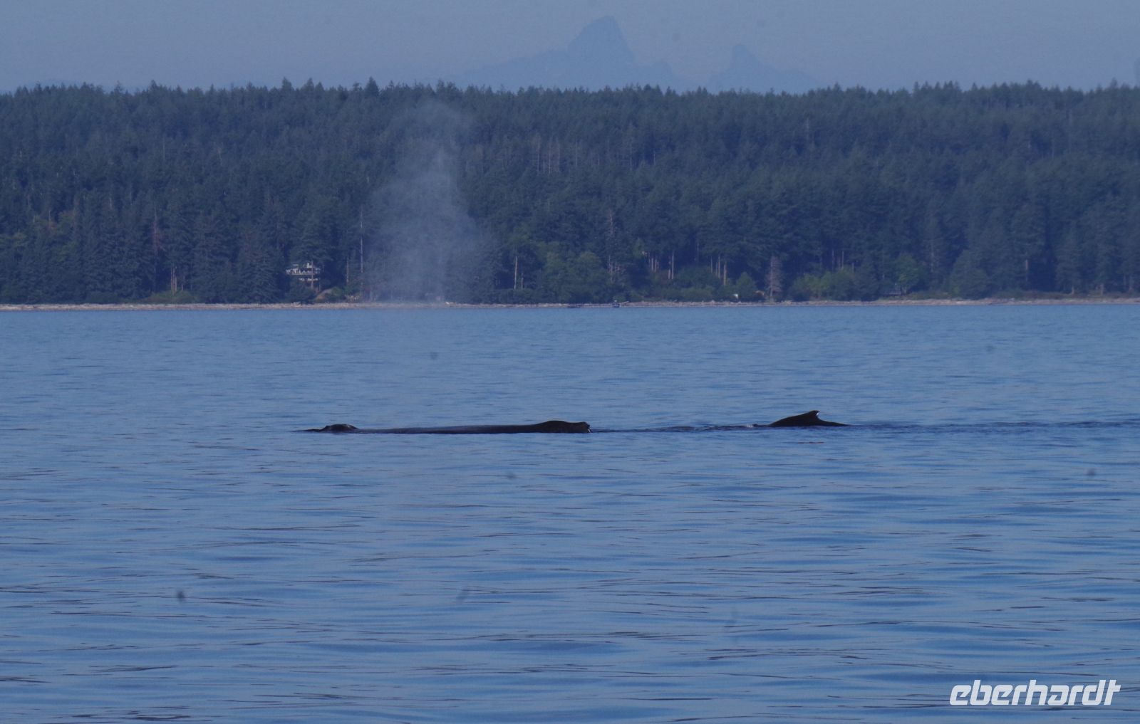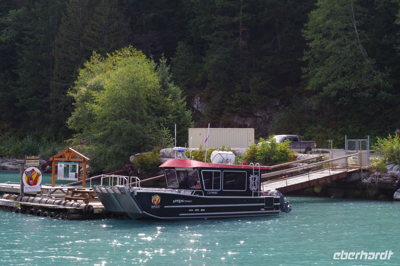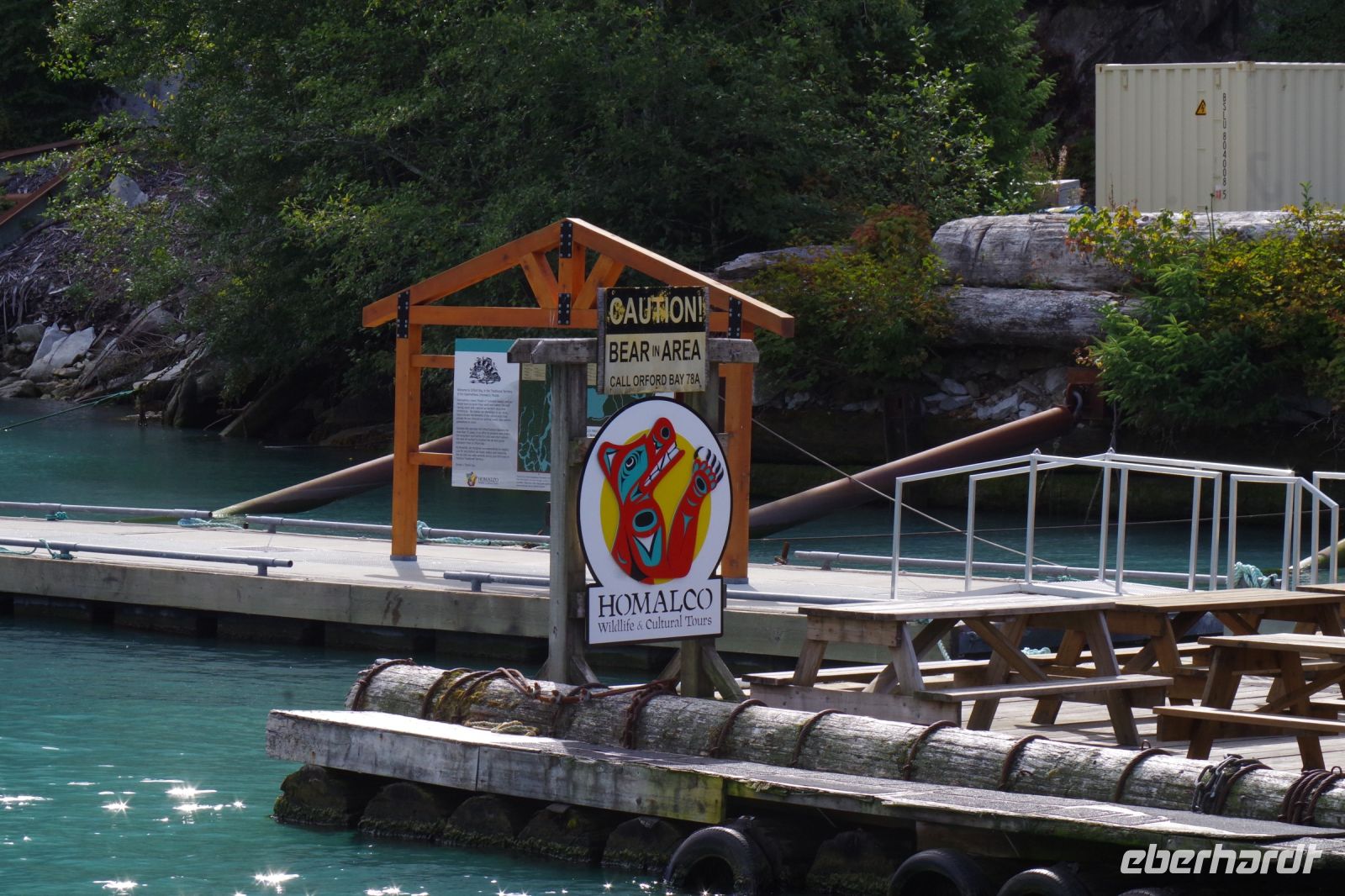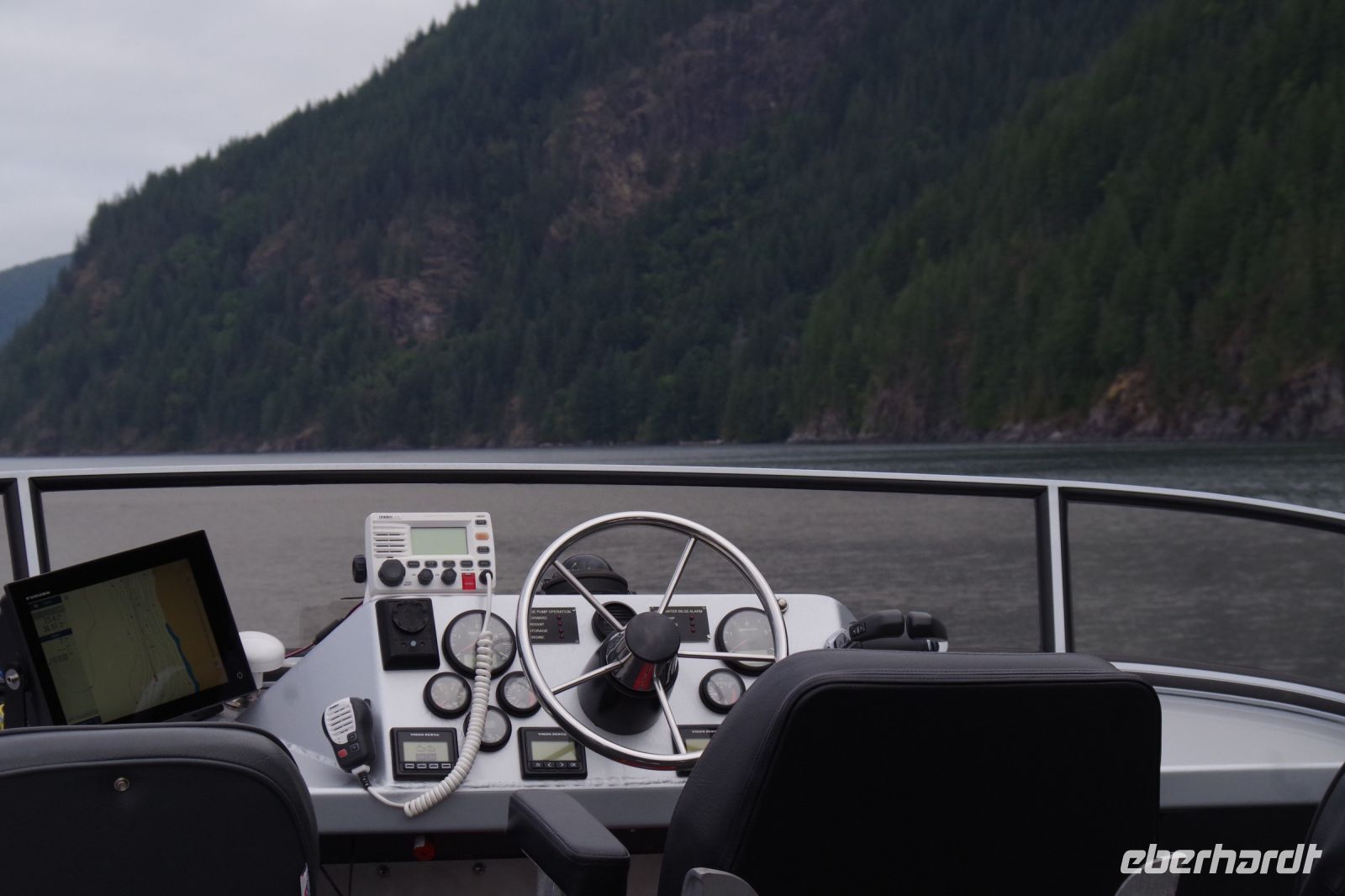 Heute ist es endlich so weit – der Tag, auf den sich der Großteil der Gruppe so gefreut hat. Es ist an dieser Stelle vielleicht nochmal wichtig zu erwähnen, dass wir noch immer noch eine recht überschaubare Anzahl kanadischer Tiere in freier Wildbahn gesehen haben, obwohl die Chancen eigentlich schon oft gut standen :-(. Bereits am frühen Morgen geht es für 10 Gäste, Nadja und mich zur Anlegestelle Quathiaski Cove. Hier warten wir auf das Boot, das uns für die nächsten Stunden beim Wale beobachten durch die Gewässer der Discovery Islands, bis ans Festland zur Orford Bay bringt. Tatsächlich sehen wir 2 Buckelwale, die geschmeidig durch das Wasser gleiten und immer wieder auftauchen, natürlich vorangekündigt durch einen explosionsartigen Luftausstoß der Wale. Wir fahren vorbei an zahlreichen unberührten und teilweise unbewohnten, dicht bewachsenen Inseln – Eine wahnsinnig schöne Natur, die dieses Land zu bieten hat. Nach knapp 3 Stunden auf dem Wasser, erreichen wir das Bärengebiet. Alle bekommen zunächst ein kleines Lunchpaket ausgehändigt, das sie sich in einem abgesicherten Bereich an einem schönen Picknickplatz, direkt am Wasser, gut schmecken lassen. Danach werden wir per Kleinbus abgeholt und gehen auf Expedition durch das Bärengebiet. Da wir bisher noch nicht einen einzigen Bären während der gesamten Reise gesehen haben, sind die Erwartungen hoch - Und wir werden nicht enttäuscht. Schon kurz bevor wir den ersten Aussichtsturm erreichen, erspähen wir schon einen weiblichen Grizzly Bären von Weitem. Nicht viel später, hören wir ein fürchterliches Jammern und bemerken ein kleines Grizzly Baby, welches verlassen auf der anderen Seite des Flusses hervorgerannt kommt. Wir schauen zu, wie der kleine Baby Bär versucht, den Fluss zu überqueren, um zu einer Mama zu kommen. Etwas hilflos und leicht abgetrieben von der Strömung, erreicht der Bär dann doch noch das andere Flussufer. Wir sind schon zu Anfang begeistert und werden Stopp für Stopp mit verschiedenen Bären von verschiedenen Blickperspektiven belohnt. Sogar die bisher ausgeblieben Lachse sehen wir in hoher Anzahl und einmal sogar. Doch nicht nur unsere Gäste erfreuen sich an den Lachsen, auch der ein oder andere Bär geht mal mehr und mal weniger geschickt auf Lachsjagd. Nachdem wir ca. 7 verschiedene Grizzlybären in Ihrer natürlichen Umgebung gesehen haben, geht vielen das Lächeln gar nicht mehr aus dem Gesicht und der Tag entpuppte sich zum vollen Erfolg und eines der Highlights unserer Reise. Doch der Tag ist noch nicht vorbei – die Rückfahrt und das gleichzeitige Whale Watching hat auch noch einiges zu bieten. Wir sehen zahlreiche Seelöwen und Robben sowie Delfine, die gemeinsam mit zwei Orcas auf und ab durch das Wasser gleiten – ein spektakulärer Anblick. Ein erlebnisreicher Tag neigt sich dem Ende und wir erreichen unsere Lodge am späteren Abend. Beim Abendessen erzählen die anderen 3 Gruppenmitglieder von Ihrem Tag, den sie mit Erkunden der wilden Schönheit, die ruhigen Buchten und die üppige Vegetation der Insel erkundeten.