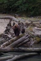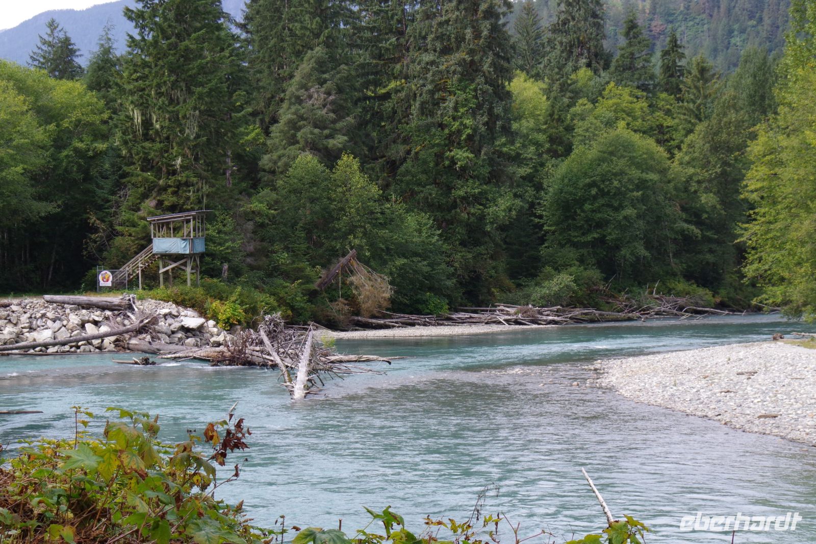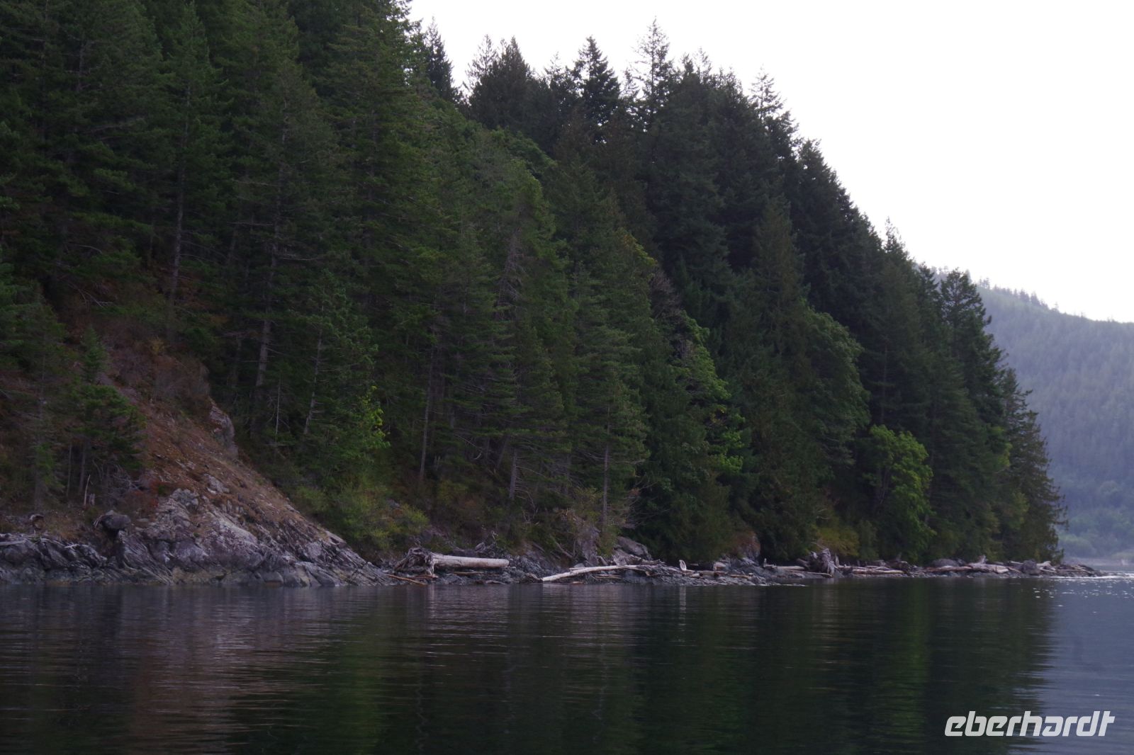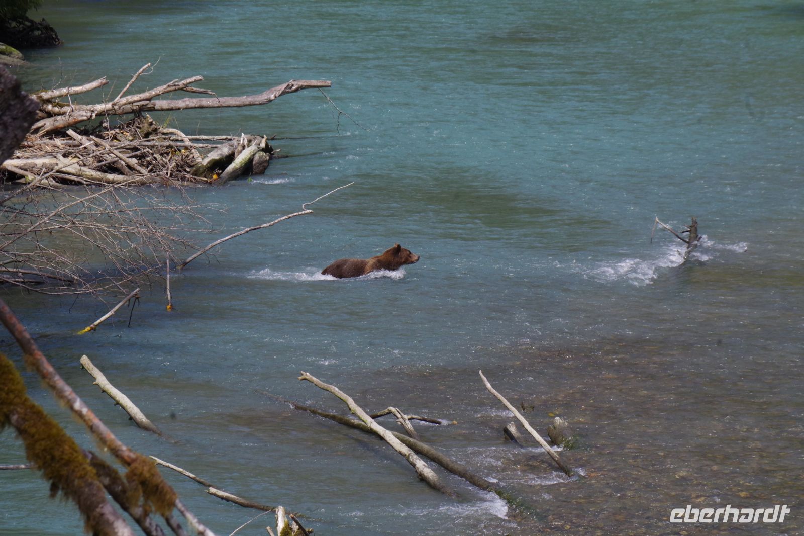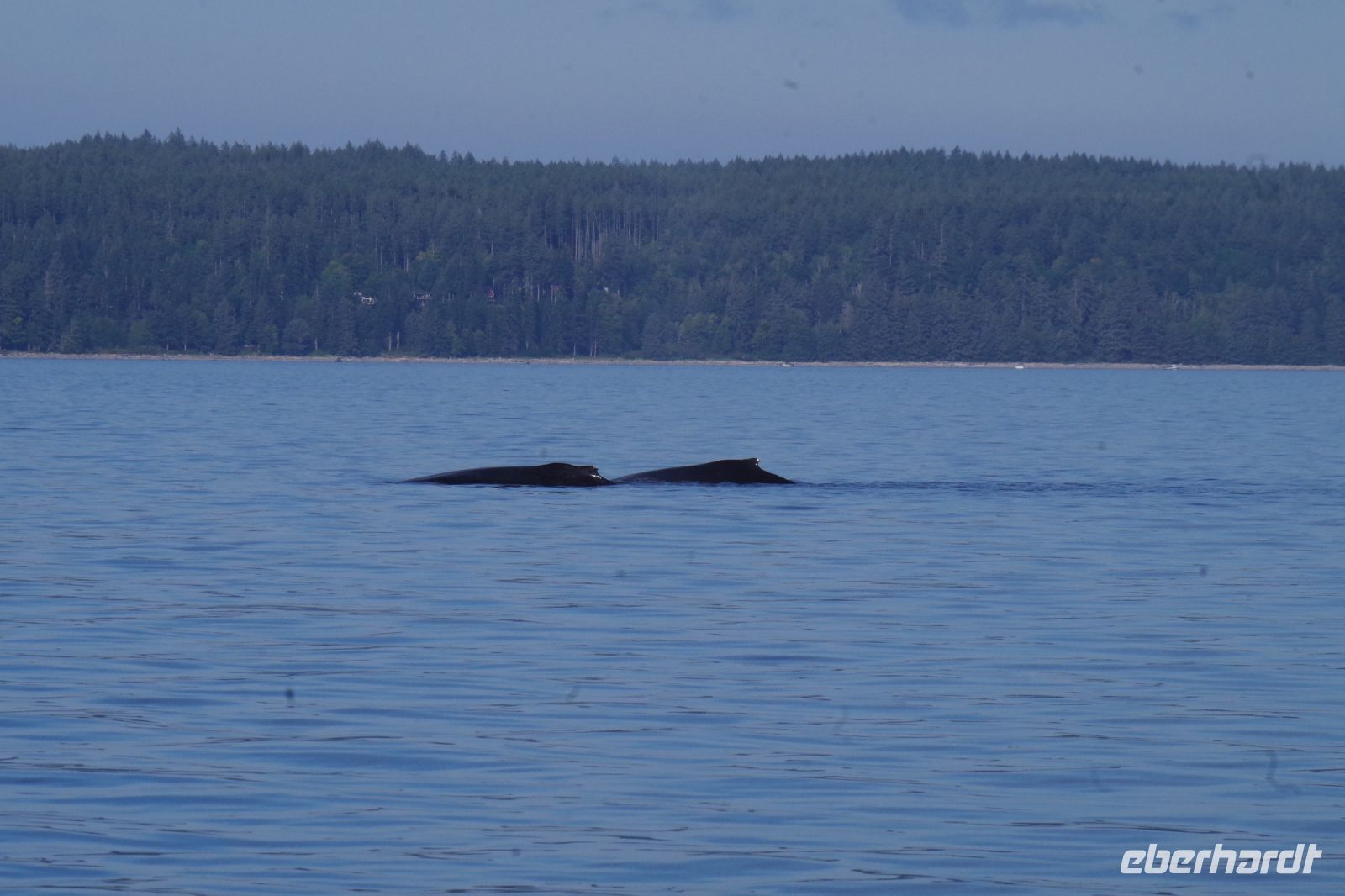 Heute ist es endlich so weit – der Tag, auf den sich der Großteil der Gruppe so gefreut hat. Es ist an dieser Stelle vielleicht nochmal wichtig zu erwähnen, dass wir noch immer noch eine recht überschaubare Anzahl kanadischer Tiere in freier Wildbahn gesehen haben, obwohl die Chancen eigentlich schon oft gut standen :-(. Bereits am frühen Morgen geht es für 10 Gäste, Nadja und mich zur Anlegestelle Quathiaski Cove. Hier warten wir auf das Boot, das uns für die nächsten Stunden beim Wale beobachten durch die Gewässer der Discovery Islands, bis ans Festland zur Orford Bay bringt. Tatsächlich sehen wir 2 Buckelwale, die geschmeidig durch das Wasser gleiten und immer wieder auftauchen, natürlich vorangekündigt durch einen explosionsartigen Luftausstoß der Wale. Wir fahren vorbei an zahlreichen unberührten und teilweise unbewohnten, dicht bewachsenen Inseln – Eine wahnsinnig schöne Natur, die dieses Land zu bieten hat. Nach knapp 3 Stunden auf dem Wasser, erreichen wir das Bärengebiet. Alle bekommen zunächst ein kleines Lunchpaket ausgehändigt, das sie sich in einem abgesicherten Bereich an einem schönen Picknickplatz, direkt am Wasser, gut schmecken lassen. Danach werden wir per Kleinbus abgeholt und gehen auf Expedition durch das Bärengebiet. Da wir bisher noch nicht einen einzigen Bären während der gesamten Reise gesehen haben, sind die Erwartungen hoch - Und wir werden nicht enttäuscht. Schon kurz bevor wir den ersten Aussichtsturm erreichen, erspähen wir schon einen weiblichen Grizzly Bären von Weitem. Nicht viel später, hören wir ein fürchterliches Jammern und bemerken ein kleines Grizzly Baby, welches verlassen auf der anderen Seite des Flusses hervorgerannt kommt. Wir schauen zu, wie der kleine Baby Bär versucht, den Fluss zu überqueren, um zu einer Mama zu kommen. Etwas hilflos und leicht abgetrieben von der Strömung, erreicht der Bär dann doch noch das andere Flussufer. Wir sind schon zu Anfang begeistert und werden Stopp für Stopp mit verschiedenen Bären von verschiedenen Blickperspektiven belohnt. Sogar die bisher ausgeblieben Lachse sehen wir in hoher Anzahl und einmal sogar. Doch nicht nur unsere Gäste erfreuen sich an den Lachsen, auch der ein oder andere Bär geht mal mehr und mal weniger geschickt auf Lachsjagd. Nachdem wir ca. 7 verschiedene Grizzlybären in Ihrer natürlichen Umgebung gesehen haben, geht vielen das Lächeln gar nicht mehr aus dem Gesicht und der Tag entpuppte sich zum vollen Erfolg und eines der Highlights unserer Reise. Doch der Tag ist noch nicht vorbei – die Rückfahrt und das gleichzeitige Whale Watching hat auch noch einiges zu bieten. Wir sehen zahlreiche Seelöwen und Robben sowie Delfine, die gemeinsam mit zwei Orcas auf und ab durch das Wasser gleiten – ein spektakulärer Anblick. Ein erlebnisreicher Tag neigt sich dem Ende und wir erreichen unsere Lodge am späteren Abend. Beim Abendessen erzählen die anderen 3 Gruppenmitglieder von Ihrem Tag, den sie mit Erkunden der wilden Schönheit, die ruhigen Buchten und die üppige Vegetation der Insel erkundeten.