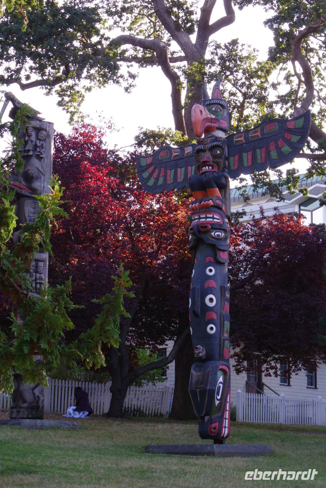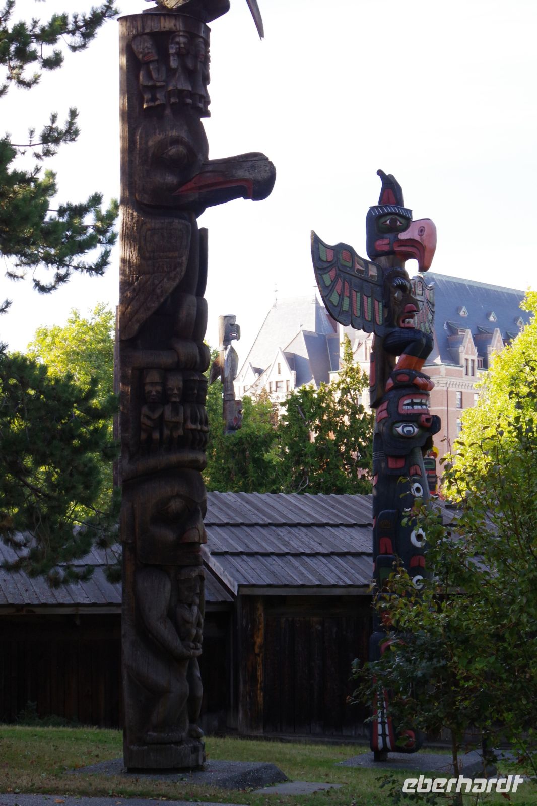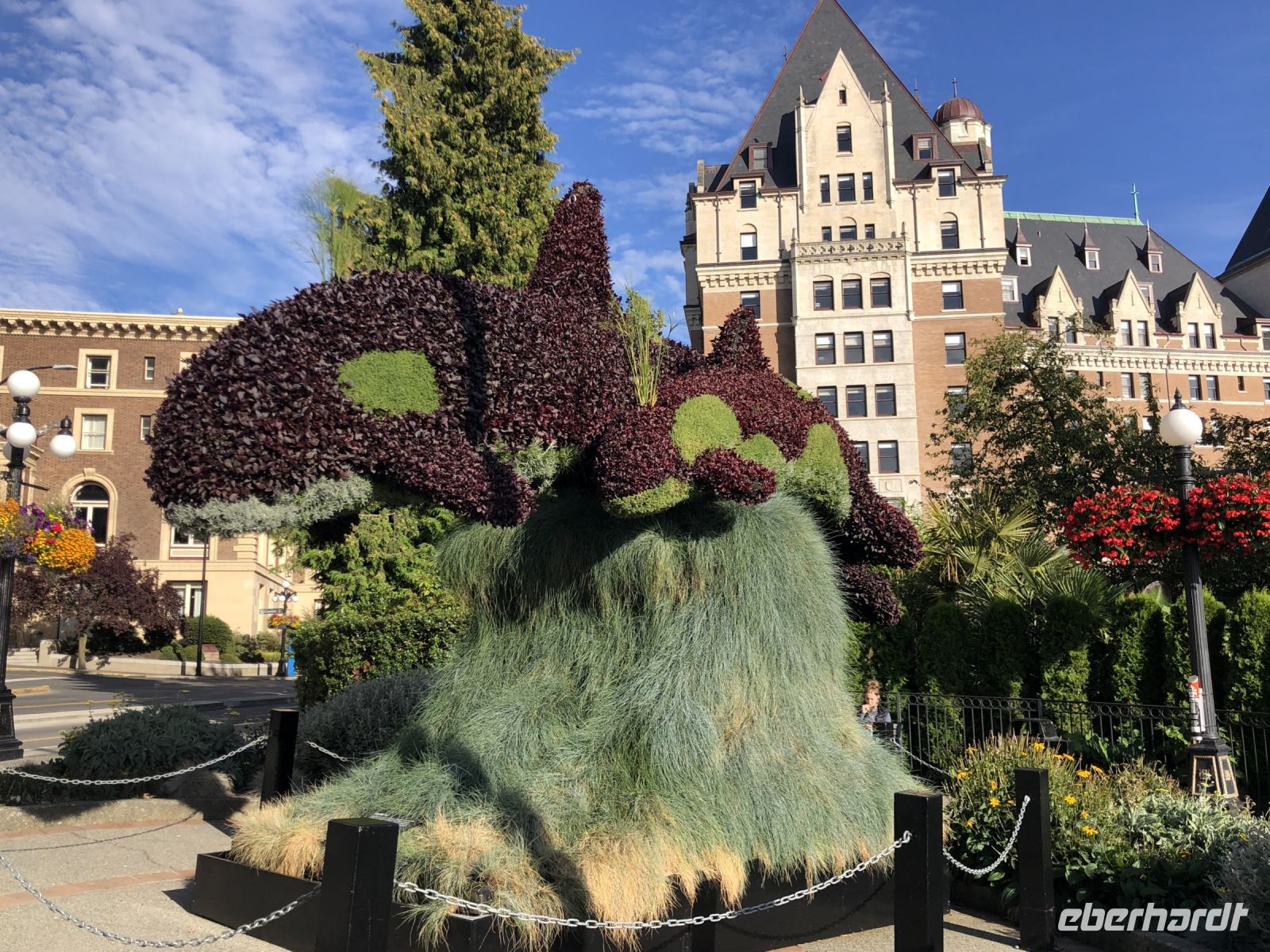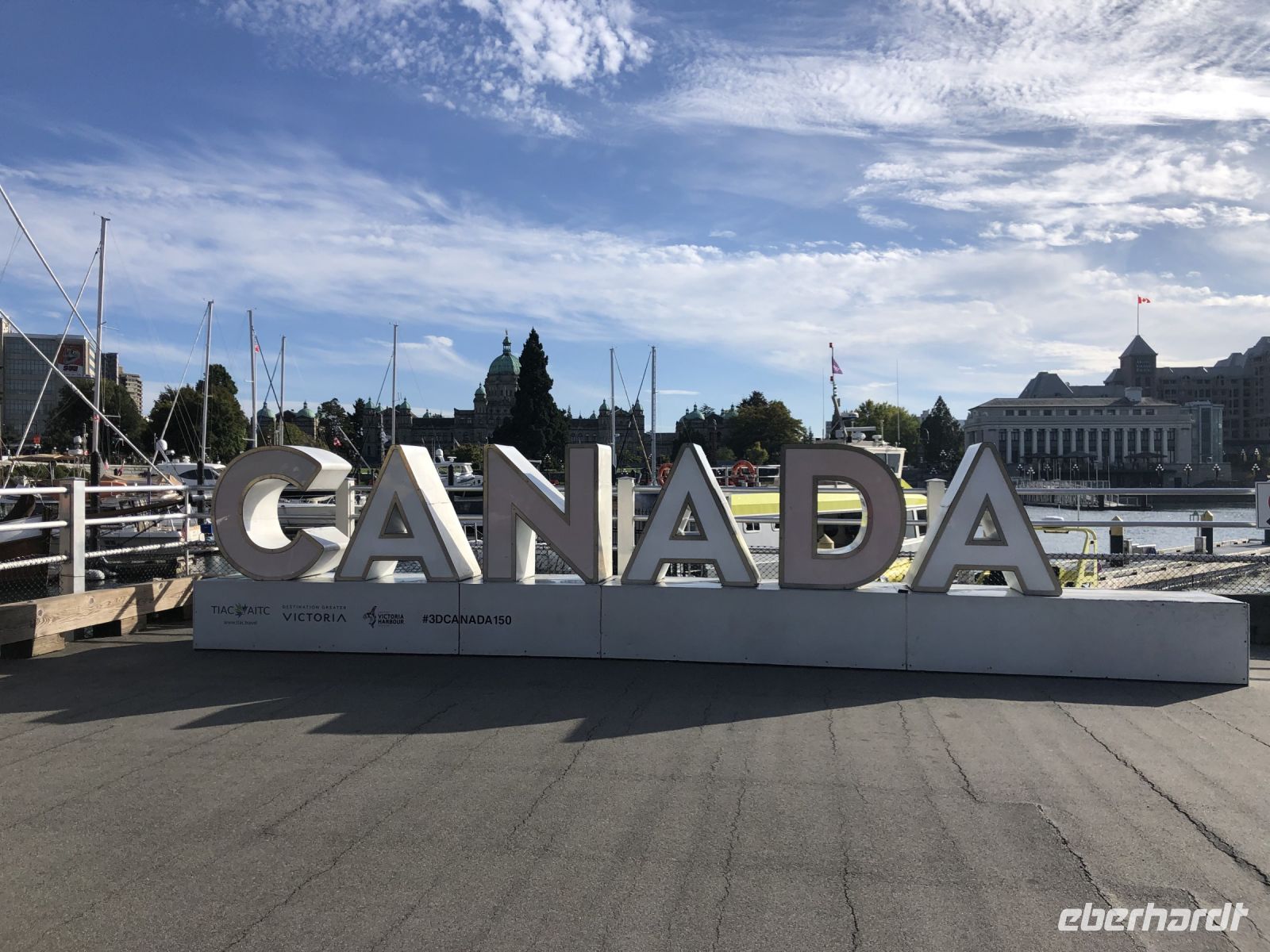 Ohje, so langsam nähert sich die Reise dem Ende.... Aber nicht zu voreilig, denn wir haben ja noch zwei tolle Stopps vor uns. Heute führt uns die Route zunächst einmal in die Hauptstadt British Columbias - nach Victoria. Am frühen Morgen nehmen wir die Fähre und setzen wieder auf die größte, nordamerikanische Pazifikinsel über. Auf dem Weg kommen wir an der kleinen Gemeinde Chemainus vorbei, die bekannt für ihre zahlreichen Wandmalereien ist. Alle bekommen hier etwas Zeit, um einen Spaziergang durch das Örtchen zu unternehmen und sich sowohl die vielen historischen Wandbilder anzuschauen als auch das urige Wasserrad. Aufgrund eines prognostizierten Staus auf der Strecke nach Victoria, müssen wir leider alle Gäste frühzeitig einsammeln und die Fahrt nach Victoria antreten, denn am Nachmittag haben wir einen Termin zur Walbeobachtung, an welchen wir zeitlich gebunden sind und keinesfalls zu spät kommen dürfen. Chemainus ist daher leider etwas zu kurz gekommen, aber letztendlich stellt sich raus, dass die richtige Entscheidung getroffen wurde. Mit etwas Verspätung erreichen wir den Hafen Victorias und flitzen alle in Kolonne zur Anmeldung. Die anderen Gäste warten bereits auf uns - wir gehen direkt an Bord und starten die Walbeobachtung. Wir bewegen uns in Richtung offenes Meer und sichten dabei das US-amerikanische Festland. Auch die Wale lassen nicht allzu lang auf sich warten, so sehen wir verschiedene Buckelwale, die mal ganz nah am Boot vorbei gleiten oder mal etwas weiter in der Ferne. Während der Tour steuern wir noch eine Seelöwenkolonie an, die zwar schön fürs Auge, aber umso schlechter für die Nase ist - der Gestank ist wirklich bestialisch. Doch wir sehen tausende von Seelöwen beim Sonnenbaden auf der kleinen Felsinsel. Wir erreichen den Hafen von Victoria etwa 2 Stunden später und erkunden die charmante Innenstadt bei einem Stadtrundgang. Schon nach den ersten Metern fällt auf, was Victoria für eine saubere, gepflegte und liebevoll dekorierte Stadt ist. Wo man nur hinschaut, entdeckt man tolle Pflanzenarrangements und leuchtende Blumendekorationen. Endlich haben wir auch mal die Möglichkeit, in ein Fairmont Hotel reinzuschauen - und zwar in das Empress Hotel. Über einen Seiteneingang schleichen wir uns in das luxuriöse Gebäude und lassen das majestätische Anwesen auf uns wirken. Wir halten nichts von überteuertem Luxus und erfreuen uns an unser bisherigen Unterkunftsauswahl. Weiter gehts zum Thunderbirdpark - einer kleinen Parkanlage mit vielen verschiedenen Totempfählen, direkt neben dem Royal British Columbia Museum, aus welchem die im Park aufgestellten Totempfähle ursprünglich stammen. Vor dem Museum wartet Ali bereits mit dem Reisebus auf uns, um uns zum beliebten Stadtpark, dem Beacon Hill Park, zu fahren. Bei einer kleinen Rundfahrt durch den Park, sehen wir zahlreiche Pfauen, die nach unserer Meinung allerdings sehr kahl aussehen, den ältesten Totempfahl der Welt sowie einen kleinen Streichelzoo. Der Beacon Hill Park dient als Erholungsort für die Bevölkerung und erstreckt sich bis ans Meer, an die Pazifikküste. Hier befindet sich auch das Mile Zero Monument, als symbolischer Anfangspunkt des Trans-Canada Highways, welcher sich über knapp 8000km, durch 10 kanadische Provinzen, bis an die kanadische Ostküste erstreckt. Damit endet die Stadterkundung durch Victoria und wir beziehen unsere großzügigen Suiten im Royal Scot Suites & Hotel. Das Hotel hat eine großartige Lage und befindet sich direkt hinter dem Parlament, nur wenige Meter bis zum Hafen und Stadtzentrum entfernt.