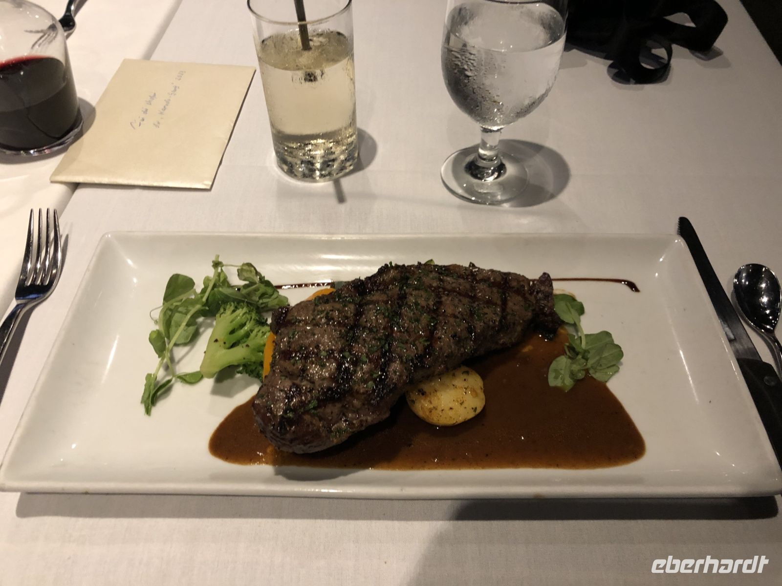 Es geht endlich los! Heute startet unsere 14-tägige Naturreise für Genießer durch West-Kanada. Wir, also meine Wenigkeit und die 13-köpfige Reisegruppe, reisen aus ganz Deutschland zunächst zum Frankfurter Flughafen an, von wo aus unser Hauptflug nach Calgary startet. Nach einem kurzen, ersten Kennenlernen gehen wir an Board der Air Canada und werden in den 9,5 Stunden reichlich mit Essen, Trinken und genügend Unterhaltungsprogramm versorgt. Gegen Nachmittag (Ortszeit) landen wir nun endlich in Albertas Hauptstadt Calgary. Der Tag zieht sich ein wenig wie ein Kaugummi, denn unsere Uhren müssen wir nach Ankunft, um ganze 8 Stunden zurückdrehen. Am Flughafen erledigen wir zunächst die notwendigen Einreiseformalitäten und holen unsere Koffer ab, die glücklicherweise in vollständiger Anzahl, gemeinsam mit uns gelandet sind. Im Ankunftsbereich werden wir herzlich von unserer örtlichen Reiseleitung Nadja empfangen. Auch Buschauffeur Ali steht schon vor dem Terminal mit dem gigantischen Reisebus bereit und nimmt uns ebenfalls herzlich in Empfang. Damit ist sowohl die Reisecrew- als auch die Reisegruppe komplett und wir brechen in Richtung Zentrum auf. Wir unternehmen zunächst eine kleine Orientierungsfahrt durch die Ölhauptstadt mit seinen 1,4 Millionen Einwohnern. Wir sehen den Saddledom, welcher ursprünglich für die Olympischen Winterspiele, die im Jahr 1988 in Calgary stattfanden, errichtet wurde und heute als Heimatarena des NHL Eishockey Teams Calgary Flames dient. Wir sehen zudem den großen Stampede Park, in dem jährlich die weltweit größte Rodeoshow stattfindet und dadurch knapp 1,5 Millionen Gäste in die Stadt zieht. Bei einem kurzen Stopp am Fort Calgary, haben wir die Möglichkeit, uns etwas die Füße zu vertreten und den herrlichen Ausblick auf die Skyline von Calgary zu genießen. Da wir alle recht geschafft vom Tag sind, fahren wir zunächst zum Hotel - The Westin Calgary - mit toller, zentraler Lage. Am Abend erkunden wir die Innenstadt bei einem Spaziergang zu einem lokalen Restaurant und erleben hier eine recht außergewöhnliche Begegnung, so könnte man sagen. Im Lokal genießen wir zwar ein leckeres, aber leider sehr langwieriges Abendessen.