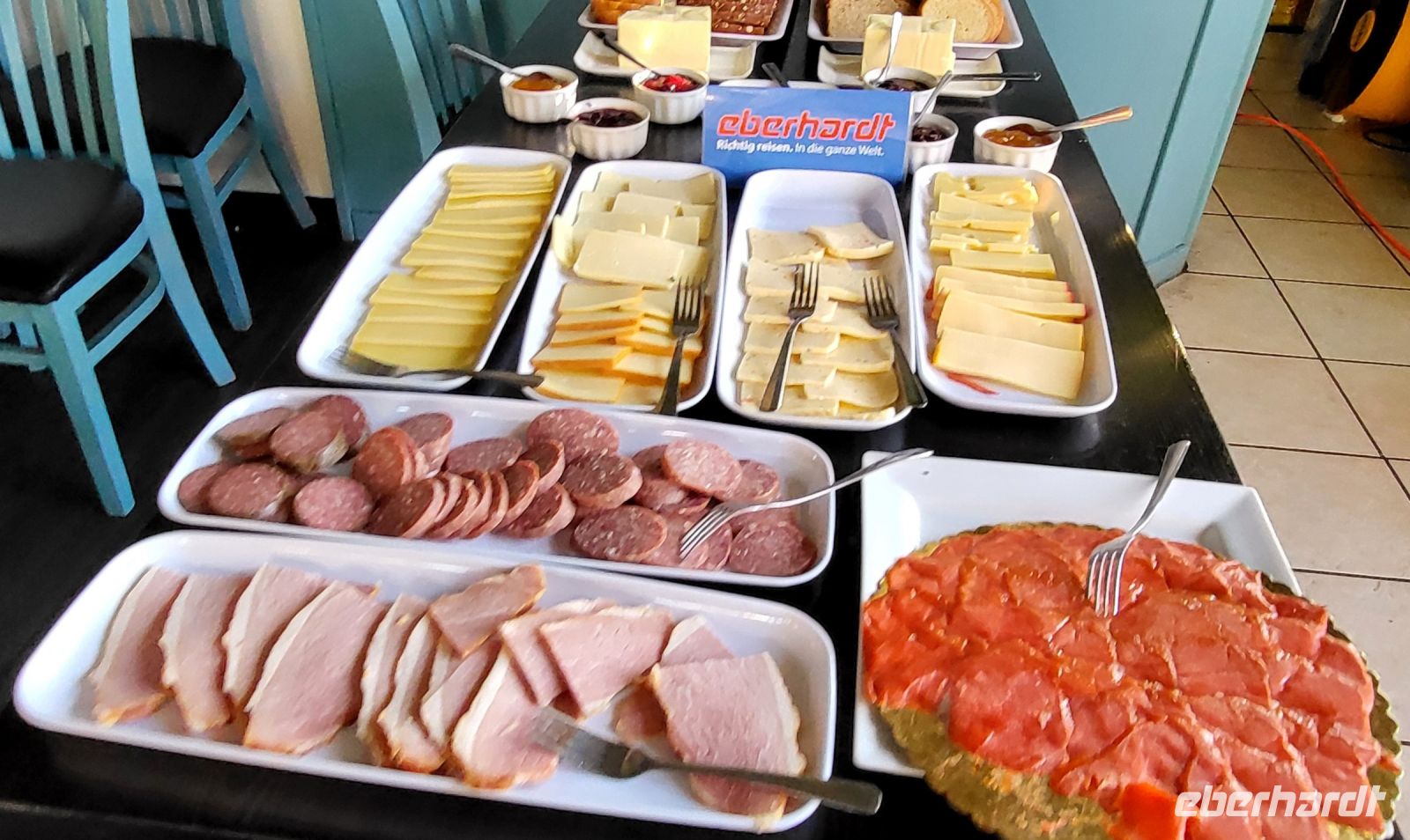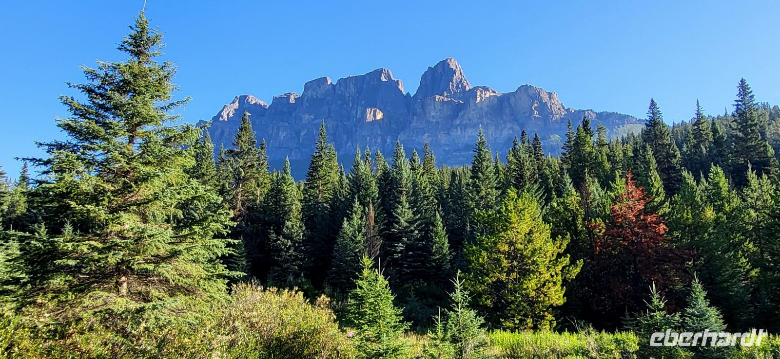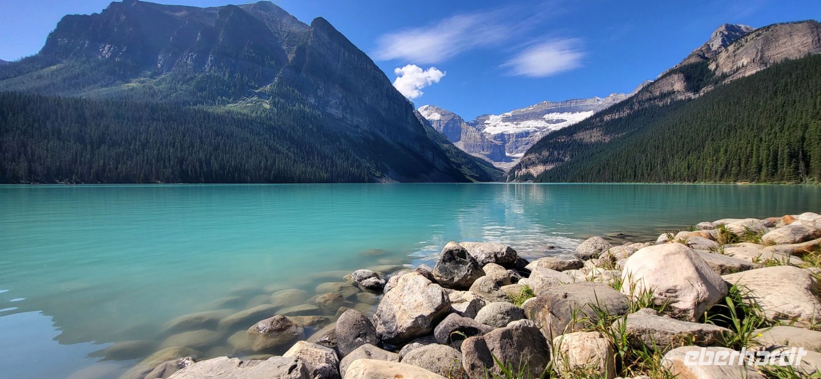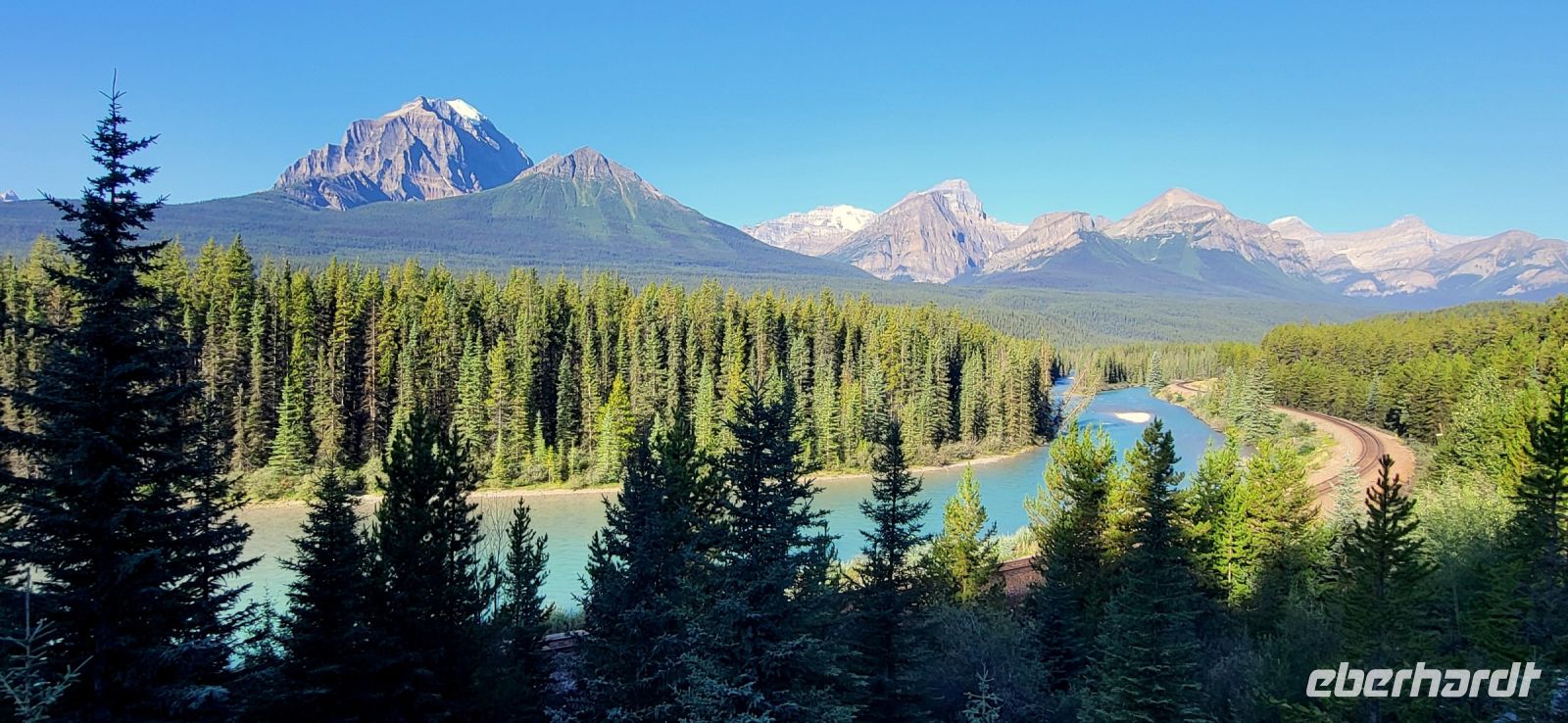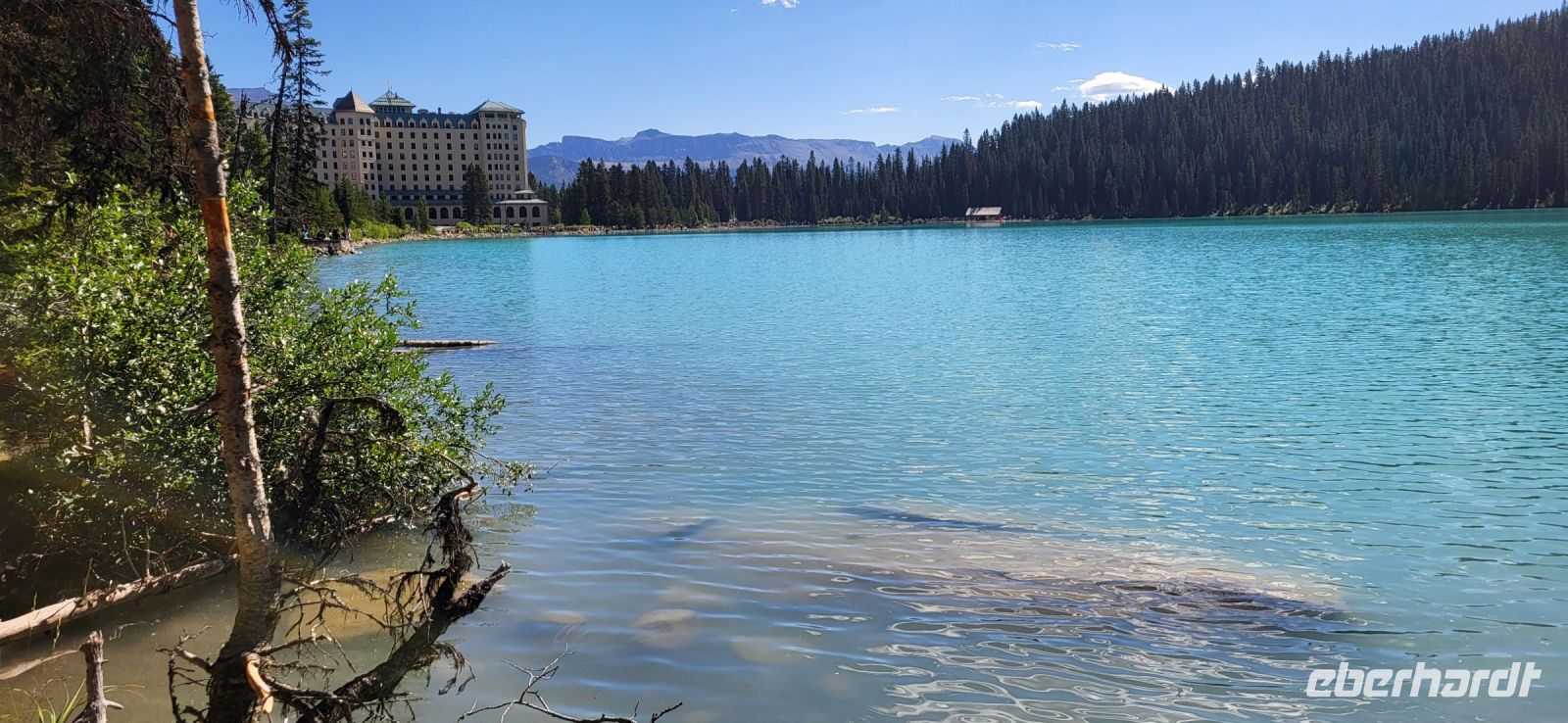 Nach einer erholsamen und sehr kühlen Nacht treffen wir uns zu einem schmackhaften Frühstück wieder. Die Sonne scheint, als wir am frühen Morgen zu unserem Tagesprogramm starten. Da viele Besucher Kanadas die schönen Bergseen besichtigen möchten, entscheiden wir uns für einen frühen Start, damit wir die Natur noch in Ruhe genießen können. Guide Wolfgang schlägt uns eine weniger befahrene Straße, den sogenannten Bow Valley Parkway vor. Hier haben wir mehr Chancen, Wildtiere zu entdecken und die Natur zu genießen. Für einen schönen Fotostopp halten wir am 2766 m hoch gelegenen Castle Mountain, dem Schlossberg. Leider haben die Tiere heute wohl verschlafen und außer wenigen Wapiti Hirschen ist leider nichts zu sehen. Jedoch genießen wir das absolute Traumwetter mit wolkenlosem Himmel und beginnen zunächst mit dem berühmten Moraine Lake, der auf 1884 m Höhe gelegen ist. Die meisten aus der Gruppe entscheiden sich, diesen aus luftiger Höhe anzusehen. Einige Naturstufen höher, haben wir einen tollen Blick auf den unter uns liegenden Gletschersee, dessen türkisfarbenes Wasser umrahmt der Bergwelt eine tolle Kulisse bietet. Ein kleiner Teil von uns spaziert mit Guide Wolfgang am See entlang und erkundet diesen ebenerdig. Die Weiterfahrt führt uns zum berühmten Lake Louise. Nicht nur ein See, sondern auch ein sehr bekanntes kanadisches Skigebiet, liegt dieser auf 1750 m Höhe, umrahmt von den Rocky Mountains. Auch das Chateau Lake Louise welches 1911 erbaut wurde, verfügt über 539 Zimmer, erweist sich die Ehre. Ist jedoch nun nur noch für Hotelgäste zugänglich. So unternehmen wir einen schönen Spaziergang am See entlang, entdecken so besondere Vögel, den sogenannten Whisky Jack. Am Lake Louise Village halten wir für eine Mittagspause, wo wir uns in der örtlichen Bäckerei oder Supermarkt verpflegen und das Erworbene idyllisch am nah gelegenen Fluss verspeisen können. Welch eine Idylle in herrlicher Natur. Im Anschluss besuchen wir den ebenfalls den so besonderen Peyto Lake. Diesen schauen wir uns aus der Höhe an und haben hier ein unwirkliches Türkis vor Augen und staunen nicht schlecht, wie schnell sich in den Bergen das Wetter ändern kann. Mit dem genau richtigen Timing, konnten wir den See noch bei bestem Wetter erleben, wenige Minuten später regnet es zu unserer Abfahrt. Aber-alles richtig gemacht, wir hatten beste Bedingungen. Noch einige Fotostopps am Bow Lake mit Blick auf den Gletscher und Hector Lake und schon erreichen wir unsere nächste Unterkunft, den Lake Louise Inn. Hier können wir ein wenig den erlebnisreichen Traumtag sacken lassen und fahren anschließend zum Abendessen in das The Station Restaurant. Ein sehr schönes Lokal im ehemaligen Bahnhofsgebäude, wo wir in uriger Atmosphäre ein sehr schmackhaftes Essen genießen.