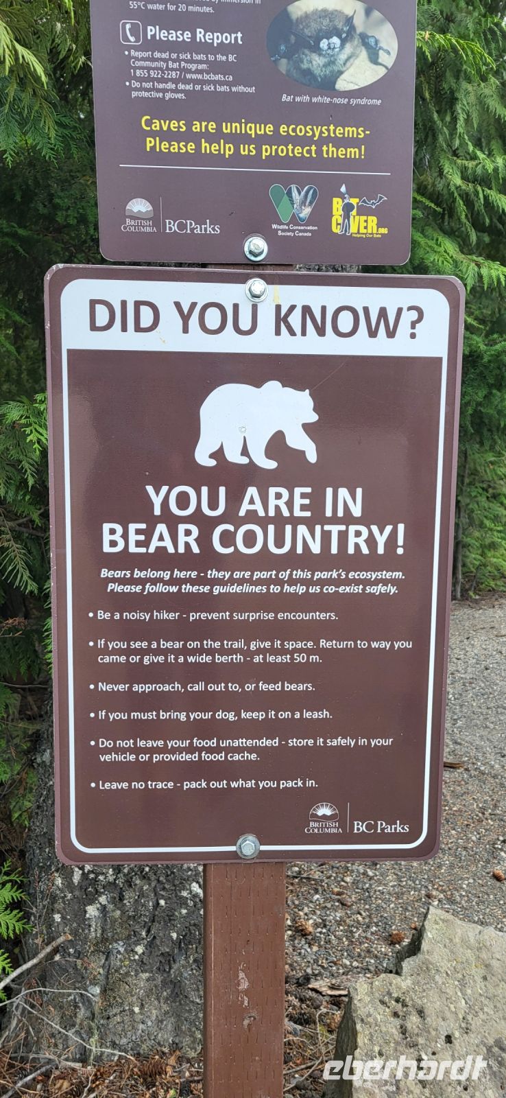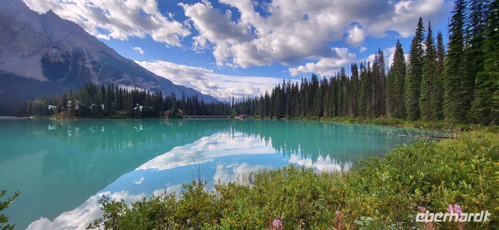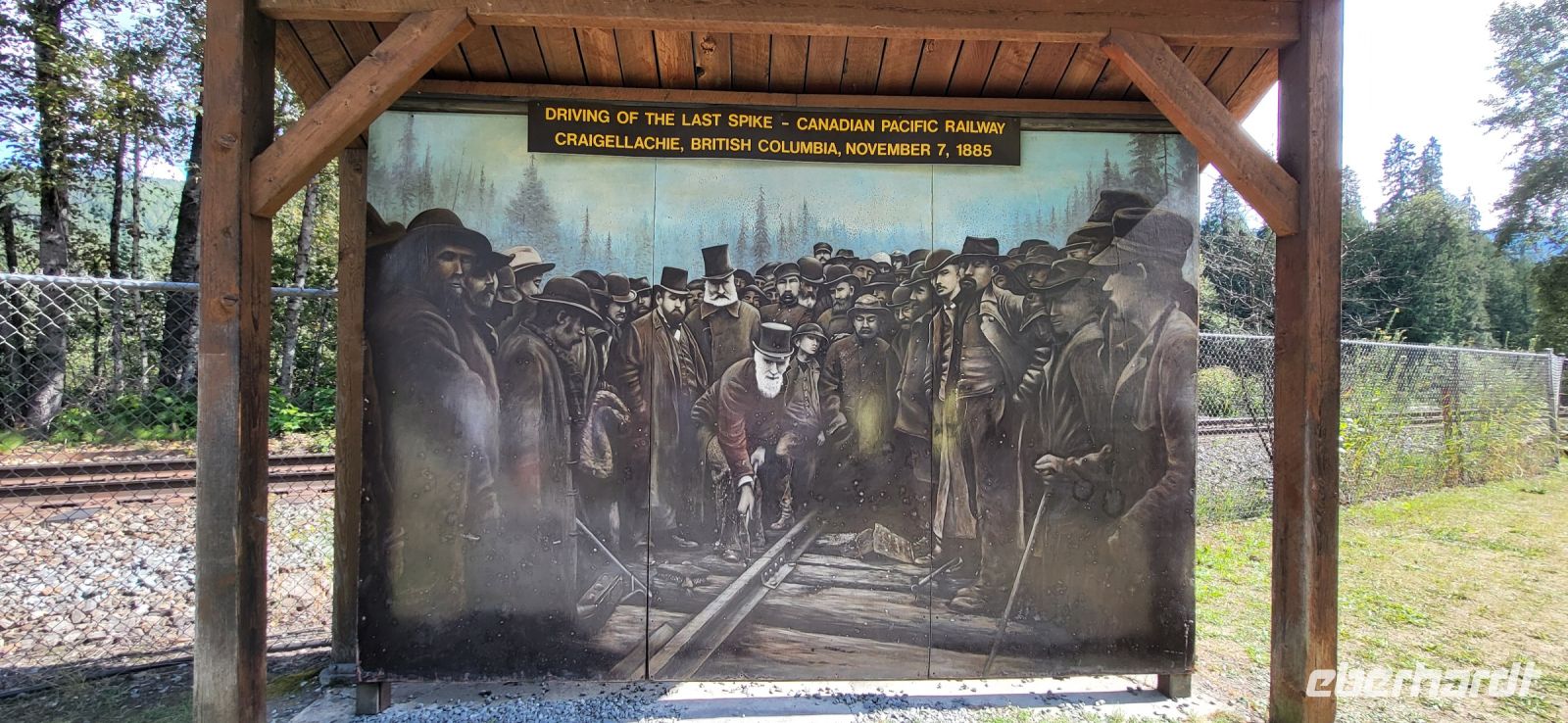 Nach einer erholsamen Nacht und einem fürstlichen Frühstück im Lake Louise Inn verlassen wir den bekannten Skiort und ziehen weiter zum sogenannten Spiral Tunnel. Hier haben wir das große Glück, dass genau jetzt ein Zug zu sehen ist, wie er sich durch den Tunnel bergauf schlängelt. Kurz darauf erreichen wir den „Smaragd See“. Am Emerald Lake angekommen unternehmen wir einen schönen Spaziergang am See entlang, dessen smaragdgrünes Wasser eine wunderschöne Fotokulisse bietet. Erneut profitieren wir von den frühen Morgenstunden, denn es ist noch leer und nur wenige Touristen außer uns unterwegs. Die Kulisse, die Spiegelung des Sees, einfach ein „magic moment“, den wir in uns aufnehmen und auch auf zahlreichen Fotos festhalten. Der nächste Halt erfolgt am Spiral Tunnel und haben dort das große Glück gleich zwei Züge hintereinander zu sehen, die sich durch den Tunnel bergauf quälen. Weiter geht es zur sogenannten Naturbrücke „Natural Bridge“, durch die sich der Bow River kämpft. Ein erneut herrliches Naturspektakel, eingebettet in die Bergwelt der Rocky Mountains. Am Giant Cedar Boardwalk unternehmen wir einen schönen Spaziergang zu den Baumriesen und befinden uns unweit der Straße inmitten wunderbarer Natur. Ein gut ausgebauter Holzweg führt und zu den Giganten und wir haben viel Spaß damit, diese gemeinsam mit uns auf einem Foto zu verewigen. Historisch wird es erneut bei Last Spike, hier wurde vermeintlich der letzte Nagel in die Eisenbahnschienen gehauen und somit die Fertigstellung der Eisenbahnlinie von Quebec und Montreal im Osten und Vancouver im Westen 1885 besiegelt. Am späten Nachmittag und 450 Km weiter erreichen wir Kamloops, wo sich uns ein völlig neues Landschaftsbild bietet. Die Natur ist nun karger und wesentlich trockener. Hier liegt der besondere South Thompson Inn, der idyllisch am Fluss gelegen ist. Amüsiert nehmen wir das Warnschild auf der Zufahrt zur Kenntnis, welches auf hier lebende Schildkröten hinweist. Ein schönes BBQ Dinner auf der gemütlichen Terrasse am Thompson River rundet einen weiteren erlebnisreichen Tag ab.