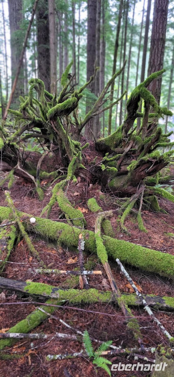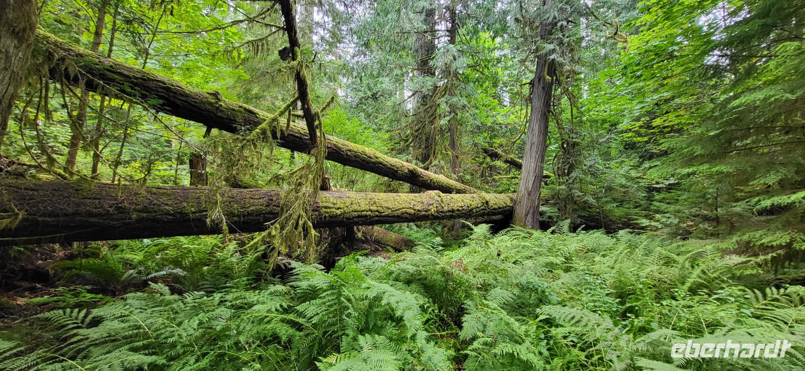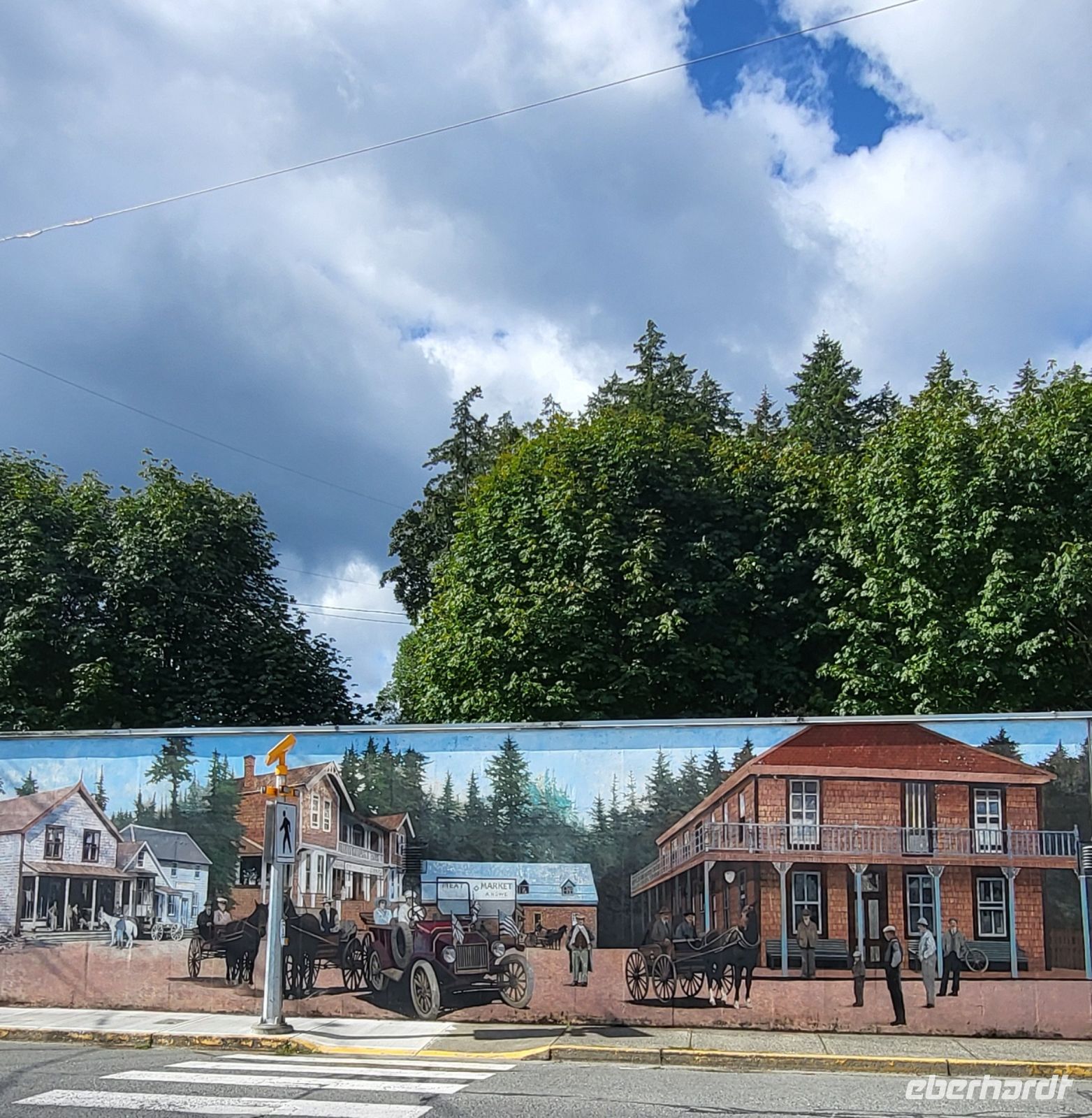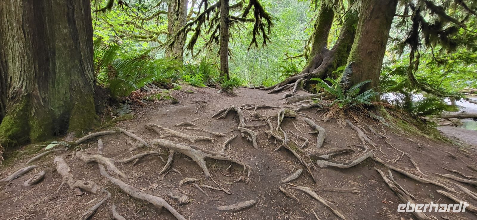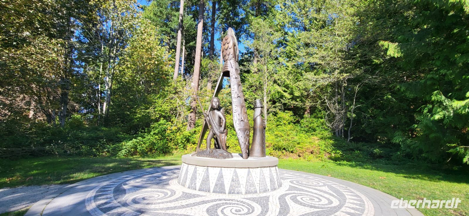 Heute frühstücken wir mal außer Haus und bekommen im Crêpe Montagne herrliche Crêpes serviert. Da das Lokal exklusiv für uns am frühen Morgen geöffnet hat, machen wir es uns gemütlich und speisen genüsslich. Kurz darauf verlassen wir das noch verschlafene Whistler und begeben uns Richtung Küste. Gerne hätten wir einen Blick auf die 2600 m hohen Tantalus Mountains geworfen, aber leider liegen diese heute tief hinter den Wolken. Dafür unternehmen wir einen schönen Spaziergang zu den Shannon Falls, ein Wasserfall, der wie ein Schleier in die Tiefe fällt und herrlich im Wald gelegen ist. Bald darauf haben wir bereits die sogenannte Horseshoe Bay vor uns, die vielen Wochenendausflügler nutzen um mit dem Boot hinauszufahren. Unsere anschließend 1,5-stündige Fährüberfahrt mit BC Ferries bringt uns bei besten Wetterbedingungen und knapp 60 Km weiter nach Vancouver Island. Diese ist die 11. größte Insel Kanadas und an Platz 43 der größten Inseln weltweit. Mit 420 km Länge vergisst man vor Ort, dass man sich auf einer Insel befindet. Nach Ankunft im beschaulichen Örtchen Nanaimo fahren wir zum Old Country Market in Coombs, der berühmt dafür ist, dass es hier die Ziegen auf dem Dach grasen. Tatsächlich-dort angekommen, sehen wir auch prompt einen Ziegenbock hoch oben auf. Im Anschluss halten wir an der Cathedral Cove im McMillan Provincial Park, wo es die berühmten Mammutbäume zu bestaunen gilt. Einem schönen Waldpfad folgend, sehen wir jahrhundertalte Zedern und Douglasien, deren ältestes Exemplar 800 Jahre alt sein soll. Diese hat eine Höhe von 76 m und einen Umfang von 9 m. Absolut beachtlich und man fühlt sich winzig zwischen all den Baumriesen. Am späten Nachmittag erreichen wir Campbell River und unsere nächste Unterkunft für die kommenden zwei Nächte, welche direkt an einem der vielen Ausläufern des Pazifiks gelegen ist.