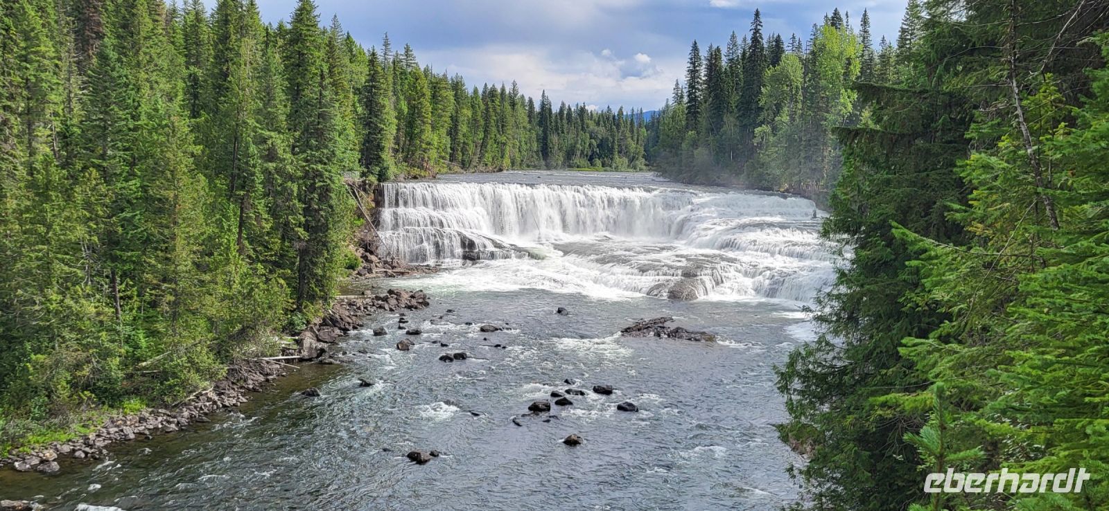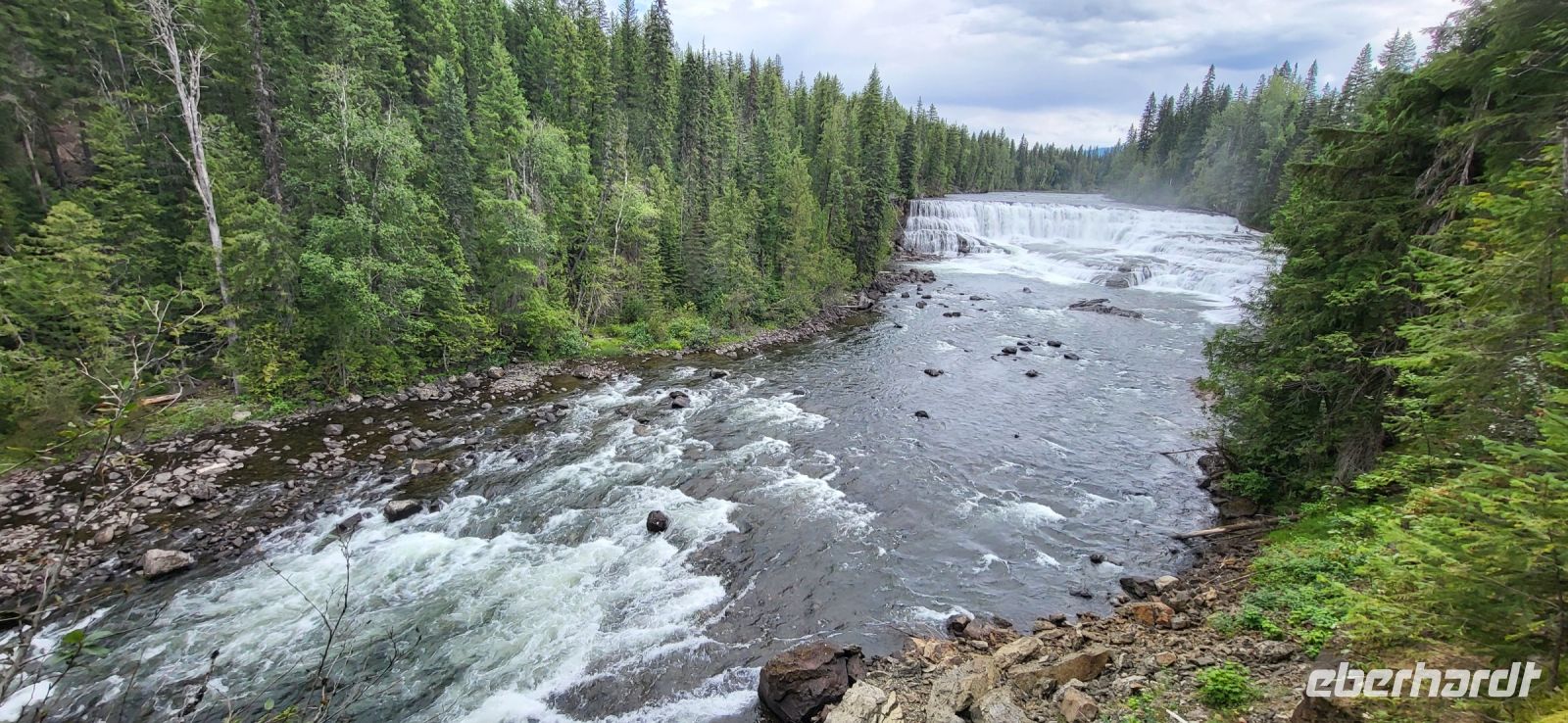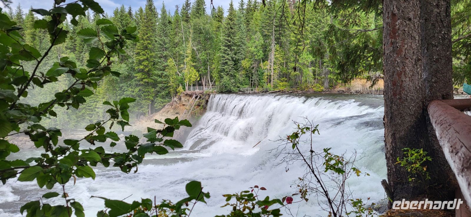 Bedingt durch die immer noch vorherrschenden Waldbrände in Alberta müssen wir nochmals unser Programm ändern. So steuern wir heute das Tagesziel Clearwater an, welches am Eingang des berühmten Wells Gray Pronvincial Park liegt. Hier bietet sich uns ein wunderbarer Ersatz für das entgangene Naturerlebnis am Maligne Lake mit der bekannten Spirit Island. Vormittags erreichen wir Clearwater und starten in den 1939 eröffneten Wells Gray Provincial Park, der für uns nun um die Ecke liegt. Einmal von der Hauptstraße abgebogen, befinden wir uns schon wieder mitten in der Natur. Der Wells Gray ist der 4. Größte Provincial Park in British Columbia und bekannt für seine vielen Wandermöglichkeiten und vor allem seine grandiosen Wasserfälle. So starten wir zunächst mit dem für uns allerschönsten, den Dawson Falls. Diese ähneln den Niagara Fällen, natürlich kleiner, dafür aber mitten in der Natur gelegen, ein atemberaubendes Naturspektakel, welchem wir ganz nah beiwohnen dürfen. Mittags halten wir am Clearwater Lake, wo uns Guide Esmeralda empfängt und wir zunächst zu einem kleinen Picknick eingeladen sind. Im Anschluss geht es per Kanu auf den See hinaus. Gar nicht so einfach, erst erfolgt eine Einweisung, natürlich auch das Anlegen der Schwimmweste, Aussuchen des richtigen Paddels und los geht es per Kanu bepackt hinunter zum See. Als Team muss man nun das Kanu steuern und zum Ziel bringen. Was soll ich sagen, einige haben es mit Bravour gemeistert, andere haben viel gelacht und sich im Kreis gedreht. Den am Ufer zurückgebliebenen boten wir natürlich eine herrliche Kulisse und haben für viel Amüsement gesorgt. Zurück am Ufer ziehen wir weiter Baileys Chute und hoffen im Fluss Lachse zu entdecken, was uns leider nicht gelang. Kurz darauf erwartet uns das nächste Highlight-die Helmcken Falls. Dieser berühmte Wasserfall gilt mit 141 m als einer der höchsten Kanadas und bildet eine unglaubliche Kulisse. Bevor wir den Park verlassen, besuchen wir noch die 75 m hohen Spahats Falls, wo wir noch etwas verweilen und die Tiefe unter uns genießen. So endet ein toller Tag in Kanadas unglaublicher Natur, den wir vermutlich besser nicht hätten gestalten können. Er war somit eine gelungene Alternative zum eigentlichen Programm, welches aufgrund der anhaltenden Waldbrände geändert werden musste.