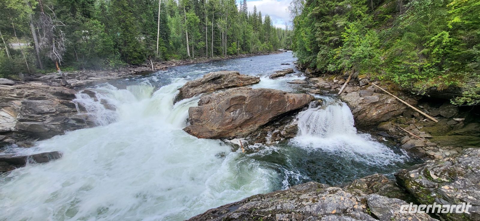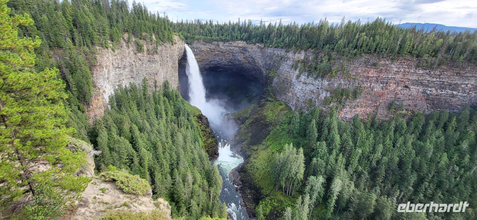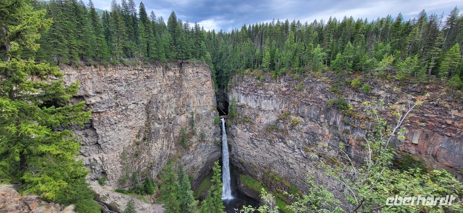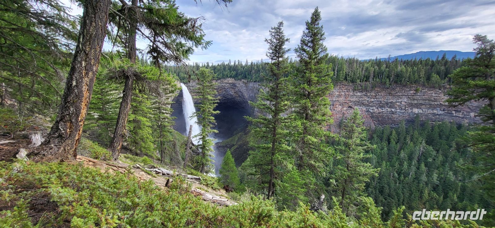 Bedingt durch die immer noch vorherrschenden Waldbrände in Alberta müssen wir nochmals unser Programm ändern. So steuern wir heute das Tagesziel Clearwater an, welches am Eingang des berühmten Wells Gray Pronvincial Park liegt. Hier bietet sich uns ein wunderbarer Ersatz für das entgangene Naturerlebnis am Maligne Lake mit der bekannten Spirit Island. Vormittags erreichen wir Clearwater und starten in den 1939 eröffneten Wells Gray Provincial Park, der für uns nun um die Ecke liegt. Einmal von der Hauptstraße abgebogen, befinden wir uns schon wieder mitten in der Natur. Der Wells Gray ist der 4. Größte Provincial Park in British Columbia und bekannt für seine vielen Wandermöglichkeiten und vor allem seine grandiosen Wasserfälle. So starten wir zunächst mit dem für uns allerschönsten, den Dawson Falls. Diese ähneln den Niagara Fällen, natürlich kleiner, dafür aber mitten in der Natur gelegen, ein atemberaubendes Naturspektakel, welchem wir ganz nah beiwohnen dürfen. Mittags halten wir am Clearwater Lake, wo uns Guide Esmeralda empfängt und wir zunächst zu einem kleinen Picknick eingeladen sind. Im Anschluss geht es per Kanu auf den See hinaus. Gar nicht so einfach, erst erfolgt eine Einweisung, natürlich auch das Anlegen der Schwimmweste, Aussuchen des richtigen Paddels und los geht es per Kanu bepackt hinunter zum See. Als Team muss man nun das Kanu steuern und zum Ziel bringen. Was soll ich sagen, einige haben es mit Bravour gemeistert, andere haben viel gelacht und sich im Kreis gedreht. Den am Ufer zurückgebliebenen boten wir natürlich eine herrliche Kulisse und haben für viel Amüsement gesorgt. Zurück am Ufer ziehen wir weiter Baileys Chute und hoffen im Fluss Lachse zu entdecken, was uns leider nicht gelang. Kurz darauf erwartet uns das nächste Highlight-die Helmcken Falls. Dieser berühmte Wasserfall gilt mit 141 m als einer der höchsten Kanadas und bildet eine unglaubliche Kulisse. Bevor wir den Park verlassen, besuchen wir noch die 75 m hohen Spahats Falls, wo wir noch etwas verweilen und die Tiefe unter uns genießen. So endet ein toller Tag in Kanadas unglaublicher Natur, den wir vermutlich besser nicht hätten gestalten können. Er war somit eine gelungene Alternative zum eigentlichen Programm, welches aufgrund der anhaltenden Waldbrände geändert werden musste.