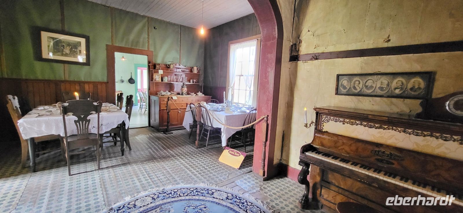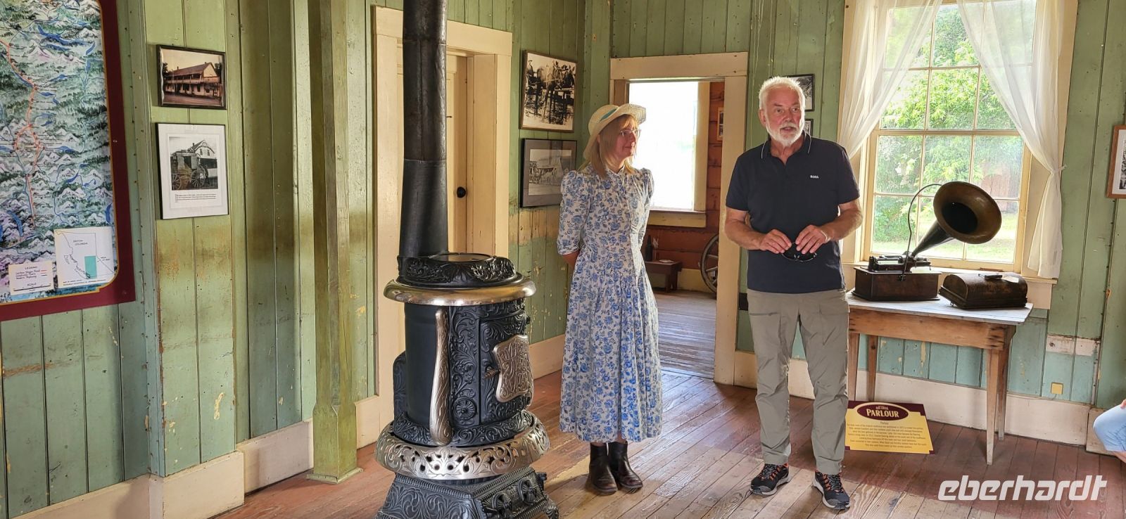 Unsere Reiseroute führt uns nun durch eine Region, die einst für ihren Goldrausch bekannt war und damals einen riesigen Boom erlebte. So entstand auch im Jahre 1860 die Hat Creek Ranch, ein Umschlagplatz für viele vorbeiziehende Goldsucher, wo übernachtet und sich ausgetauscht sowie gehandelt wurde. Hier erhalten wir durch die indigene Führerin Lucil interessante Informationen während unseres Rundganges. Sie berichtet viel vom Leben der einstigen Stämme der Region, wie gelebt, gejagt und verarbeitet wurde. Eine beeindruckende Frau, die auch aus der Generation stammt, in der den Kindern in der Schule verboten wurde, ihre eigene Sprache zu sprechen und somit dem Versuch, viel der indigenen Kultur auszumerzen. Während unseres Aufenthaltes unternehmen eine kleine Runde über das Gelände unternehmen und besichtigen das frühere Wohnhaus der Familie Mr. Lean, welches nach und nach zum Hotel umgebaut wurde. Große Teile befinden sich im Originalzustand von 1860 bzw. 1901. Einfach beeindruckend, diese Zeitreise unternehmen zu können. Nicht zu vergessen sei der Schmied, dem wir eingangs ebenfalls einen Besuch abstatteten und der uns anschaulich demonstrierte, wie einst täglich 800-1000 Nägel gefertigt wurden. Mittags halten wir in der Ortschaft Lilloet mit einst 25.000 Einwohnern. Sie galt als die Boomtown des Goldrausches, verlor jedoch viel an Glanz, als die Goldsucher unerwartet weiter zogen. Als im Sommer heißeste Stadt Kanadas, bietet diese jedoch auch guten Nährboden um Weinanbau zu betreiben. Hier versorgen wir uns mit einem kleinen Mittagssnack und folgen dann weiter dem Fraser River Richtung Tyax Lodge. Dazu geht es in schwindelnder Höhe 60 km am Carpenter Lake, einem Stausee entlang, wo die Straße zwischen Schotterpiste und normalem Asphalt wechselt. Nochmals ein Fotostopp, bei dem wir den Atem anhalten. Welch eine grandiose Aussicht auf das unter uns liegende Tag und die unwirkliche Kulisse vor uns. Am späten Nachmittag sind wir in der Wildnis am Tyaughton Lake angekommen, an welchem die idyllisch gelegene Tyax Lodge für die nächsten beiden Nächte unsere Unterkunft sein wird. Wir erfreuen uns an dieser tollen, rustikalen und urgemütlichen Lodge, genießen ein tolles Abendessen in fröhlicher Runde und sind gespannt auf einen tollen 1.5-stündigen Rundflug per Wasserflugzeug, den die meisten von uns für morgen noch spontan gebucht haben.