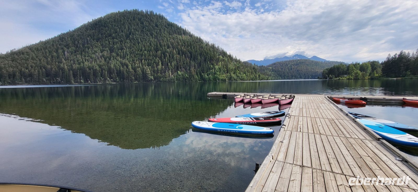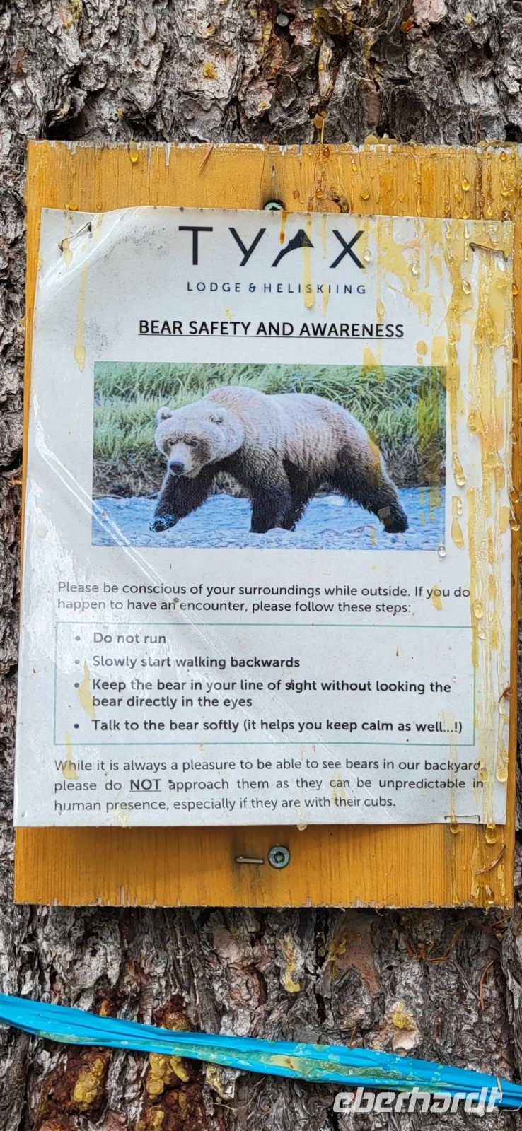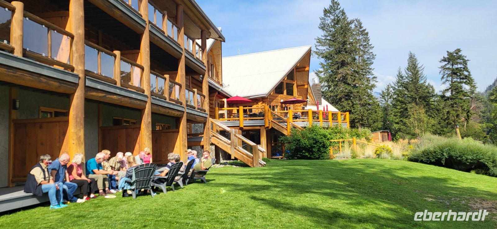 Heute heißt es ausschlafen. Gelingt uns das-natürlich nein, denn wir sind längst im frühen Reisemodus und das ist ja auch gut so. Somit finden sich alle doch zu einem frühen Frühstück ein und gehen anschließend in zwei Gruppen zum 1,5-stündigen Panoramaflug per Wasserflugzeug. Neben grandioser Natur aus luftiger Höhe erfolgt auch ein Ausstieg am Bridge Glacier, wo es erstaunlicherweise wärmer ist als aktuell bei uns unten im Tal. Strahlende Gesichter kehren glücklich zurück und bestätigen einstimmig, diesen Flug niemals hätten missen wollen. Am frühen Nachmittag geht es auf zu einer kleinen Wanderung auf dem sogenannten „Interpretive Trail“ am See entlang. Warnschilder weisen darauf hin, dass auch Bären den Weg nutzen. Deren Hinterlassenschaften sind für uns deutlich sichtbar auf unserer schönen Route. So streifen wir durch die herrliche Natur mit Blick auf den Tyaughton Lake und befinden uns mitten in der Wildnis Kanadas. Nachmittags sitzen wir in gemütlicher Runde auf der Wiese unserer Anlage bei herrlichem Sonnenschein und milden Temperaturen. Ein weiteres schmackhaftes Abendessen rundet unseren Aufenthalt hier in der Natur ab, bevor es morgen zurück in die Zivilisation zum quirligen Skiort Whistler geht.