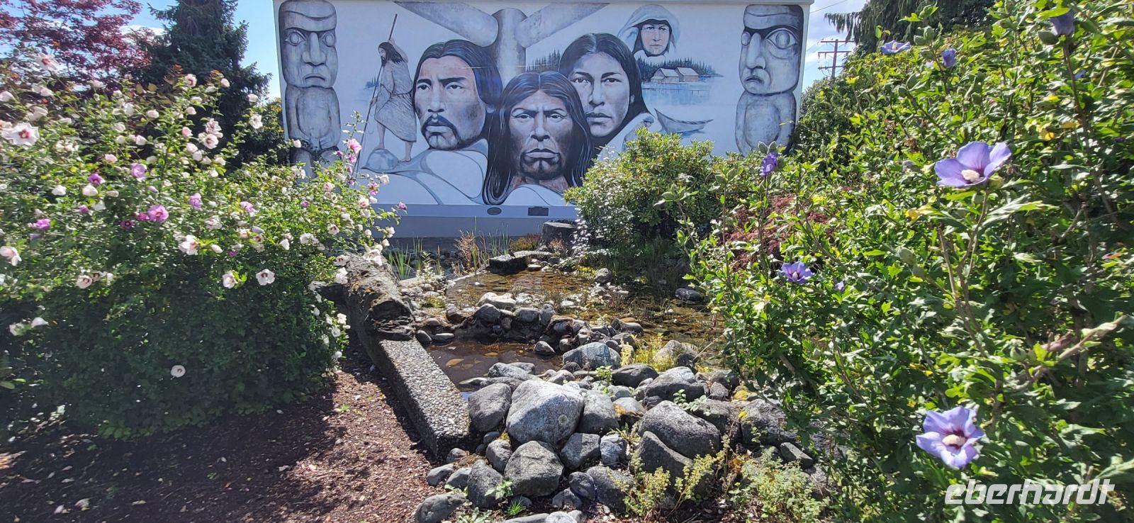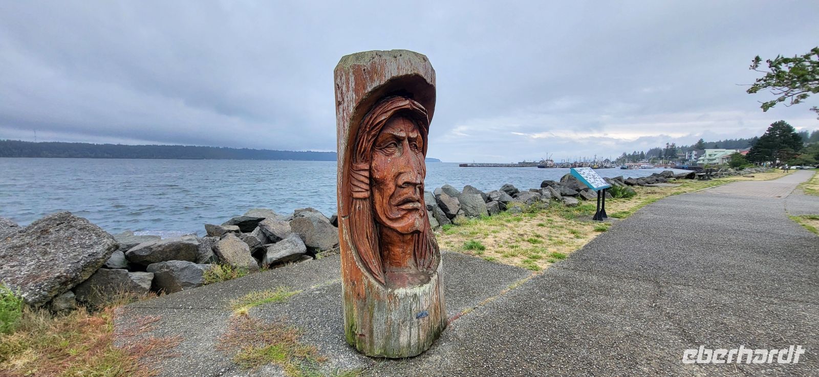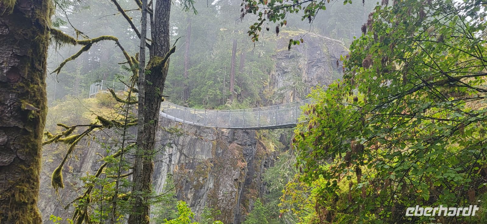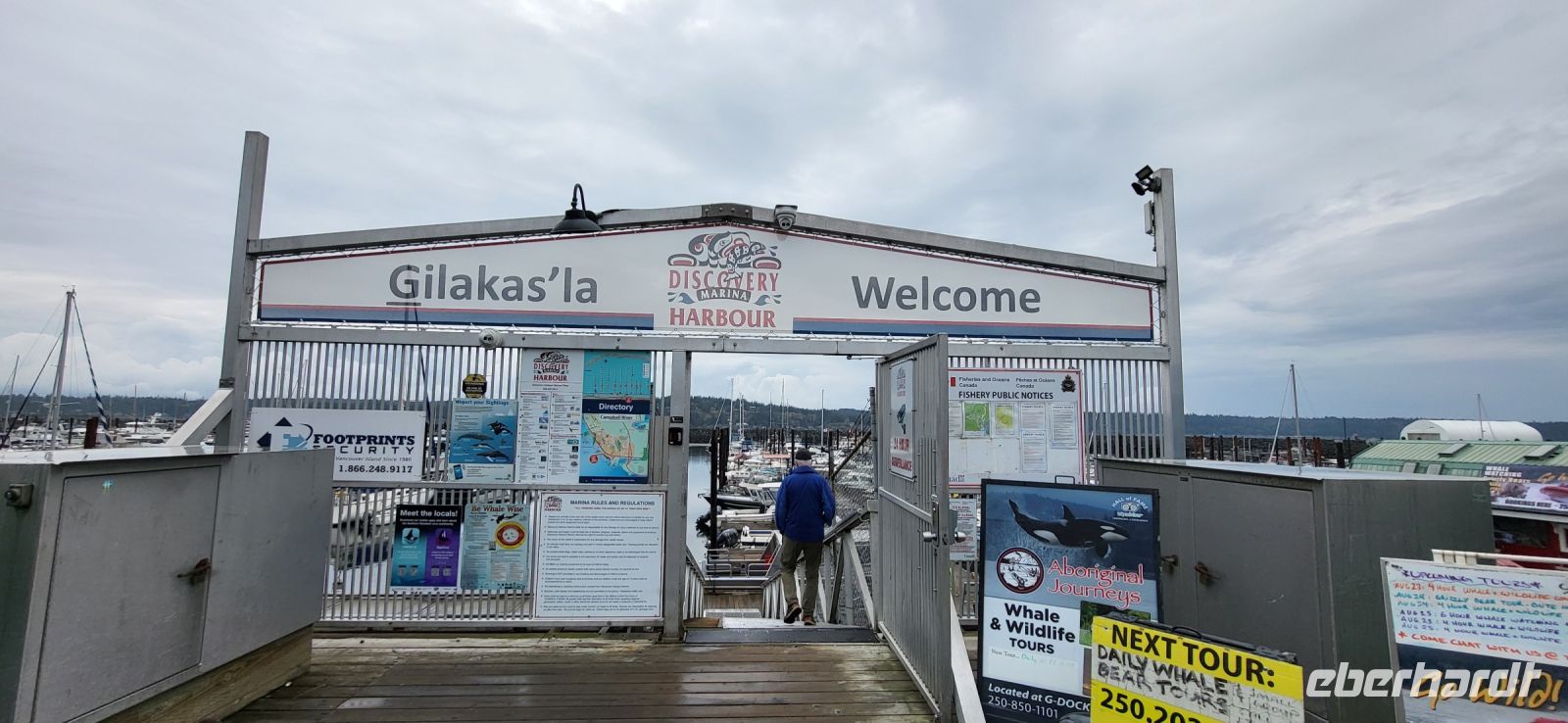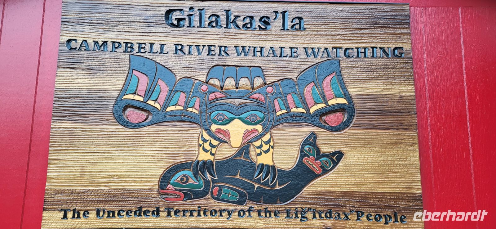 Wolfgang und ich verbleiben mit den Gästen, die nicht am Bärenausflug teilgenommen haben. In nunmehr kleiner Runde unternehmen wir eine schöne Wanderung zum Elk Falls, einem beeindruckenden Wasserfall, den wir auf einem schönen Spaziergang durch den kanadischen Regenwald erreichen. Direkt daneben befindet sich eine Hängebrücke, über die wir in schwindelnder Höhe auf die andere Seite gelangen. Welch eine Aussicht, auf die Wassermassen unter uns. Im Anschluss halten wir am Fluss, um den Anglern beim Lachsfang zuzusehen. Unglaublich, wie viele Lachse diese in nur kurzer Zeit auf dem Wasser ziehen. Gerade jetzt ist die Saison, in der die Lachse aus dem Meer über die Flüsse zurück an ihre Geburtsstätten ziehen, dort laichen und anschließend versterben. Diesen Plan durchkreuzen entweder die Bären oder die Angler, die genau schon auf diesen Augenblick warten. Zurück in Campbell River besuchen wir ein Museum, wo wir viel über die indigene Geschichte und die Pionierzeit von Vancouver Island erfahren. Am späten Nachmittag nehmen wir glückliche Ausflügler erneut in Empfang, die von einem aufregenden Tag aus der Wildnis zurückkehren. So viele Eindrücke müssen gefeiert werden und so speisen wir genüsslich im Quay West Restaurant und tauschen uns über unsere heutigen Erlebnisse aus.