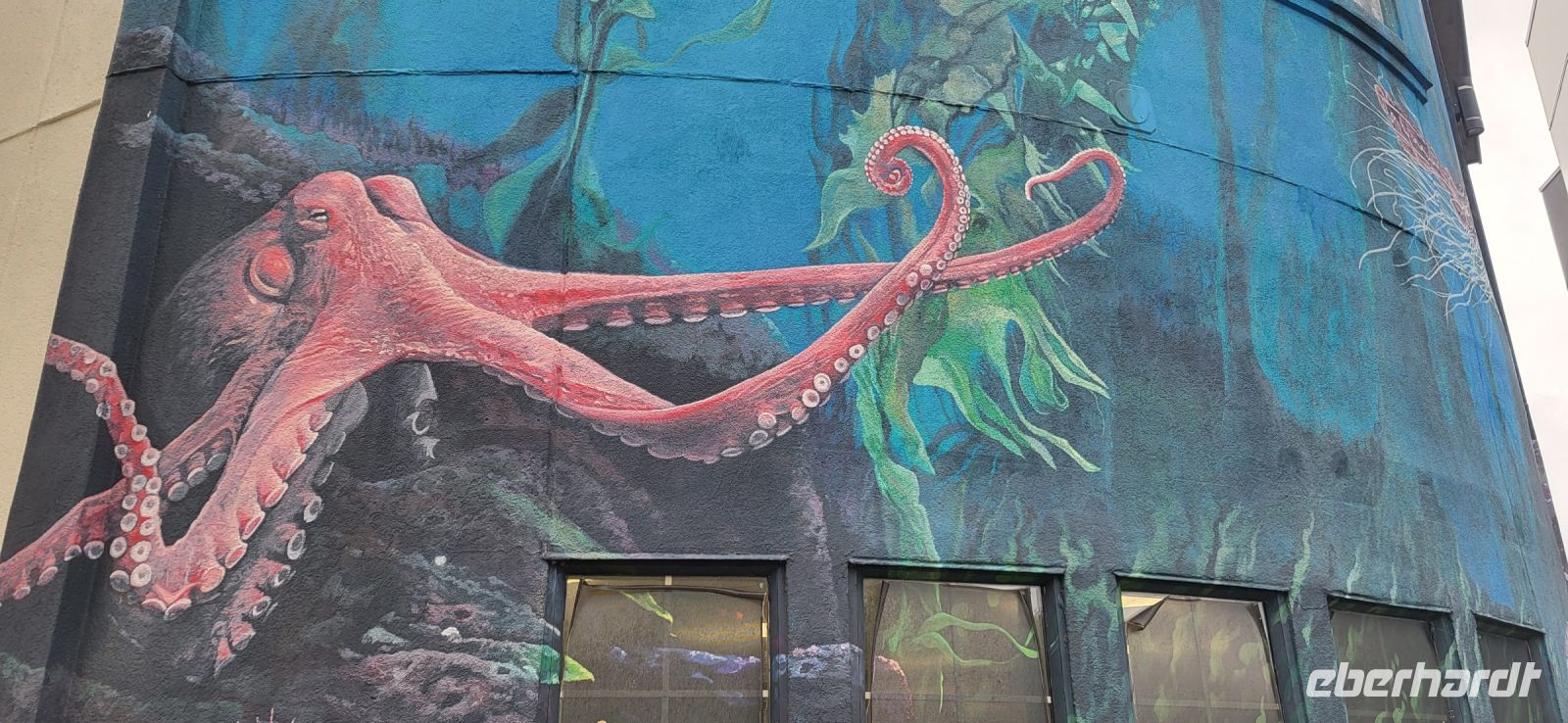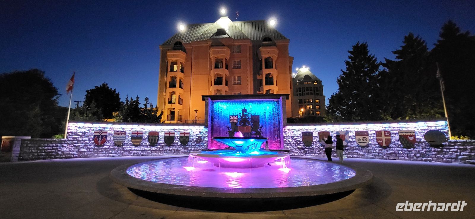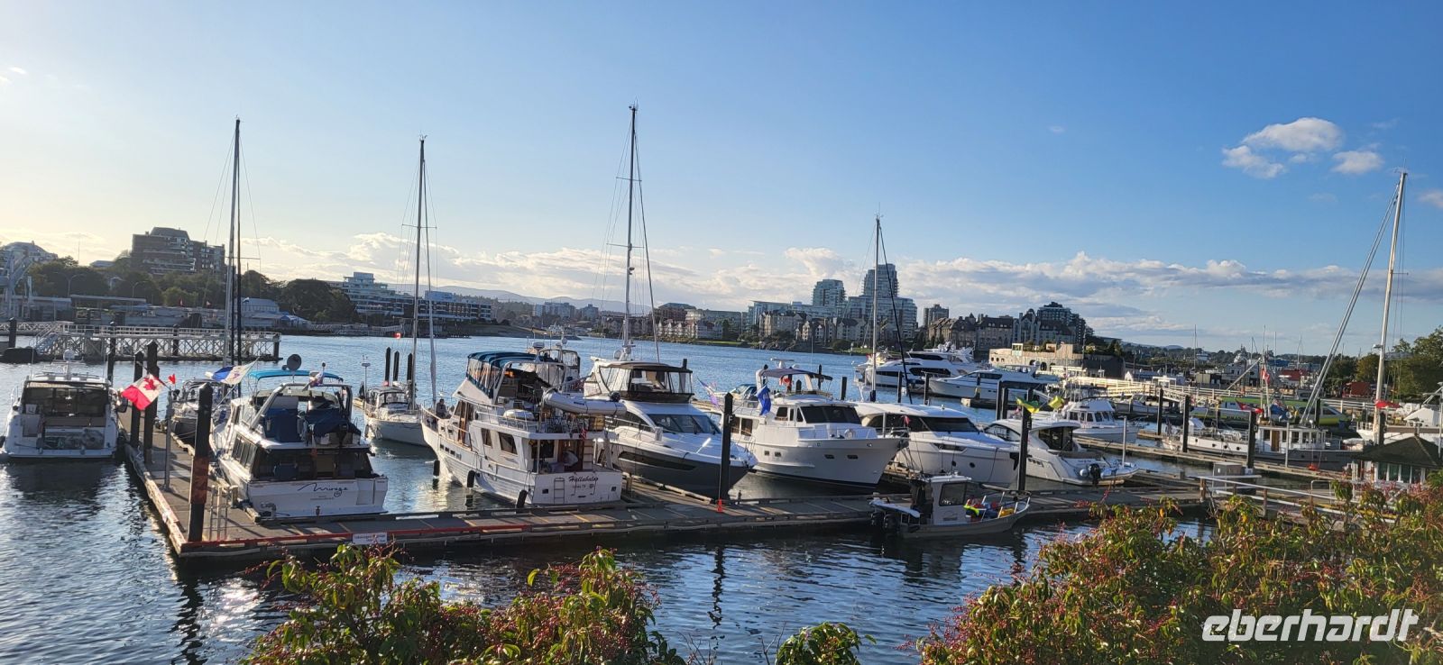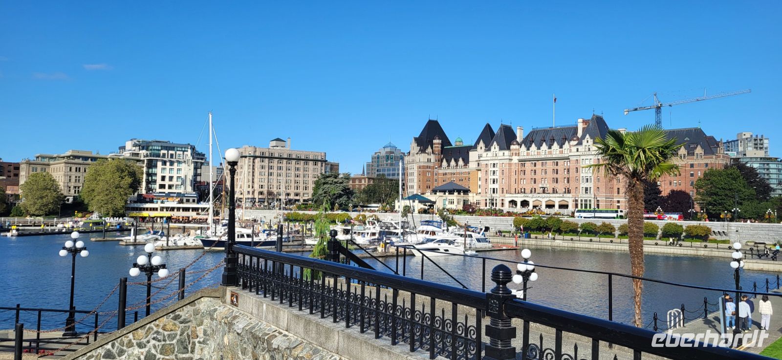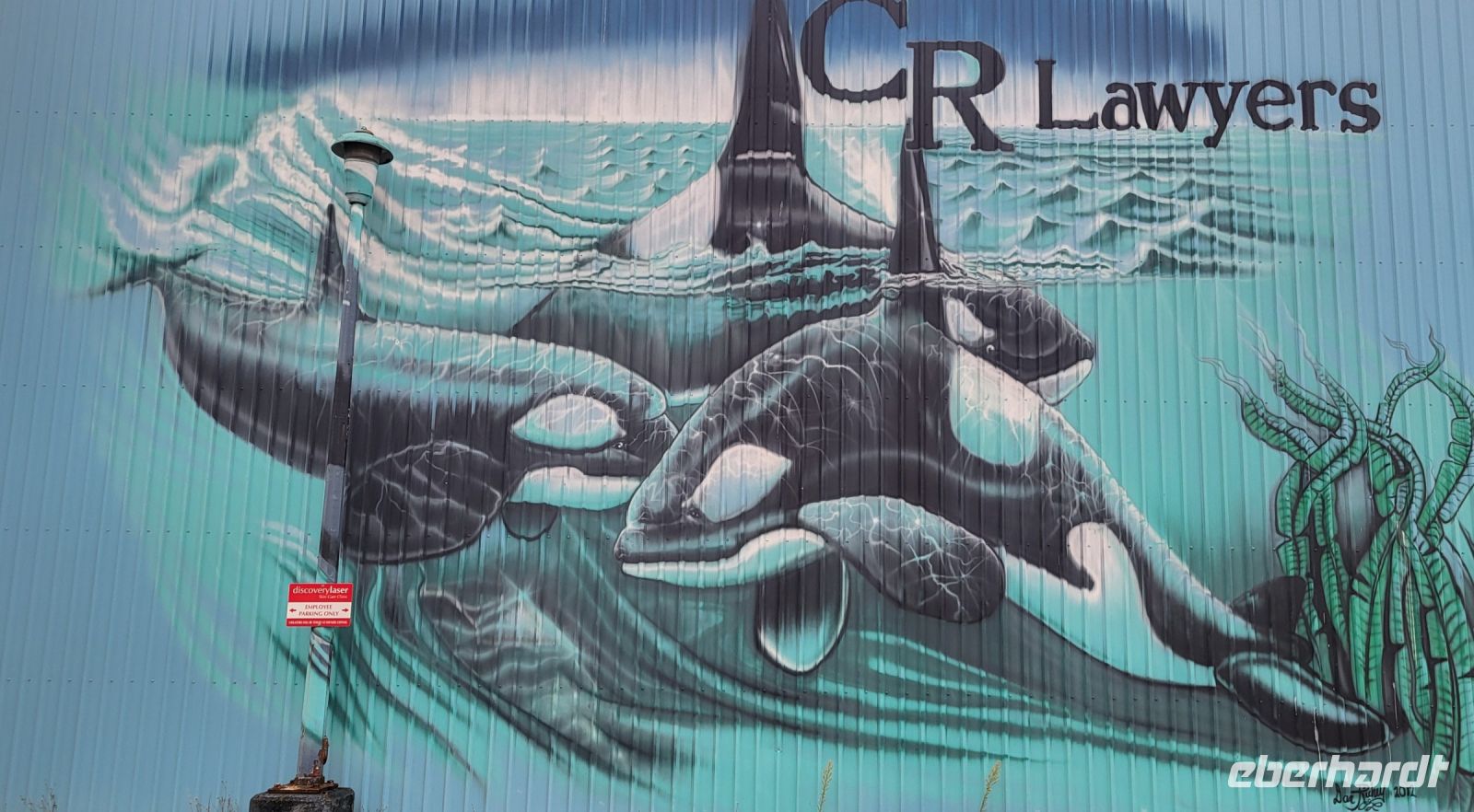 Die Reise führt uns weiter nach Victoria, in die Hauptstadt von British Columbia. Die Sonne hat den Himmel wieder für sich erobert und so freuen wir uns alle über herrliches Wetter, bei dem natürlich alles nochmals so viel schöner aussieht! Auf einen ersten Spaziergang begeben wir uns in Chemainus, eine alte Holzindustriestadt, in der viele schöne historische Bauten und tolle Wandgemälde auf uns warten. Mittags erreichen wir Victoria, unternehmen eine orientierende Stadtrundfahrt und finden uns pünktlich zum Check-in im Walbeobachtungsbüro ein. Am frühen Nachmittag starten wir zum Whale Watching. Bei etwas stürmischerer See als sonst gewohnt, fahren wir ein ganzes Stück hinaus und befinden uns sogar schon in US-Gewässern mit gegenüberliegender Küste, bis wir einige Orcas entdecken. Mit viel Ah und Oh werden diese seitens der Beobachter begrüßt und es ist sicherlich für alle ein tolles Erlebnis. Hier verharren wir einige Zeit, bevor es zurück zur Küste geht. Unterwegs sehen wir noch einige Seehunde, die es sich an Land gemütlich gemacht haben. Nach 3-Stunden auf hoher See kehren wir an Land zurück und verbringen den Abend bei einem schmackhaften Abendessen im Milestones am Hafen mit anschließendem Spaziergang durch das nächtliche und herrlich beleuchtete