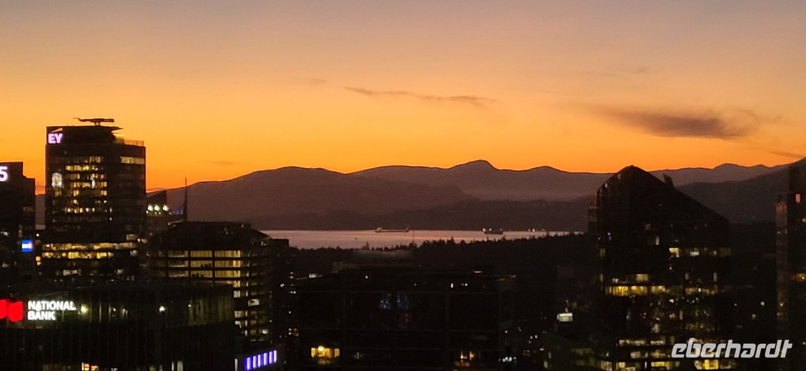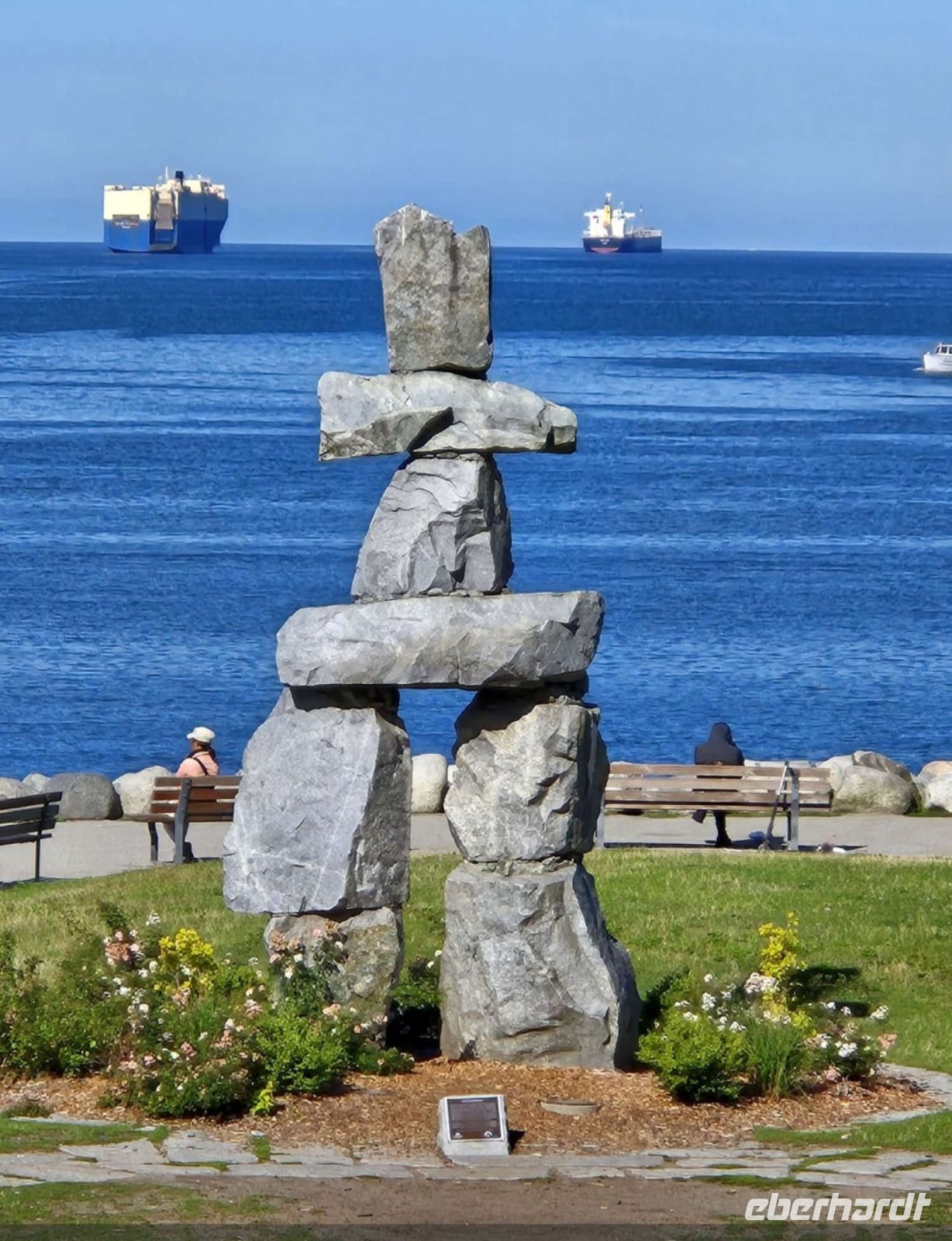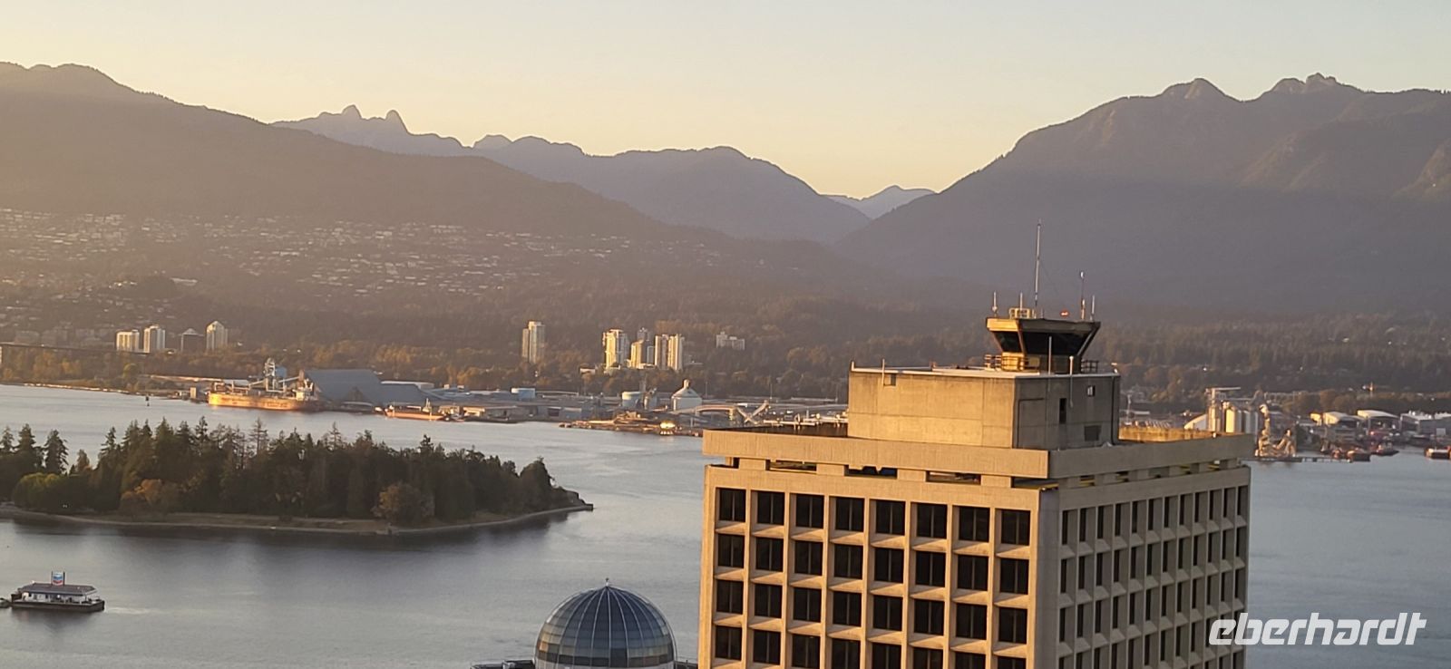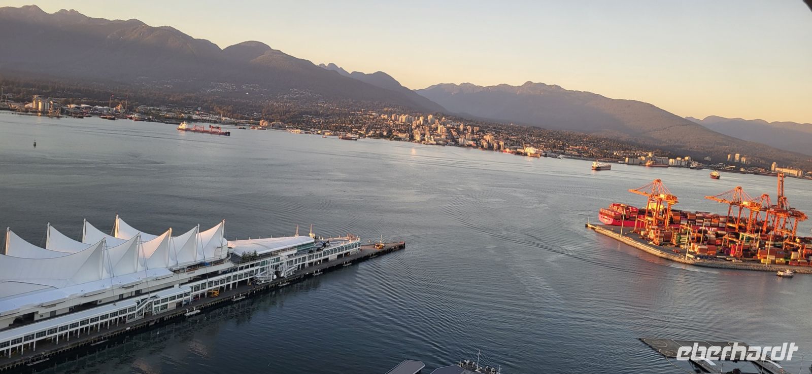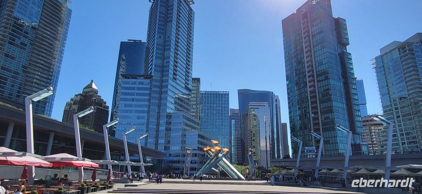 Wir verlassen Victoria und steuern nach kurzer Zeit den Fährhafen an. Wir haben viel Glück und können eine Fähre früher als geplant nehmen. Diese bringt uns in 1.5 Stunden in die pulsierende Stadt Vancouver mit 680.000 Einwohnern. Eine wirklich malerische Fahrt durch verschiedene Buchten, mit ruhiger See und strahlendem Sonnenschein-die Zeit vergeht förmlich im Flug. In Vancouver angekommen, befinden wir uns nun unmittelbar an der US-Grenze und schon nach kurzer Fahrtzeit erreichen wir die populäre Stadt am Meer. Zunächst geht es nach Granville Island, einem ehemaligen Schwerindustriegelände, welches sich im Laufe der Jahre zu einem szenigen Ausgehviertel entwickelt hat. Alte Markthallen bieten so wirklich alles, was das Herz begehrt, Handwerkskunst findet man ebenso wie verschiedene Künstler und ein besonderes Ambiente. Hier erfolgt unsere Mittagspause und es ist für wirklich jeden Geschmack etwas zu finden. Danach geht es weiter durch Vancouver und kurze Zeit später schlendern wir durch Gastown, die Altstadt Vancouvers. Diese wurde nach deren Gründer „Gassy (gesprächig) Jack“ benannt. Am Canada Place sehen wir den Hafen mit riesigen Kreuzfahrtschiffen, Wassertaxen und zahlreichen Kleinflugzeugen, die ebenfalls als Taxen dienen. Abschließend fotografieren wir das olympische Feuer, welches einst zu den damaligen olympischen Winterspielen 2010 errichtet wurde und heute anlässlich der Olympiade von Paris und den kanadischen Sportlern und deren Rückkehr entzündet wurde. Weiter geht es zum Stanley Park, der das Naherholungsgebiet der Städter ist und mit seinem Blick auf die Skyline der Stadt und der vieler Natur eine kontrastreiche Abwechslung bietet. Hier nutzen wir die Gelegenheit, um uns bei unserem lieben Busfahrer John und unserem tollen Reiseleiter Wolfgang Hinz für deren Engagement in den letzten beiden Wochen zu bedanken. John hat uns nicht nur sicher, sondern auch sehr unterhaltsam knapp 2500 Km durch Kanada gefahren. Reiseleiter Wolfgang war ein toller Gastgeber, durch den wir sehr viel über Land und Leute in seiner Wahlheimat erfahren haben. Wir kehren in die Innenstadt zurück und checken in unser zentral gelegenen The Listel Hotel ein. Unser Abschiedsabendessen erfolgt hoch oben im „Top of Vancouver“, wo wir auf 167 m Höhe mit grandioser Aussicht auf Vancouver und Umgebung unseren letzten Abend gemeinsam verbringen. Hier nutzen wir die Gelegenheit, um nochmals auf die wundervolle Reise anzustoßen. Nach dem Abendessen geht der Großteil der Gruppe zu Fly-over Canada, um sich in einem 25-minütigen Film nochmals die Highlights des Landes auf spektakuläre Art und Weise anzusehen. Mehr sei nicht verraten, nur so viel-es ist ein unvergessliches Erlebnis.