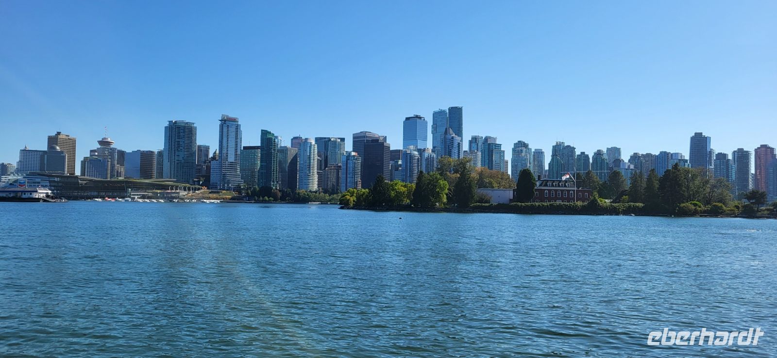 Wir genießen nochmals ein Frühstück mit kleinem Buffet in separatem Raum nur für uns Eberhardt Gäste. Bevor es dann zum Flughafen geht, unternehmen wir einen schönen Spaziergang zur English Bay und erleben Vancouver nochmals von einer ganz anderen Seite. Kleine Straßen mit schönen Wohnhäusern, viel Grün und natürlich die schöne Bucht der English Bay erwarten uns. Das Ganze bei traumhaftem Wetter mit wolkenlosem Himmel und strahlendem Sonnenschein. Welch ein Abschied. Der Transfer zum Flughafen und Check-in klappen reibungslos und schon bald geht es an Bord der Lufthansa,
