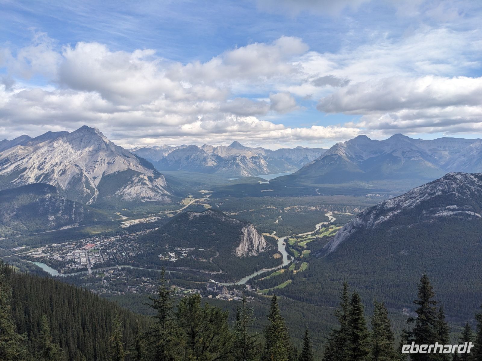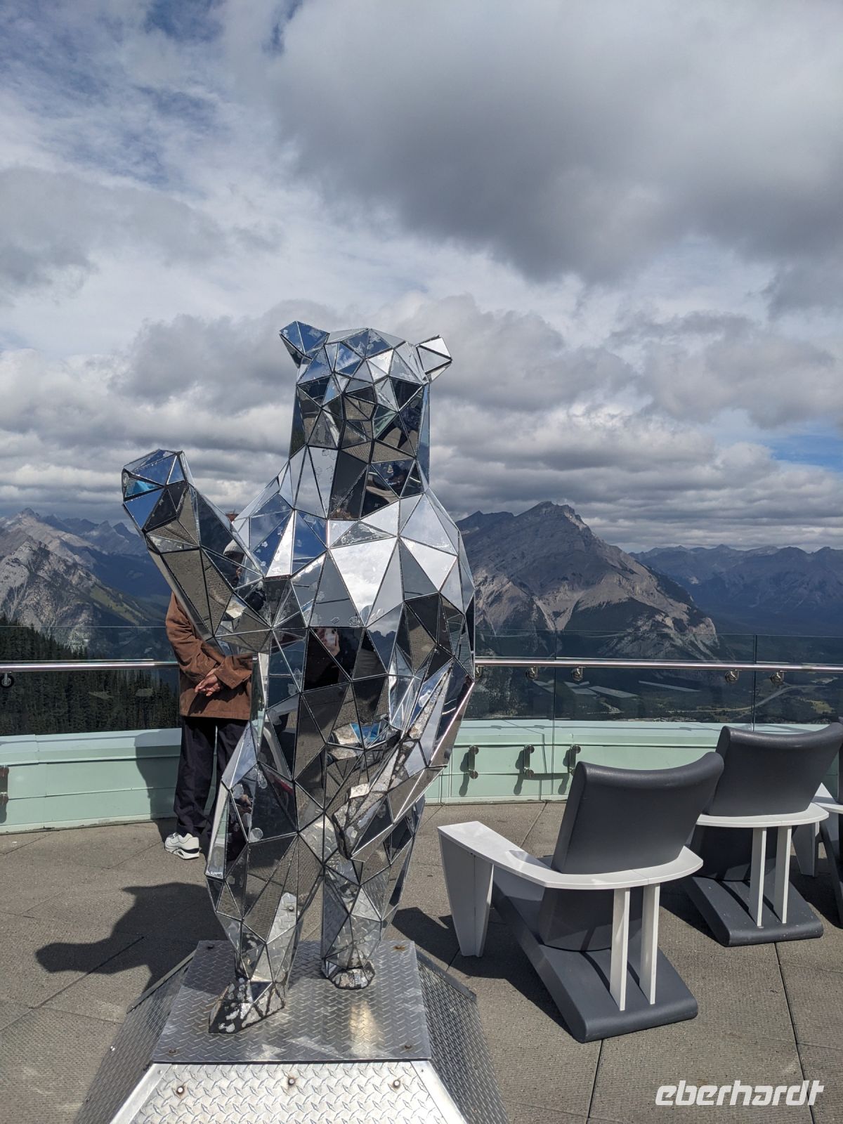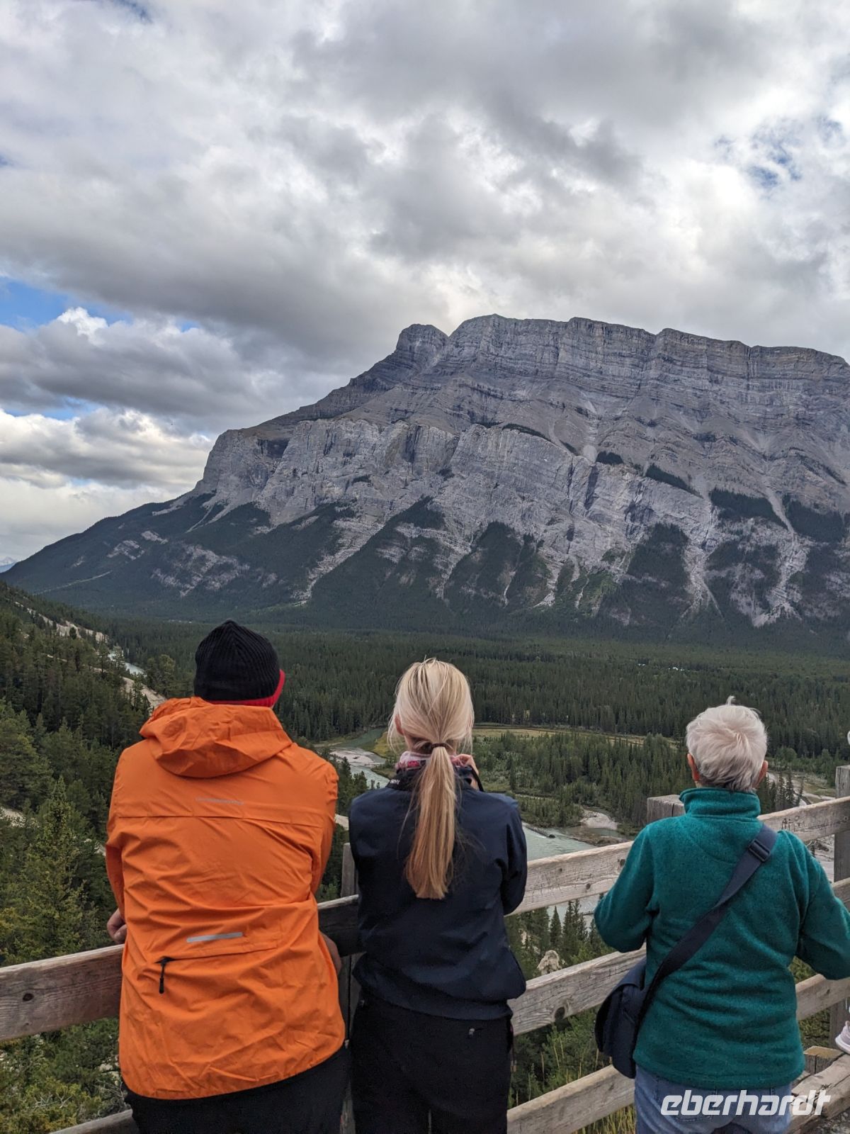 Nach einer etwas unruhigen Nacht für die meisten von uns, brachen wir am nächsten Tag auf in Richtung der Rocky Mountains nach Banff. Auf der Fahrt hinaus aus der Stadt sahen wir noch die Skischanzen der Olympischen Spiele, welche 1988 in Calgary ausgetragen wurden. Mit jeder Minute wurden die Ausblicke fantastischer - Grund dafür: wir fuhren auf die Berge zu - ein einmaliges Panorama! Angekommen in Banff nahmen wir die Gondel auf den Schwefelberg hinauf. Neben tollen Ausblicken auf die umliegenden Berge und das Tal, in dem sich Banff befindet, entdeckten wir auch tierische Bewohner, die natürlich auch auf jeder Kamera verewigt wurden. Hier hatten wir Zeit, uns individuell umzuschauen, bevor es zu einer festen Zeit wieder nach unten ging. Don brachte uns anschließend zum Johnston Canyon, auf dessen Boardwalk wir entlang der Schlucht den beeindruckenden Wassermassen folgen konnten, bis wir zu einem Wasserfall, kamen. Ein Stopp am Hoodoos Aussichtspunkt am Tunnel Mountain bildete dann den Abschluss des ersten vollen Reisetages. Diese sehen aus wie riesige Kleckerburgen, die neben den Bäumen herausragen. Sie stellen einen wichtigen Ort für die First Nations dar und ihnen werden diverse Legenden zugeordnet. Im El Torro Restaurant zum Abendessen trafen wir dann auf eine andere Eberhardt-Gruppe, welche wir bereits am Flughafen kennengelernt hatten. Nach einem leckeren Essen trennten sich unsere Wege - einige machten noch einen kleinen Abendspaziergang mit mir durch Banff, während andere auf eigene Faust loszogen oder sich auf den Rückweg zu unserem Hotel, der Banff Aspen Lodge, machten.