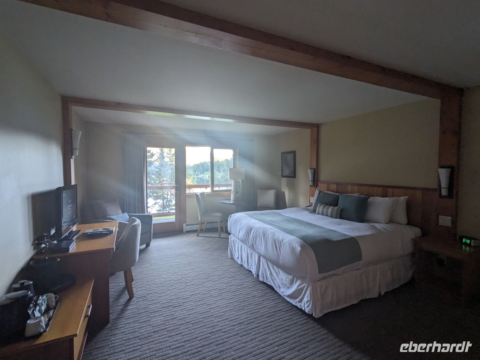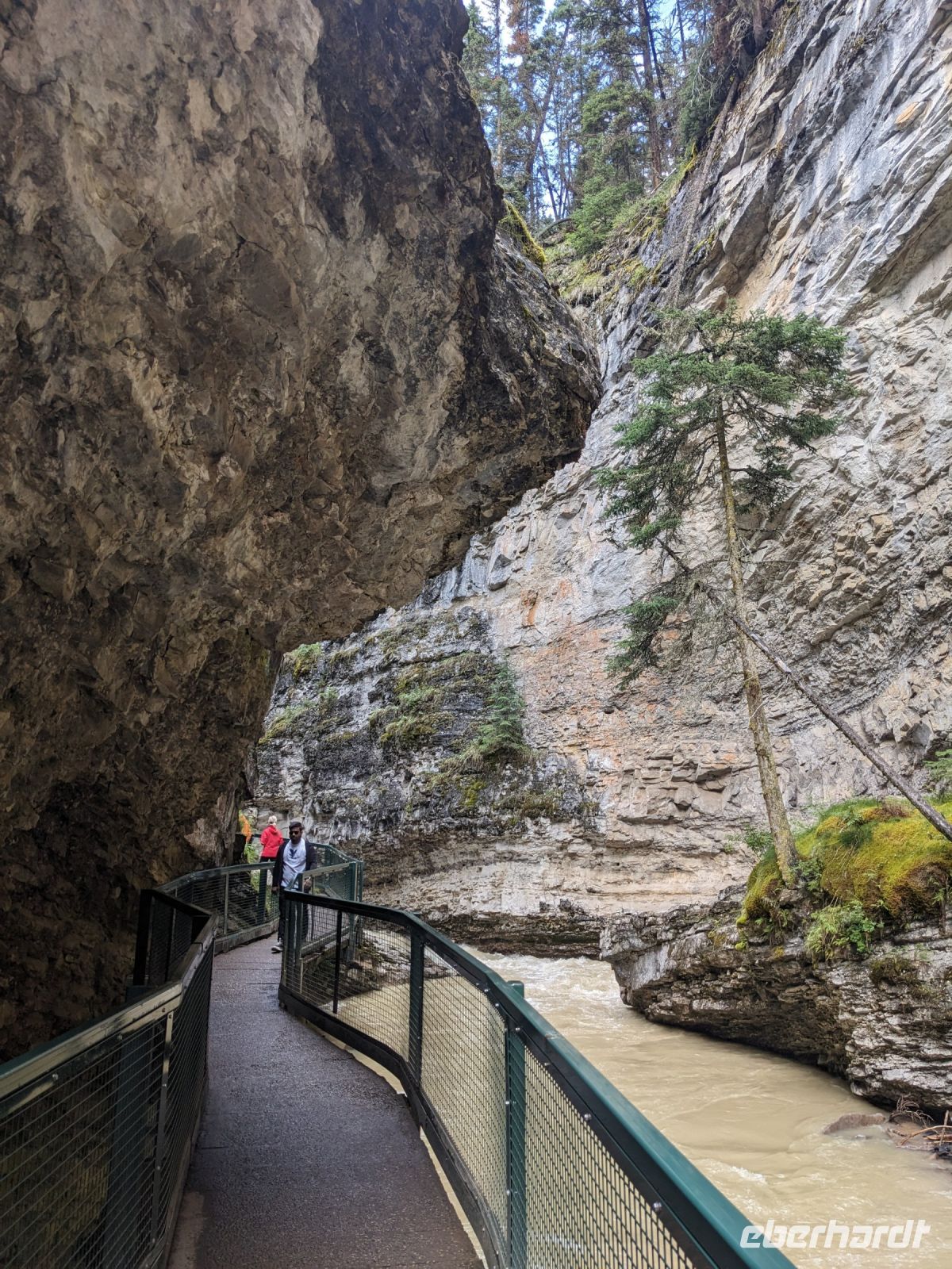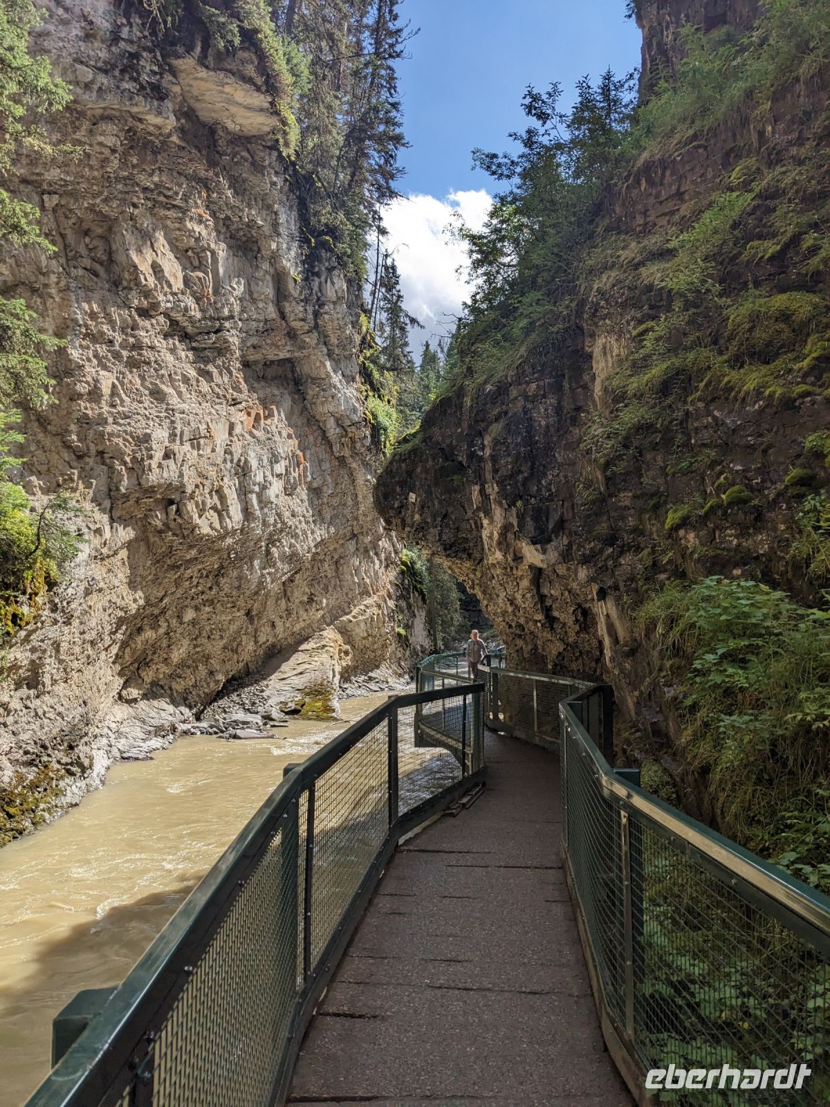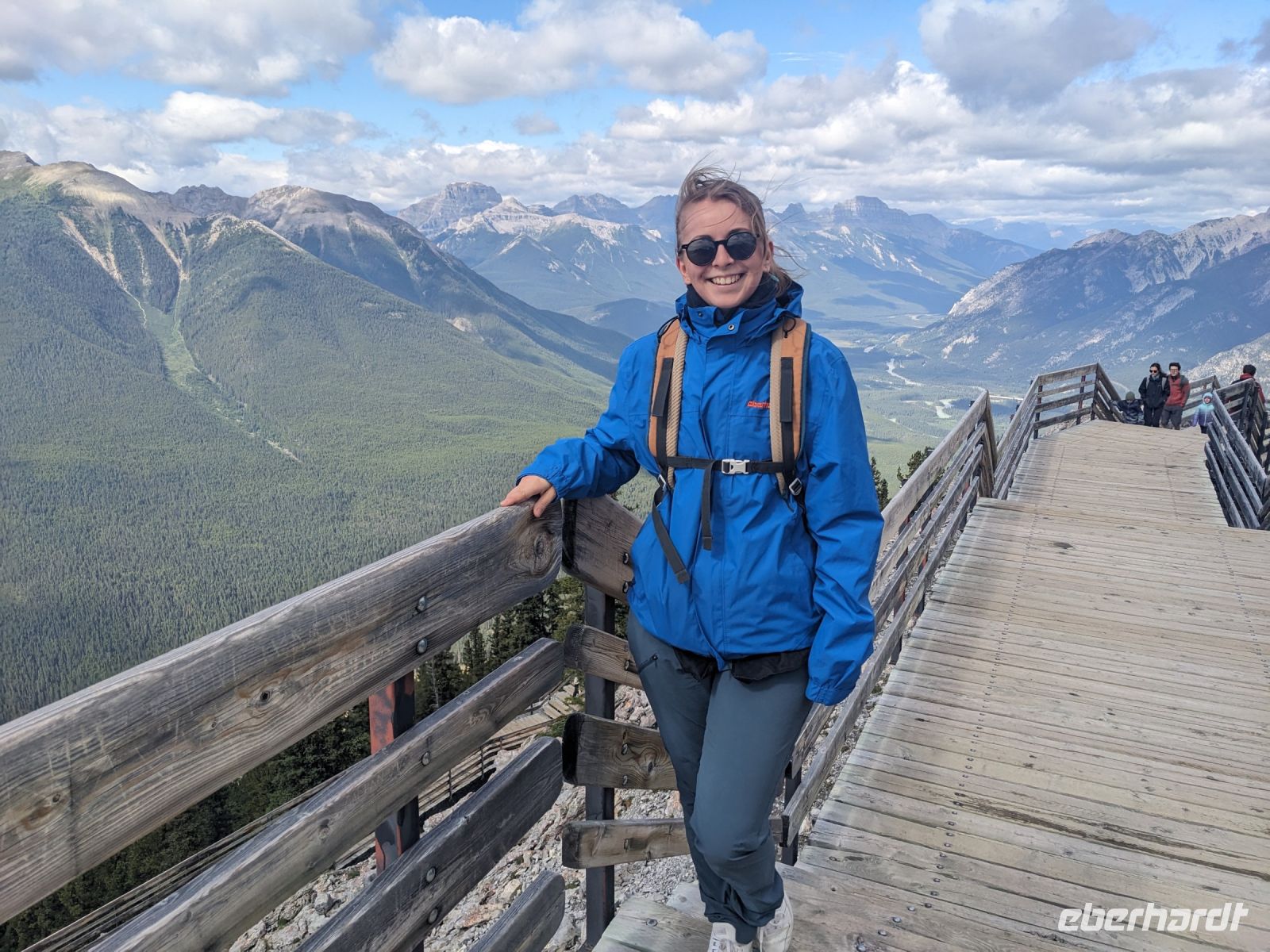 Nach einer etwas unruhigen Nacht für die meisten von uns, brachen wir am nächsten Tag auf in Richtung der Rocky Mountains nach Banff. Auf der Fahrt hinaus aus der Stadt sahen wir noch die Skischanzen der Olympischen Spiele, welche 1988 in Calgary ausgetragen wurden. Mit jeder Minute wurden die Ausblicke fantastischer - Grund dafür: wir fuhren auf die Berge zu - ein einmaliges Panorama! Angekommen in Banff nahmen wir die Gondel auf den Schwefelberg hinauf. Neben tollen Ausblicken auf die umliegenden Berge und das Tal, in dem sich Banff befindet, entdeckten wir auch tierische Bewohner, die natürlich auch auf jeder Kamera verewigt wurden. Hier hatten wir Zeit, uns individuell umzuschauen, bevor es zu einer festen Zeit wieder nach unten ging. Don brachte uns anschließend zum Johnston Canyon, auf dessen Boardwalk wir entlang der Schlucht den beeindruckenden Wassermassen folgen konnten, bis wir zu einem Wasserfall, kamen. Ein Stopp am Hoodoos Aussichtspunkt am Tunnel Mountain bildete dann den Abschluss des ersten vollen Reisetages. Diese sehen aus wie riesige Kleckerburgen, die neben den Bäumen herausragen. Sie stellen einen wichtigen Ort für die First Nations dar und ihnen werden diverse Legenden zugeordnet. Im El Torro Restaurant zum Abendessen trafen wir dann auf eine andere Eberhardt-Gruppe, welche wir bereits am Flughafen kennengelernt hatten. Nach einem leckeren Essen trennten sich unsere Wege - einige machten noch einen kleinen Abendspaziergang mit mir durch Banff, während andere auf eigene Faust loszogen oder sich auf den Rückweg zu unserem Hotel, der Banff Aspen Lodge, machten.