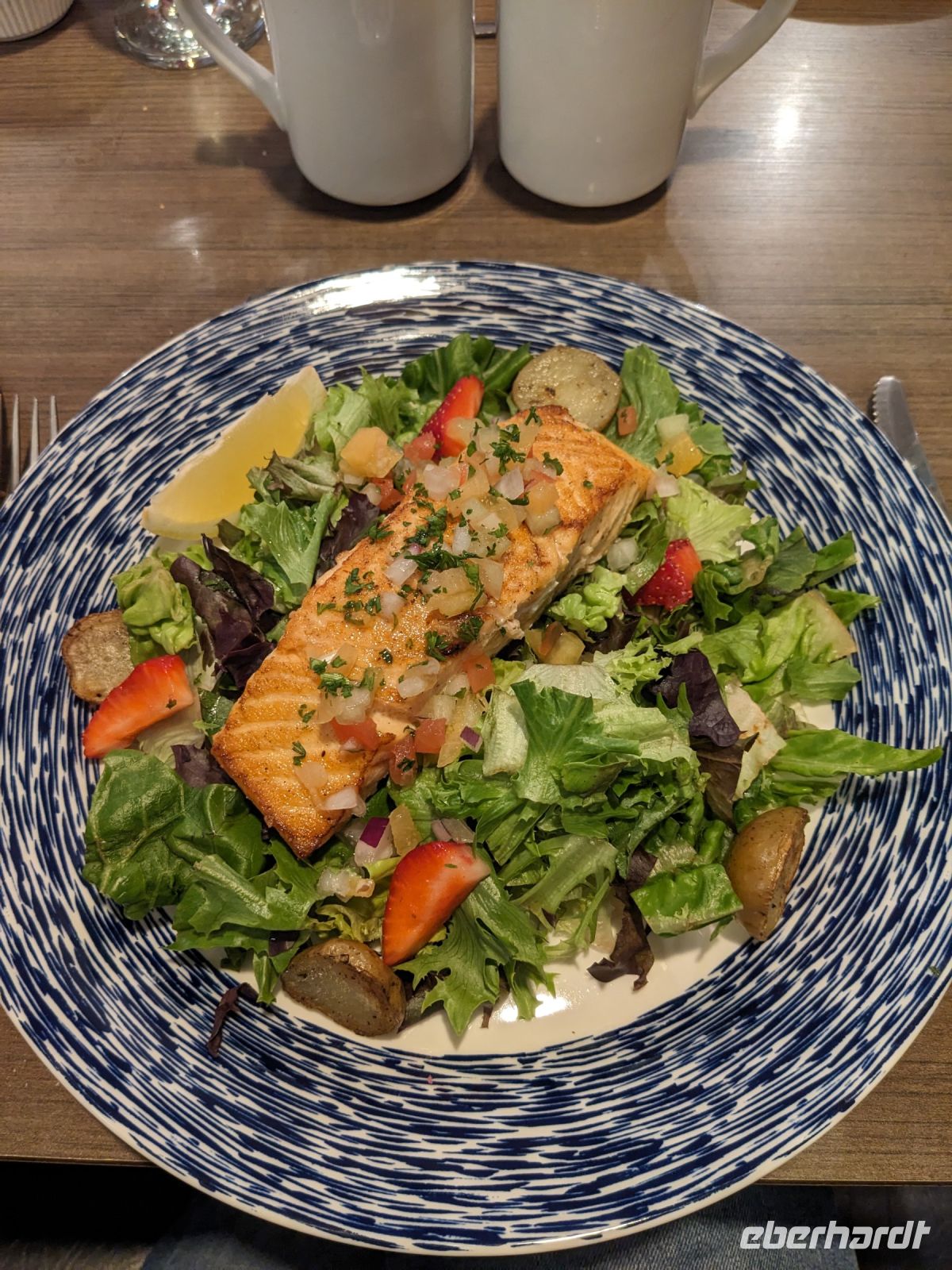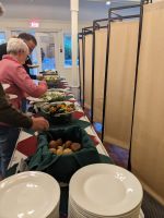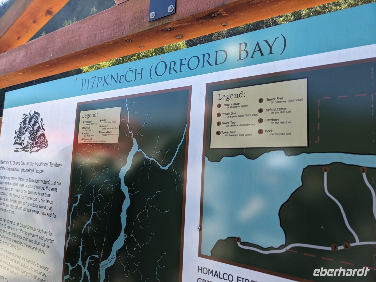 Einige von uns nahmen heute an einer fakultativen Bärenbeobachtung teil, während alle anderen in Campbell River blieben, um die Stadt auf eigene Faust zu erkunden. Marion sorgte noch für etwas Programm mit dem Besuch des Elk Falls Provincial Parks und einer Lachsfarm. So ging man in kleiner Runde und mit großem Bus auf Erkundungstour vor Ort. Der Großteil der Gruppe kam jedoch mit mir auf die Bärenbeobachtung - jedenfalls dachten wir das anfangs noch. Nach einer vielversprechenden Bootsfahrt zur Orford Bay, bei der wir zahlreiche Buckelwale zu sehen bekamen, hatten wir auf dem First Nation Territory, wo die Bärentour stattfand, leider kein Glück. Nicht ein einziger Bär schaute bei uns vorbei! Zwar sahen wir zahlreiche Lachse und auch einige Adler von Nahem, doch das konnte die Enttäuschung leider nicht wirklich ausgleichen. Etwas niedergeschlagen begaben wir uns wieder auf den Rückweg und sahen hier nochmal Buckelwale. Angekommen in Campbell River trafen wir uns (fast) alle zum Abendessen wieder bei Carve`s Kitchen und tauschten uns über den getrennt verbrachten Tag aus.